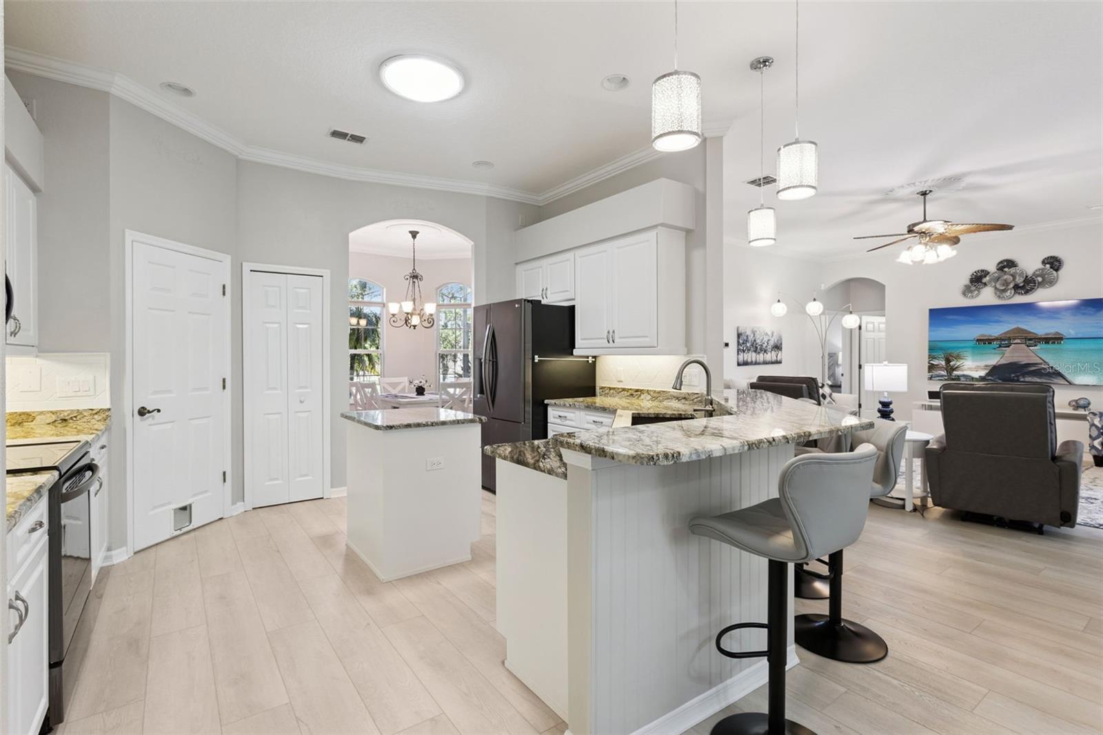? Lista QUENTE dos vendedores: o que eles amam nesta casa Perfeito para entretenimento: quarto privativo, espaçoso quarto Florida com uma parede de janelas (aquecida e resfriada) e um pátio de tijolos ideal para “grelhar e relaxar” no quintal privativo. O melhor paisagismo da Flórida: projetado profissionalmente e meticulosamente cuidado, com palmeiras, ave do paraíso, murta crepe e vegetação exuberante. Vizinhos amigáveis: Um espírito comunitário acolhedor que torna esta casa ainda mais especial. Destaques iniciais Transformação Interior: Paraíso atualizado, leve e brilhante, com pintura de parede neutra suave, luxuoso piso de pranchas de vinil (exceto banheiros e quartos com azulejos), armários de cozinha brancos, luminárias atualizadas e novos revestimentos de janelas com cornijas. Planta baixa flexível: Duas suítes com acesso direto à Sala Florida Den (atualmente usado como terceiro quarto) Sala de estar (atualmente sala de música/escritório) Sala de jantar, sala de família, copa Cozinha com armários brancos, eletrodomésticos atualizados, bancadas em granito, backsplash de azulejos e balcão para café da manhã Despensa: Lavadora, secadora, pia e armários superiores. Suíte Master: pia dupla, closet e piso frio. Segunda Suíte Master: Chuveiro com parede em bloco de vidro, dois closets (um walk-in). Garagem: Ampliada em 4 pés, escadas rebatíveis para arrumação no sótão e tela motorizada para portão de garagem. . ?? Apelação externa e do meio-fio Lote de esquina sem saída com paisagismo profissional e plantações no estilo da Flórida. Calçada de pavimentação de tijolos, borda de pedras empilhadas e passarela de tijolos para a casa. O paisagismo exclusivo inclui uma palmeira gigante, uma ave do paraíso e uma murta crepe com flores vermelho-rubi. Atualizações recentes: Telhado (2023), HVAC (2021), Pintura Exterior (2023). A plantação em Leesburg oferece: Dois campos de golfe de 18 buracos Três centros de atividades com piscinas aquecidas Softball masculino e feminino, pickleball, bocha, shuffleboard, ferraduras Estacionamento para trailers, marcenaria, cartas, jogos, danças O clube Manor evoca o charme da Tara Plantation. Dirija pela comunidade para desfrutar de uma paisagem exuberante e árvores abundantes. Vantagens de localização Leesburg: localizada no centro da Flórida, uma das cidades que mais cresce e considerada uma das mais seguras contra furacões. Apenas 1 hora de qualquer costa e perto dos parques mundialmente famosos de Orlando.