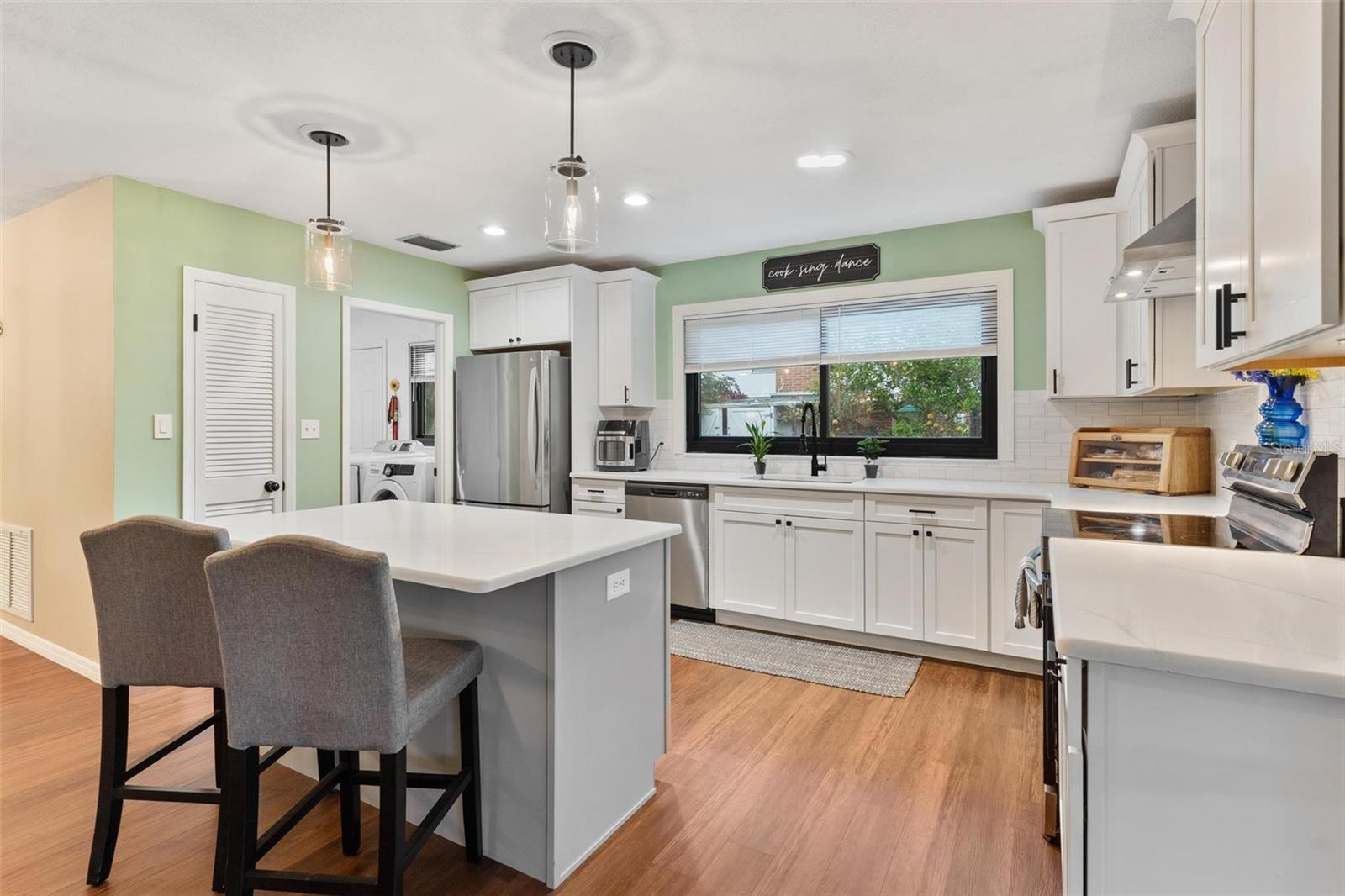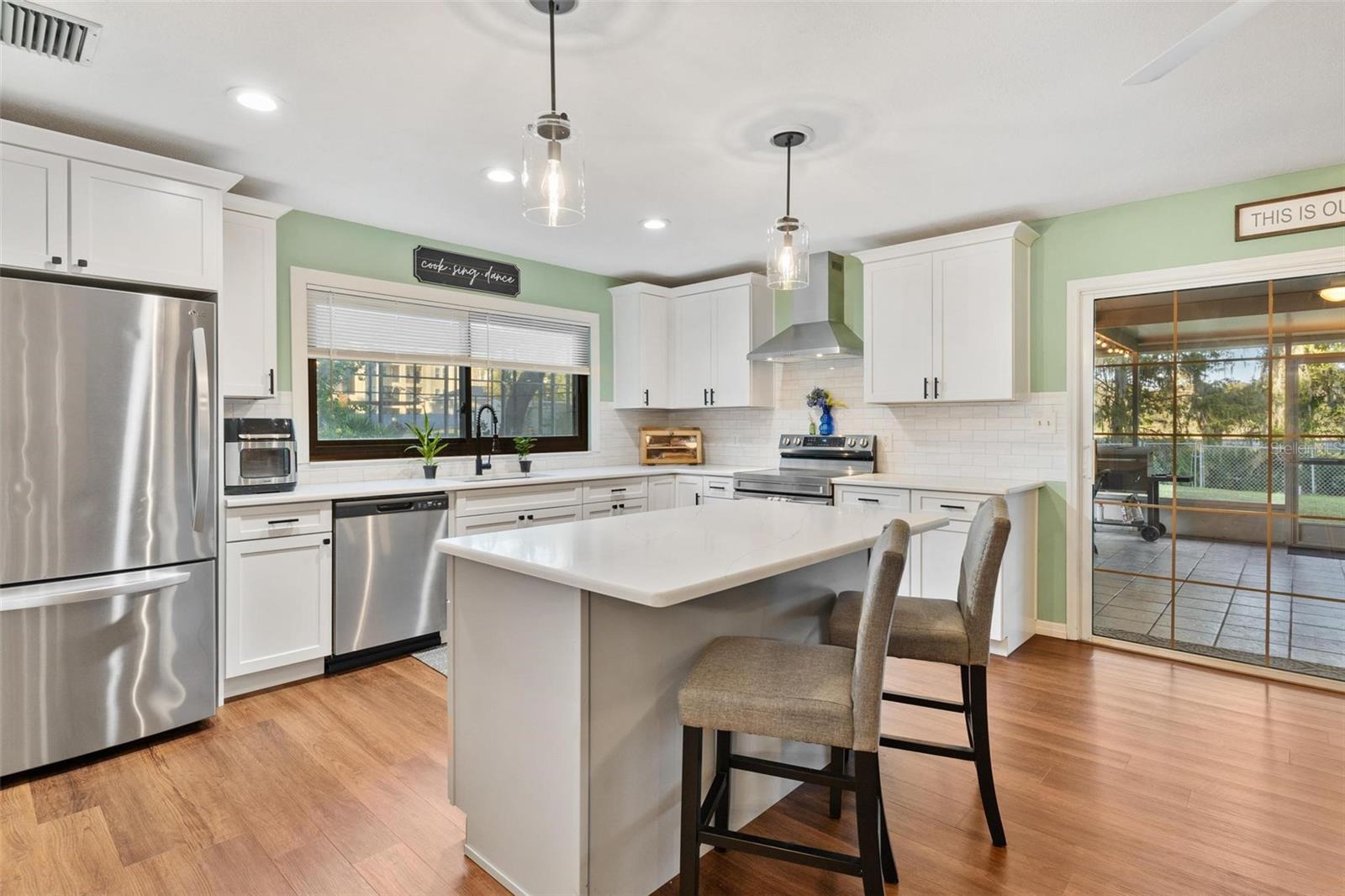 Cadeia de Lagos! Esta casa imaculada fica em um canal, a uma curta distância das águas abertas do belo Lago Harris, na cadeia de lagos. Esta joia foi completamente renovada e foi projetada para relaxar e ter um estilo de vida maravilhoso na Flórida, com muito espaço ao ar livre e um espaçoso quintal cercado. Com 4 quartos espaçosos com closets, 2 banheiros elegantes e um versátil quarto flexível (perfeito como 5º quarto ou home office), esta casa se adapta ao seu estilo de vida. O banheiro principal tem uma porta de celeiro personalizada que leva ao banheiro privativo com pias duplas e um chuveiro de azulejos personalizado. Entre na cozinha recém-remodelada, completa com armários modernos, elegantes bancadas de quartzo e eletrodomésticos de aço inoxidável. A conveniente ilha central é perfeita para refeições rápidas ou para preparar o buffet. Há também espaço adicional para refeições formais. Em toda a casa, você encontrará banheiros atualizados, novos pisos, janelas com eficiência energética e iluminação atualizada. A ampla sala de estar oferece uma bela lareira de tijolos como cenário perfeito. Relaxe ou divirta-se na varanda dos fundos coberta e fechada enquanto aprecia o belo sol da Flórida. Traga os animais de estimação porque este quintal é totalmente cercado por segurança. Vá direto do seu quintal até o cais e acesse o lago para um rápido passeio de barco noturno até o restaurante local à beira-mar. A arrumação é abundante, com uma espaçosa garagem para dois carros, lavandaria interior/lavabo e espaço de estacionamento coberto adicional que pode ser o local perfeito para um barco ou estacionamento extra para veículos. Um teto metálico e unidades duplas de AC para eficiência extra completam o pacote. Pronta para morar e situada em uma localização privilegiada perto de lojas, restaurantes e escolas de primeira linha, esta casa oferece o que há de melhor em atualizações modernas, vida à beira-mar e conveniência diária. Não perca - este realmente tem tudo!