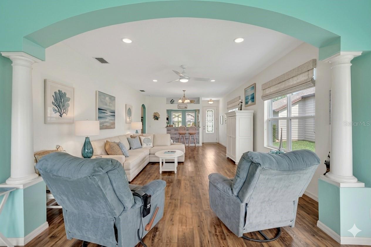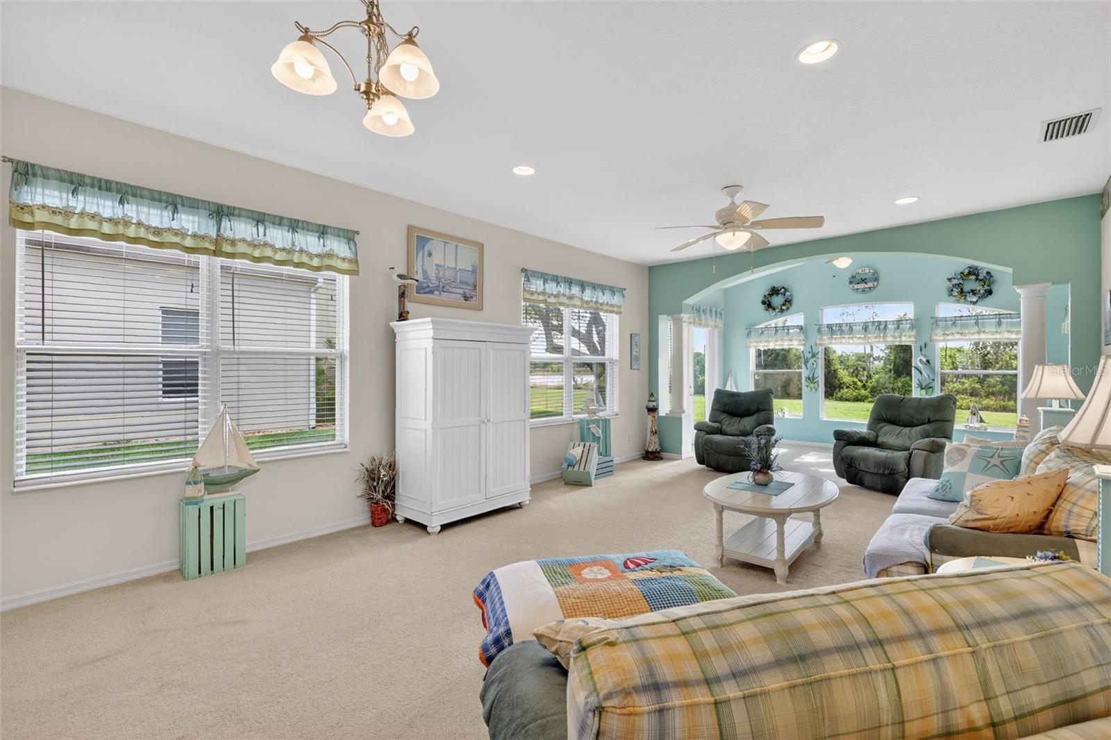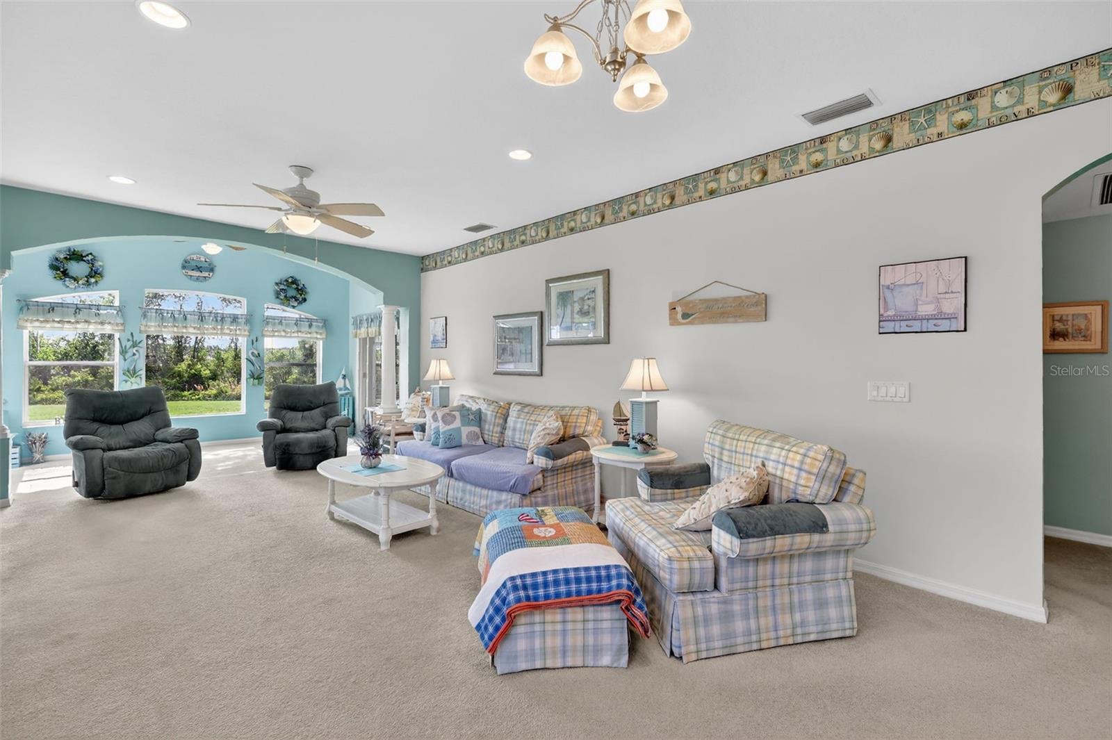 Bem-vindo a este modelo Balmoral lindamente conservado, mobiliado e pronto para uso, perfeitamente posicionado para capturar águas serenas e vistas de conservação - oferecendo privacidade e um cenário natural tranquilo que tantos compradores procuram hoje. A partir do momento em que você chega, a varanda frontal coberta cria uma entrada calorosa e convidativa, dando o tom para o interior cheio de luz que se segue. Entre em uma grande sala iluminada e aberta, onde a luz natural entra, conectando perfeitamente os espaços de estar e cozinha para uma vida cotidiana fácil e entretenimento sem esforço. A área de estar principal se abre para uma área ampliada com janelas panorâmicas com vista para a vista - um cenário ideal para desfrutar do café da manhã ou relaxar à noite. A copa dispõe de uma aconchegante copa e está convenientemente localizada ao lado da lavanderia interna com despensa e acesso direto à garagem, criando um layout funcional e confortável. A suíte principal oferece um retiro relaxante com um amplo closet, enquanto o banheiro privativo inclui banheira de hidromassagem, box amplo e armário de roupa de cama para maior comodidade. Uma ala de hóspedes flexível oferece dois quartos adicionais e um banheiro de hóspedes, perfeito para visitar a família ou adaptar facilmente um quarto em um escritório doméstico ou espaço de hobby. Os recursos adicionais incluem um aquecedor de água 2024, telhado 2023, sistema HVAC 2018, uma ligação de cupins com Florida Pest e um sistema de filtragem e amaciamento de água para toda a casa, oferecendo tranquilidade nos próximos anos. Localizada nas muito procuradas Royal Highlands, esta comunidade de mais de 55 anos, de propriedade de residentes e fechada por guarda, oferece um estilo de vida excepcional. Os moradores desfrutam de um campo de golfe de 18 buracos com restaurante e loja de artigos esportivos, duas piscinas (interna e externa), quadras iluminadas de tênis e pickleball, shuffleboard e bocha, campo de softball, bilhar, academia, salas de jogos e biblioteca. O Grand Hall funciona como o coração da comunidade, hospedando eventos sociais, aulas de ginástica, shows e muito mais. O HOA também inclui TV a cabo, internet de alta velocidade e armazenamento seguro para trailers e barcos. Isto é mais do que apenas uma casa – é um lugar onde conforto, conexão e beleza natural se unem em uma das mais desejáveis comunidades com mais de 55 anos de Lake County.