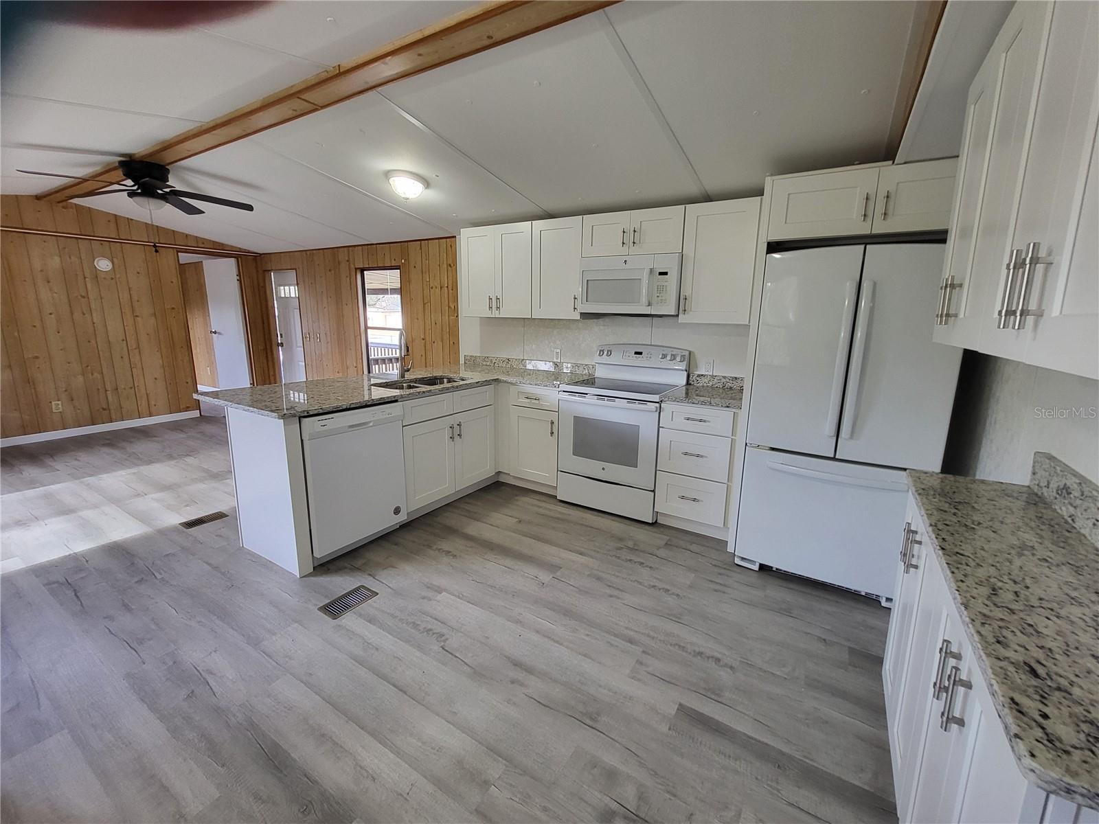 Proprietário motivado! NÃO HOA! Esta casa móvel completamente renovada apresenta um interior moderno e elegante, com uma combinação perfeita de conforto e funcionalidade. Ao entrar, você é saudado por um novo piso que flui por toda a área de estar aberta. A cozinha é um destaque, equipada com eletrodomésticos novos que contrastam lindamente com as elegantes bancadas de granito. Os armários personalizados proporcionam amplo armazenamento, enquanto as prateleiras abertas acrescentam um toque de charme contemporâneo, ideais para expor utensílios de cozinha ou decoração. Os dois quartos são espaçosos, cheios de luz natural e apresentam luminárias atualizadas. O quarto principal inclui um lavabo privativo e o banheiro completo dos hóspedes foi completamente refeito com azulejos novos e uma penteadeira elegante. No exterior, a casa dispõe de um acolhedor alpendre frontal com escadas e corrimãos recém-instalados, perfeitos para relaxar. Uma garagem conveniente oferece estacionamento coberto. Cada detalhe foi cuidadosamente atualizado, tornando esta casa móvel pronta para morar com todas as conveniências modernas e um interior elegante.