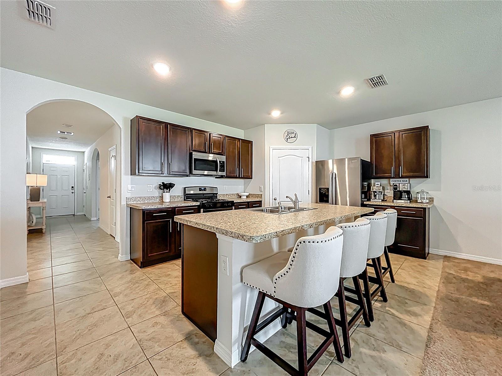 Bem-vindo ao lar desta bela residência de 4 quartos e 2 banheiros, localizada em uma comunidade altamente procurada da Lake Denham Estates! Projetado com uma planta baixa dividida, esta casa oferece conforto e privacidade. A abundância de luz natural, tetos de volume e portas arqueadas elegantes acrescentam um toque de sofisticação por toda parte. A espaçosa cozinha é um sonho para qualquer chef doméstico, com uma grande ilha central, utensílios de aço inoxidável, amplo espaço no armário, uma despensa e uma linha de gás. Perfeito para entretenimento, o layout aberto conecta perfeitamente as áreas de estar e jantar. A generosa suíte primária possui vaidades duplas, um chuveiro com fácil acesso e um grande closet. Saia para aproveitar o pátio coberto e coberto com vista para um grande quintal e totalmente cercado-ideal para animais de estimação, brincar ou desfrutar de belas estações da Flórida. A uma curta caminhada na rua, você encontrará a piscina e o playground da comunidade, oferecendo o local perfeito para absorver o sol da Flórida. Esta casa realmente combina conforto, estilo e conveniência em um local fantástico!