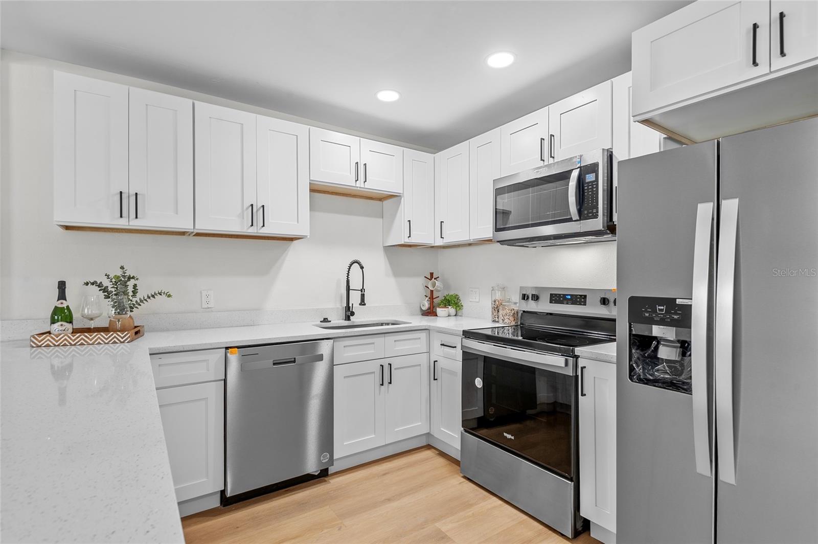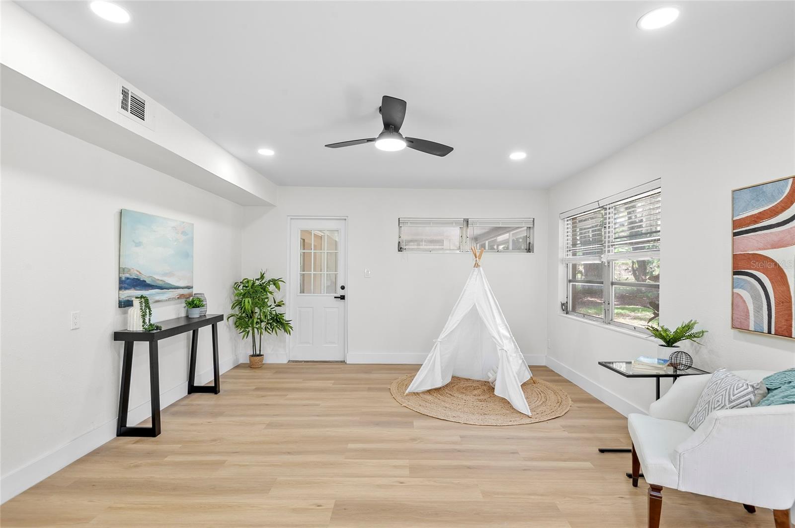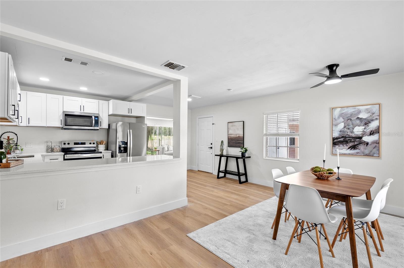 Mova -se para esta casa lindamente atualizada, recém -pintada por dentro e por fora, com atualizações que fazem com que pareça novo. Desfrute de tranquilidade com um teto com apenas 5 anos e uma nova unidade CA para conforto durante todo o ano. A cozinha moderna possui utensílios de aço inoxidável totalmente novos, armários novinhos em folha e bancadas de quartzo branco elegantes. O banheiro totalmente remodelado inclui pisos de ladrilhos novos, um luxuoso chuveiro sem calçada com ladrilhos de chão ao teto e uma vaidade elegante com uma blusa de quartzo correspondente. Em toda a casa, o novo piso de tábua de vinil de luxo (LVP) adiciona um toque contemporâneo e é fácil de manter. Saia do seu enorme quintal, perfeito para entretenimento, jardinagem ou criação de seu próprio oásis ao ar livre. Esta casa está realmente pronta, combinando acabamentos modernos, atualizações de qualidade e muito espaço ao ar livre.