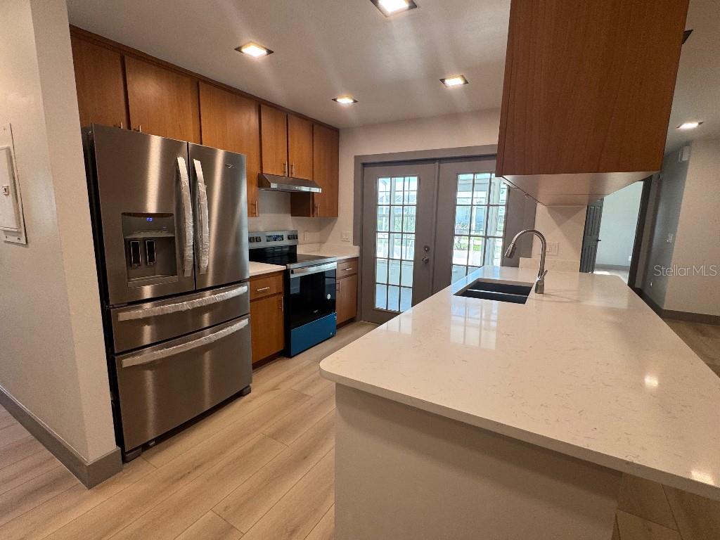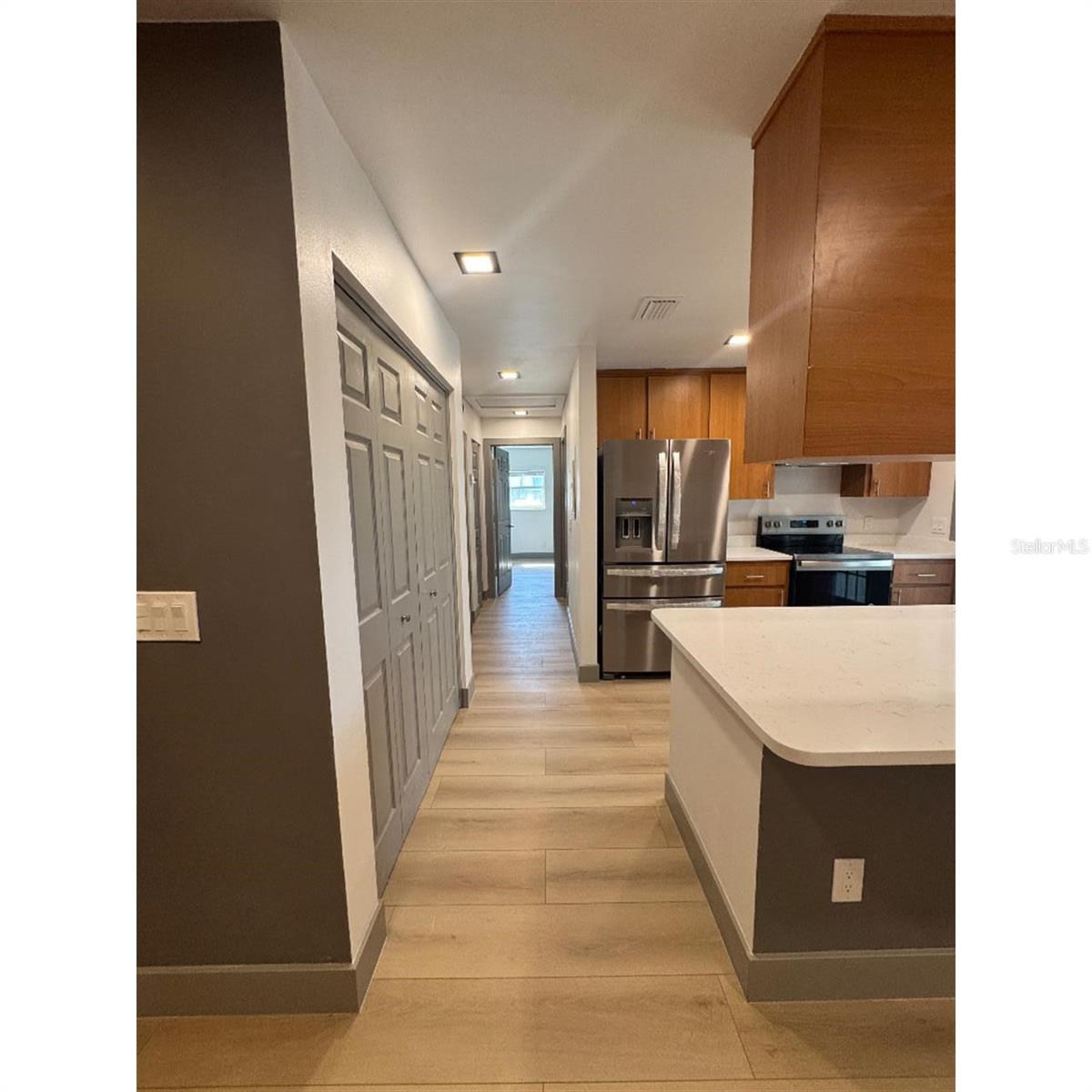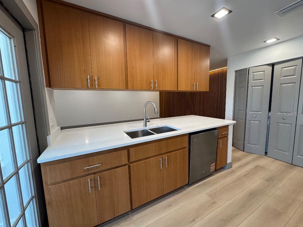 Townhome moderna remodelada em condomínio fechado - 2 camas, 2 banheiros Entre nesta casa lindamente remodelada, com um interior moderno e elegante, com utensílios de aço inoxidável novos, bancadas em granito e pisos de madeira laminados elegantes. A planta aberta possui uma espaçosa sala de estar, cozinha para comer e elegantes painéis de parede decorativos acentuados por tiras de luz LED. Luminárias modernas em toda a vibração contemporânea. O grande quarto principal inclui um banheiro privativo para maior conforto e privacidade. Destaques adicionais incluem conexões lavadoras e secadoras dentro da unidade, um lanai fechado privado, dois lugares de estacionamento cobertos e um armário de armazenamento generoso. Localizado em um condomínio fechado que oferece manutenção de gramado, serviço de lixo, um clube com piscina e spa e uma atmosfera acolhedora. A poucos minutos do histórico centro de Leesburg, as aldeias, hospitais de primeira classificação, restaurantes e compras-essa casa tem tudo!