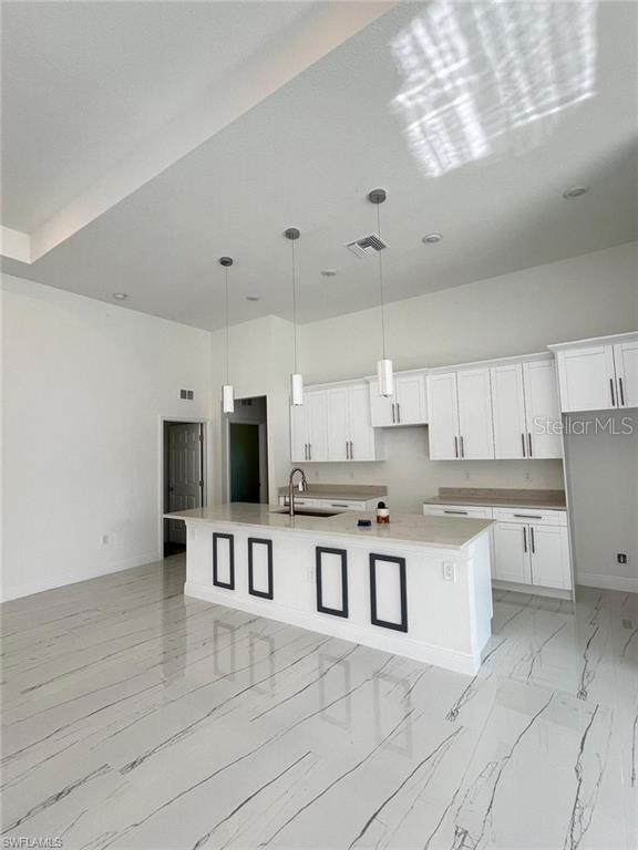 Casa unifamiliar localizada em Lehigh Acres! Ao entrar em suas portas duplas, 4 quartos, 2 banheiros e garagem de 2 carros. O estilo arquitetônico moderno o levará por um piso de ladrilhos para a cozinha de conceito aberto com bancadas elegantes de quartzo, aparelhos de aço inoxidável, a ilha central fornece espaço de trabalho e assentos adicionais. Esta casa também está equipada com conforto de resfriamento de ventiladores de teto e sistemas elétricos centrais. O quarto principal também possui closet e banheiro privativo com muita luz natural. Não perca, agende sua exibição hoje.