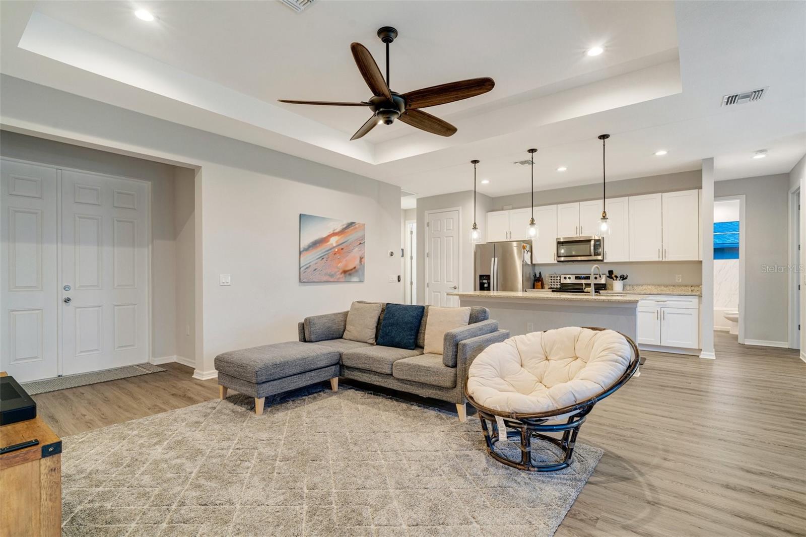 Uma ou mais fotos foram praticamente encenadas. Bem-vindo ao estilo e conforto nesta incrível casa unifamiliar, apenas 3 anos de novo com uma tonelada de atualizações do proprietário! Mova-se pronta e oferecendo quase 1600 pés quadrados, 3 camas + den, 2 banheiros, garagem de 2 carros e paisagismo lindamente com novas palmeiras e um pátio recém-cercado com um lindo e novo pátio de pavimentação de embrulho. Esta casa apresenta o luxo de incríveis janelas e portas de impacto de furacões de grandes dimensões, fornecendo eficiência energética durante todo o ano. Você ficará impressionado com a planta baixa com um layout aberto, tetos altos, interiores personalizados e traços encantadores de cozinha e banheiro. A sala de estar formal, a sala de jantar e o oásis ao ar livre oferecem o espaço perfeito para entreter os hóspedes. Desfrute da Flórida que vive com uma varanda da frente e Lanai recém-exibida, perfeita para relaxar ao ar livre e desfrutar da quente brisa de inverno da Flórida. Outros recursos novos e notáveis incluem: luminárias, ventiladores de teto em todos os quartos, persianas premium de blecaute personalizadas de Hunter Douglas e um sistema de irrigação para manter seu quintal bonito o ano todo. Esta casa oferece um equilíbrio perfeito de privacidade e conveniência, enquanto localizado em uma comunidade em crescimento, perto de Fort. Myers Beach, com fácil acesso a escolas, compras e grandes rodovias. Os móveis são negociáveis com uma oferta razoável! Não perca a oportunidade de fazer desta bela propriedade sua!