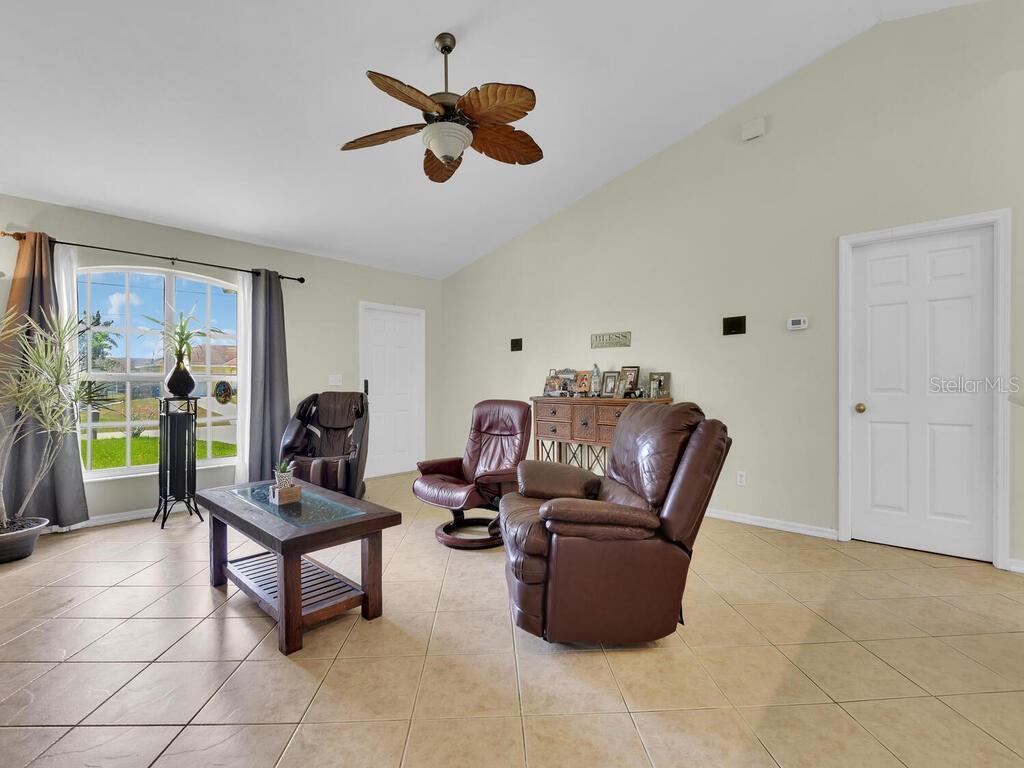 Descubra esta encantadora casa unifamiliar em Lehigh Acres, com 3 quartos e 2 banheiros. Com piso de cerâmica e tetos de catedral na área de estar, esta casa oferece uma sensação luminosa e arejada. A cozinha está equipada com eletrodomésticos de aço inoxidável, bancadas em granito e uma área de refeições, que se abre perfeitamente para a área de estar e uma porta de correr que dá acesso ao pátio/varanda fechado e à área exterior. Desfrute de uma abundância de luz solar natural e de uma planta baixa perfeita. As atualizações recentes incluem um novo telhado, novos compressores AC e um novo aquecedor de água. A área externa possui pavimentação, um lindo pátio e um galpão, oferecendo grande potencial para criar seu oásis ao ar livre. Localizada perto de tudo o que SWFL tem a oferecer e sem taxas de HOA, esta casa é uma combinação perfeita de conforto e conveniência. Não perca a oportunidade de personalizar esta encantadora propriedade!