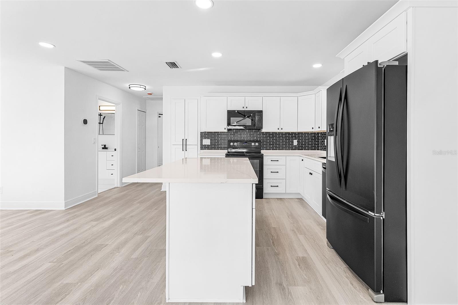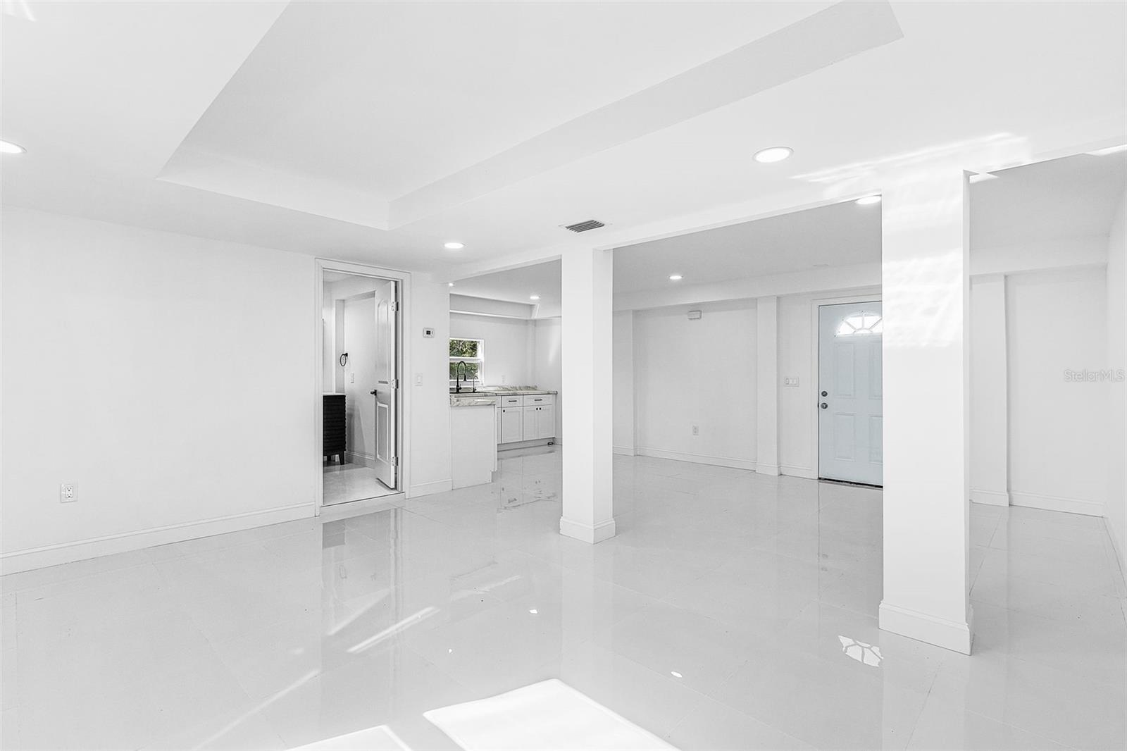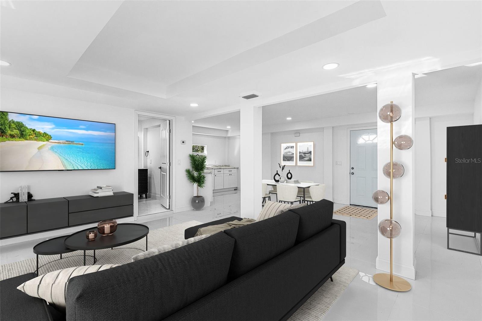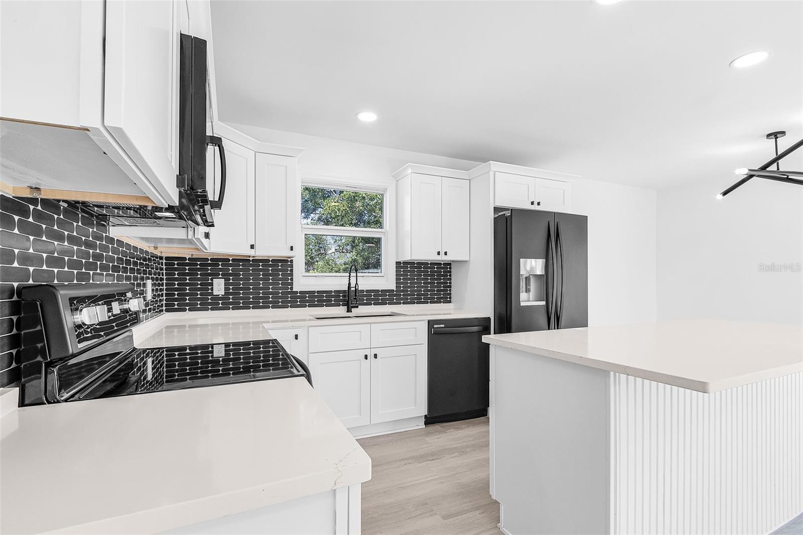 Uma ou mais fotos foram virtualmente encenadas. Completamente renovada e reconstruída de cima para baixo, esta linda casa de 2 quartos, 2 banheiros + COZINHA, GARAGEM PARA 2 CARROS oferece tranquilidade com TELHADO NOVO, ELÉTRICA NOVA, CANALIZAÇÃO NOVA, AC NOVO, AQUECEDOR DE ÁGUA NOVO, NOVO TAPUME, POÇO NOVO E NOVA SÉPTICA, JANELAS DE IMPACTO, novas PORTAS e DESLIZADORES. O interior apresenta uma nova cozinha deslumbrante com bancadas de quartzo, ilha grande, backsplash moderno, DESPENSA, Desfrute de pisos elegantes e modernos de vinil e azulejo por toda parte, enorme porta deslizante frontal que leva ao espaçoso TERRAÇO FRONTAL COBERTO - ideal para relaxar ou se divertir. O nível inferior inclui banheiro completo, LAVADORA E SECADORA e um amplo espaço perfeito para oficina, home office ou estúdio.