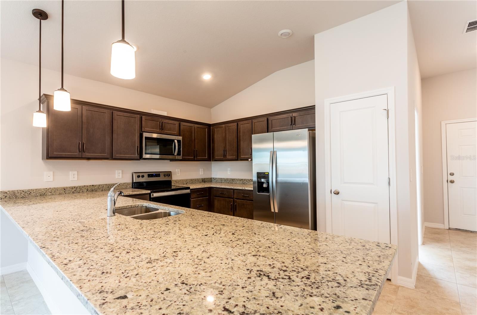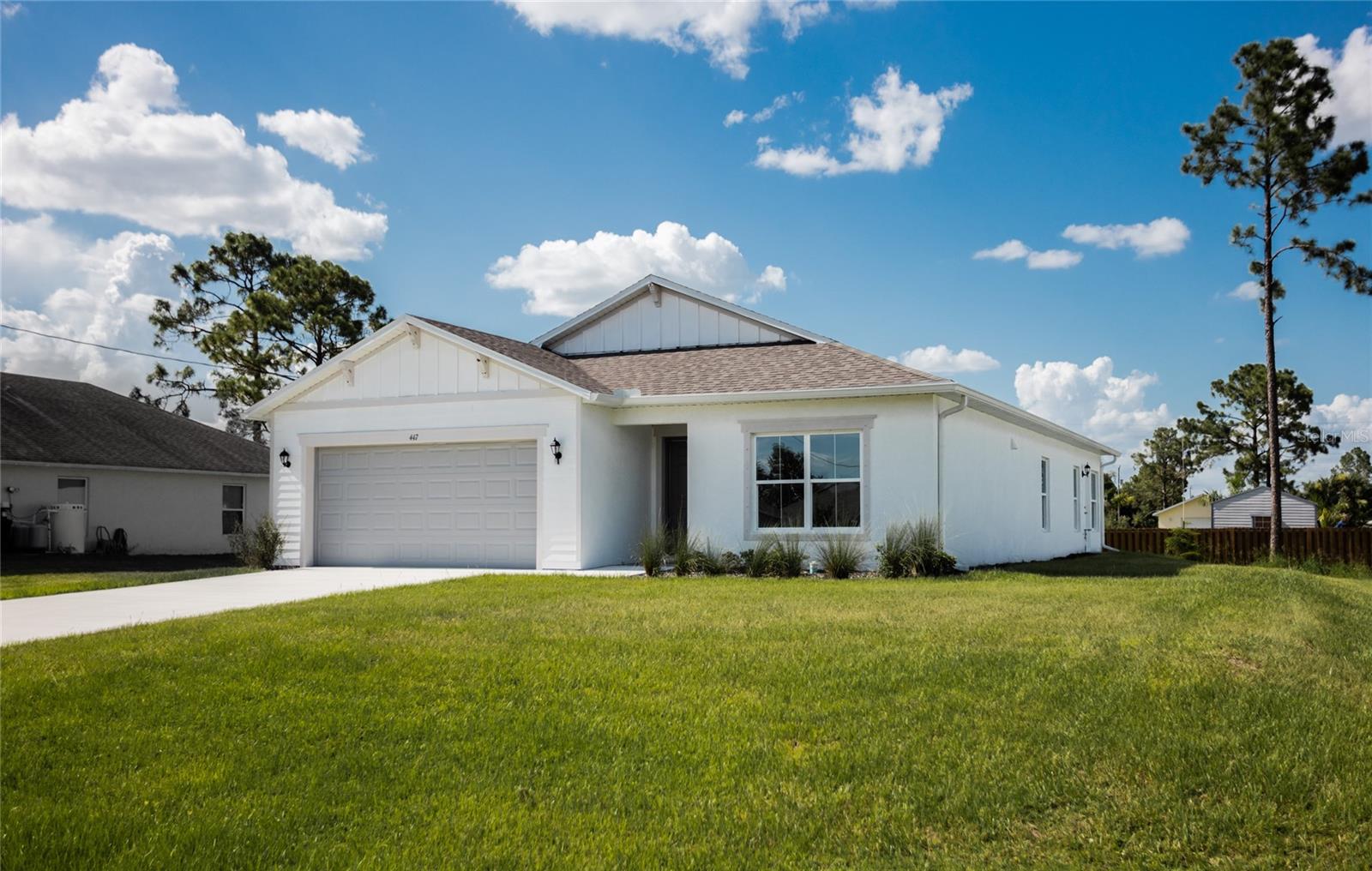 ***NOVA CONSTRUÇÃO, NÃO ESPERE, MOVA-SE PRONTO!*** Eleve seu estilo de vida com a opulência da planta Sanibel apresentada pela Carpenter Homes - uma obra-prima da Florida Living Series, certificada pela Florida Green Building Coalition (FGBC). Esta casa dispõe de 4 quartos e 2 banheiros completos. Esta casa dos sonhos foi projetada e construída para mergulhar você no luxo. Ao entrar, uma bela cozinha lhe dá as boas-vindas, com um amplo bar que flui perfeitamente para a área de estar e de jantar. A elegância dos armários Shaker Stained de 30 "de fechamento suave e das bancadas de granito Crema Pearl atualizadas adicionam um toque funcional de luxo à cozinha. As atualizações da cozinha incluem uma torneira de cozinha cromada Moen Integra, triturador de lixo e elegantes eletrodomésticos de aço inoxidável com eficiência energética. Isto a casa exala sofisticação com um teto abobadado que revela uma varanda espaçosa, criando um refúgio interno e externo. Além disso, a Carpenter Homes oferece um pacote de iluminação atualizado, incluindo pingentes Kemal Bronze sobre a barra da cozinha e luminárias de níquel escovado Oslo em ambos os banheiros, acentuando o estilo. O design geral da iluminação. Ventiladores de teto com acabamento em níquel escovado em cada quarto, bem como na grande sala, ajudam a circular o fluxo de ar e a mantê-lo fresco no clima da Flórida. Complementando a ampla área de estar, há o piso de cerâmica Magnisi 18x18 ”. A suíte do proprietário é um santuário de indulgência, apresentando pias duplas, paredes brancas Magnisi de 8x12” impecavelmente revestidas no chuveiro e um closet de tamanho generoso. A casa possui paredes de azulejos brancos Magnisi 8x12 ”atualizadas na segunda banheira/chuveiro, um tampo de granito Crema Pearl e torneiras cromadas Moen Chateau e kits de acabamento para chuveiro/banheira. A amplitude desta casa continua com uma despensa e acréscimos como isolamento R-4.1 com eficiência energética em paredes externas de concreto, tubos Taexx para controle de pragas e venezianas de tecido para todas as janelas. O jardim paisagístico amigável da Flórida é complementado por um sistema de irrigação com sensor de chuva para ajudar a maximizar a eficiência. A ampla garagem para 2 carros, completa com controle remoto e dois controles remotos, não só oferece amplo espaço para as suas necessidades diárias, mas também garante a máxima comodidade e versatilidade para todas as suas necessidades de armazenamento e estacionamento. Disponível para visualização a qualquer momento!