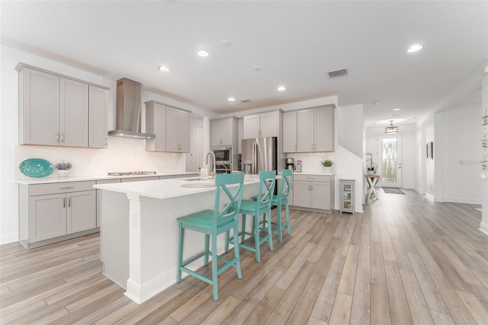 UMA CASA IMPERDÍVEL EM UM LOTE PREMIUM! Esta linda e imaculada casa de 2022 vai muito além de muitos dos modelos de casas mais recentes e semelhantes devido a múltiplas atualizações e melhorias bem pensadas que proporcionam conforto e funcionalidade ideais. Esta casa consiste em 3.408 pés quadrados de área útil e oferece cinco quartos, incluindo uma segunda suíte master no primeiro andar. O quarto principal no andar de cima tem portas francesas que se abrem para um quarto de tamanho generoso com um enorme closet, um grande banheiro principal com pias duplas, chuveiro separado e banheira grande. Para completar o layout do andar de cima, há três quartos adicionais, um grande banheiro de hóspedes, uma sala de bônus no andar de cima e uma lavanderia completa com pia SS, armários e balcão. No andar de baixo, além da grande cozinha aberta/sala de jantar/família, há uma sala flexível escondida (local ideal para uma sala de estudo/escritório/artesanato), uma sala de jantar separada ou sala flexível nº 2 e uma grande despensa. . Existem grandes portas de correr com vista para o quintal paisagístico e totalmente cercado. A cerca de privacidade tem dois portões de acesso para maior comodidade e há calhas recém-instaladas ao redor, um guarda-sol motorizado em um dos pátios e um segundo pátio de concreto 16x16 afastado da casa, proporcionando um cenário perfeito para uma fogueira aconchegante ou ao ar livre. grade. A garagem para dois carros possui Piso Epóxi Premier, estação de trabalho com armários embutidos. Atualizações adicionais incluem ventiladores de teto em 8 áreas - Ventilador de teto Possini Ero Nickel de 65 ”na sala familiar, ventiladores de teto Minka de 54” em 7 quartos, sistema de amaciante de água Culligan para toda a casa + sistema de água Culligan RO na cozinha. Confira... você não ficará desapontado!