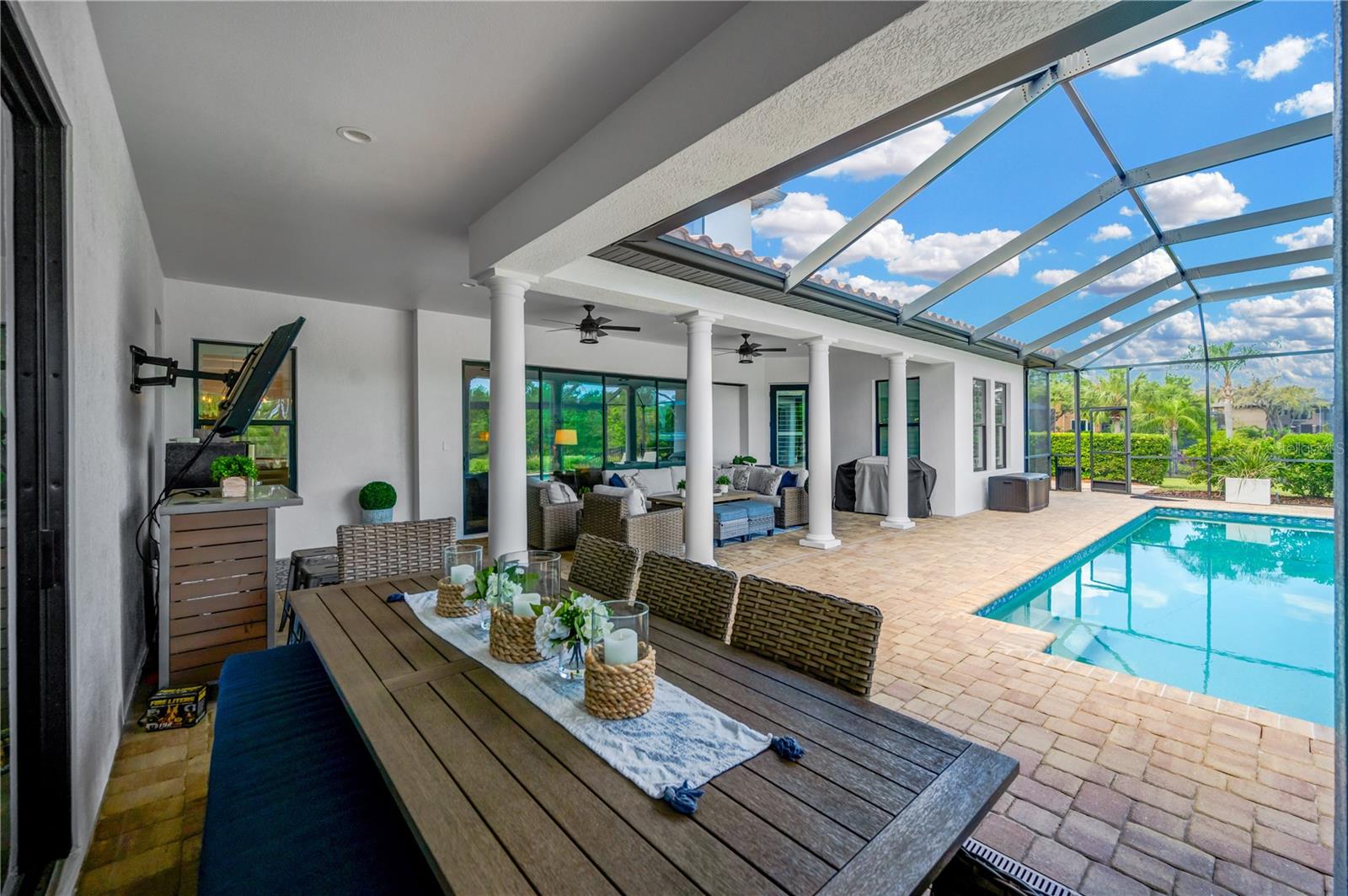 *** Novo preço *** privacidade, tranquilidade, estilo de vida da Flórida - se estes estiverem na sua lista, então seja bem -vindo ao paraíso! Esta casa Sabal personalizada combina perfeitamente o luxo com a funcionalidade, situada no que é, sem dúvida, um dos melhores lotes de Fishhawk - em 0,60 acres que voltam à conservação privada, oferecendo uma vista tranquila. À medida que você se aproxima, uma elevação espetacular do Mediterrâneo o recebe, complementado por uma entrada de automóveis pálida e uma deslumbrante entrada da porta da frente dupla. Esta propriedade executiva é uma obra -prima de atualizações, adornada com toques de grife que a elevam ao auge do design da Flórida. Entre, e a casa se desenrola como um recurso em uma revista HGTV. Moldagem de coroa atualizada, rodapés largos, portas de 8 pés, iluminação personalizada e uma paleta neutra criam uma atmosfera de sofisticação atemporal. O coração desta casa, a cozinha, é um showstopper. Armários brancos de 42 ”com moldagem por coroa, balcões de quartzo, backsplash de ladrilhos, aparelhos de aço inoxidável embutidos, uma ilha central e uma enorme despensa definida definindo o paraíso deste chef. Continue sua jornada, e a sala de bônus é que a sala de bônus é que se une a um quintal de que o Golfer Sonhe com um simulador de golfe profissional (negociável com a compra ou pode ser renovada), o que se refere a um metrô, o que é um dos meios que se unem, o que pode ser renovado para o que é um dos mais relevados, o que é um dos mais relevantes para o que se refere a um soneting de bônus. Retire-se para entreter ou relaxar. Uma academia em casa. Para mostrar vistas de um milhão de dólares Santuário onde o luxo, o conforto e a beleza natural convergem.