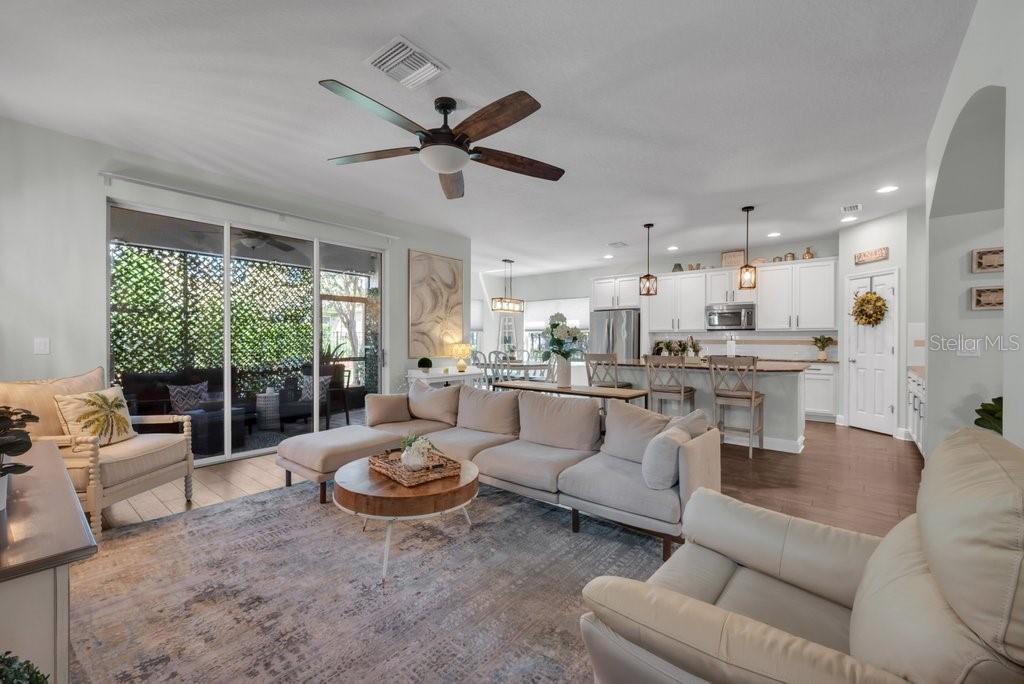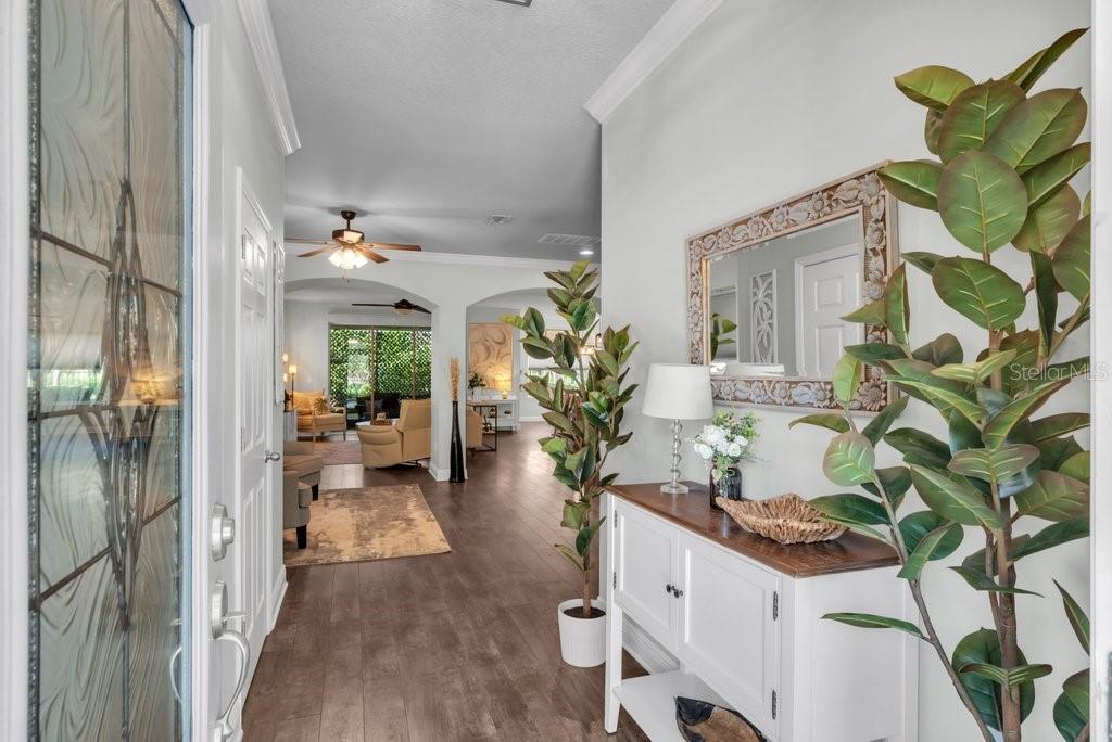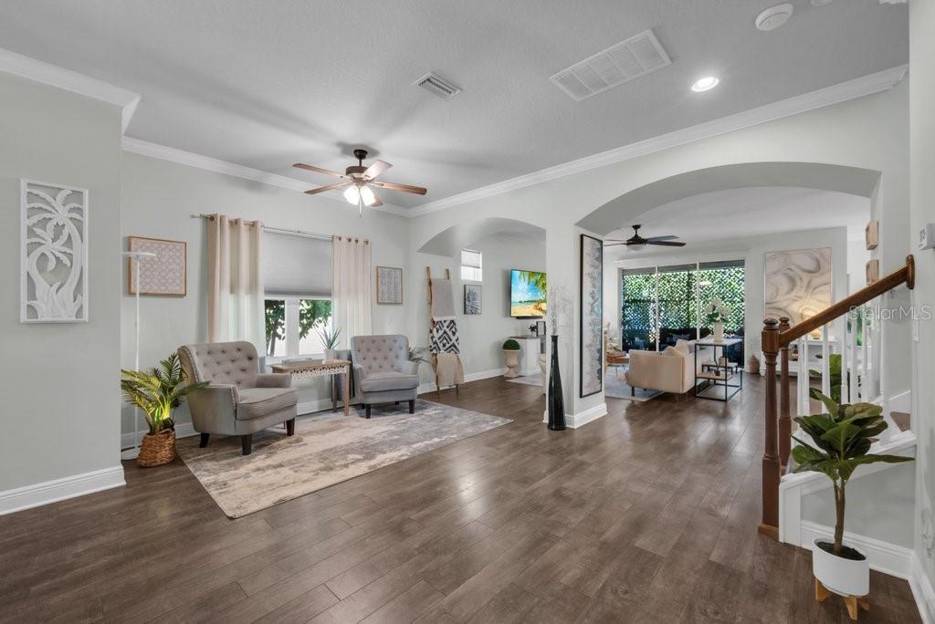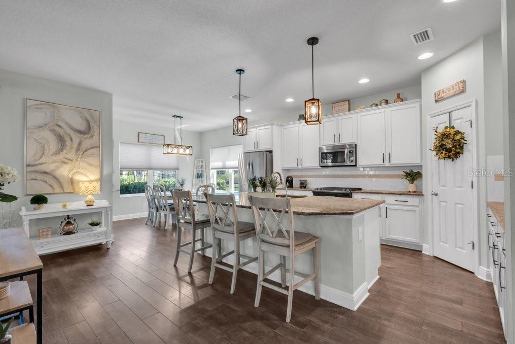 Entre nessa impressionante planta pista de David Weekley Jaeger, onde o estilo encontra conforto. Bem equipado e meticulosamente mantido, oferecendo 2932 pés quadrados de espaço de vida cuidadosamente projetado, com 4 quartos espaçosos, 2,5 banheiros, uma garagem de 2 carros, um escritório em casa dedicado, uma sala de bônus versátil, lanai exibido e um pátio escasso /cingido de um pântano! The gourmet kitchen is a chef’s dream with a large island, stone countertops, 42" cabinets, stainless steel appliances, a walk-in pantry, and a dinette area that flows seamlessly into the open-concept family room. Enjoy effortless indoor-outdoor living with access to the screened lanai from both the family room and dinette. The first floor also features a formal dining room, perfect for entertaining, and a private office ideal for working from home. No andar de cima, a luxuosa suíte master possui um banho de suíte totalmente remodelado (2024) com vaidades duplas, um chuveiro de walk-in e um closet de grandes dimensões. O piso (2022), as persianas do primeiro andar (2023), tinta externa completa (2023) e paisagismo profissional do quintal (2022). Piscina no estilo resort com splash pad, piscina, parque de cães e muito mais.