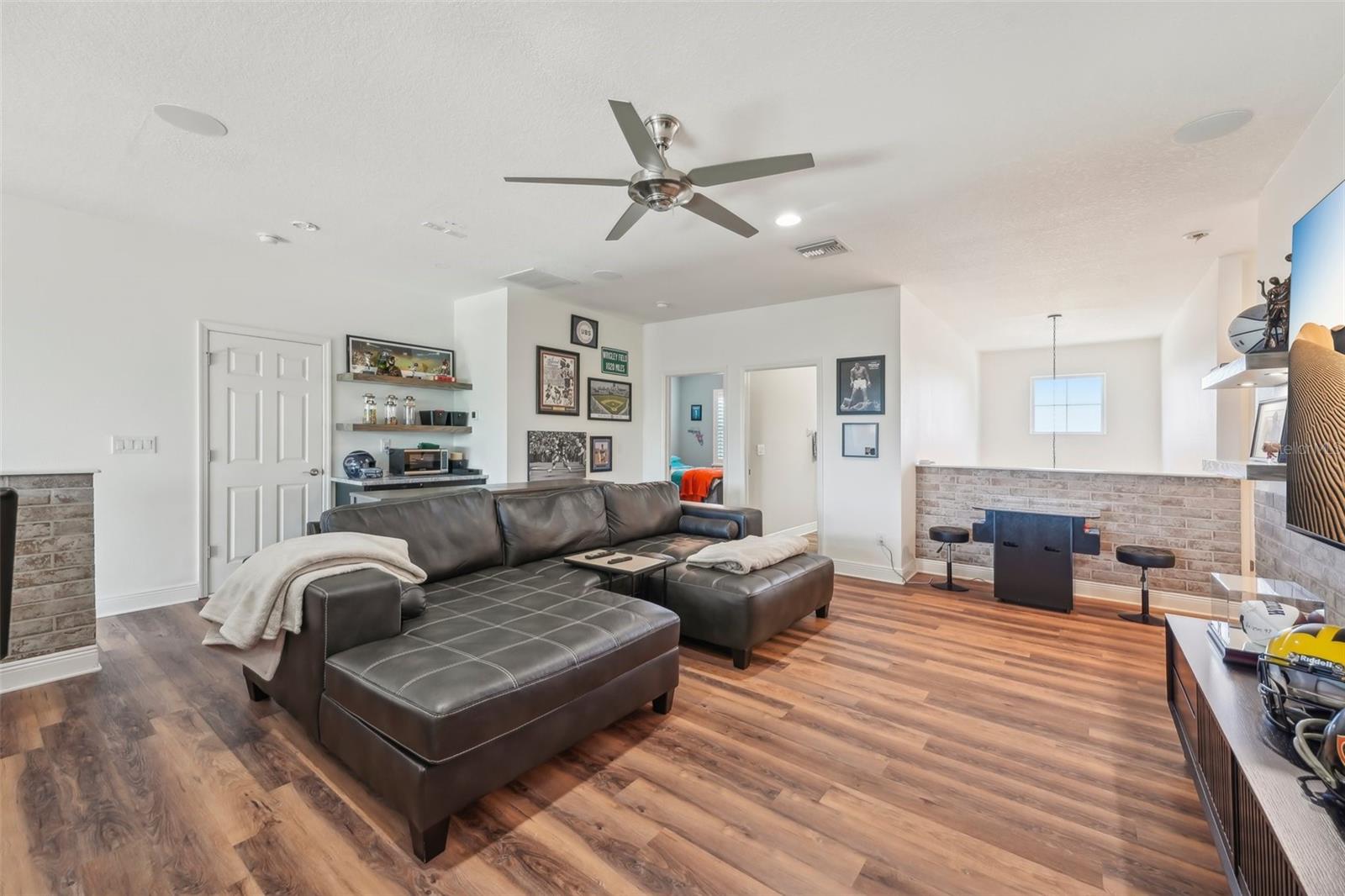 Venha morar, ame e experimente o melhor do que Fishhawk Ranch tem a oferecer nesta incrível casa de Westbay em estilo artesão! Esta nova listagem impressionante tem 5 quartos 5 banheiros "cheios" de 3 carros com "apenas tímido" de 3.500 pés quadrados de área de estar! Esta casa fica em um estacionamento de canto, tem uma bela piscina de água salgada privada, paisagismo deslumbrante, além de várias atualizações importantes no ano passado! O Home possui um novo telhado (2025) todo o novo piso de vinil de luxo (2024) "sem tapete" nesta casa, pintura recentemente (2024)! Your New Gourmet Kitchen Features: 42” Moca Cabinets W/Crown Molding, Granite Counter Tops With HUGE ISLAND AREA To Prepare, Serve & Eat Meals, Appliances Offer Gas Cooktop W/Stainless Steel Hood, Designer Backsplash, Walk-In Pantry, Lots Of EXTRA STORAGE IN CABINETS, And Kitchen Has Two Designated Areas For Both Coffee & Wine Bar ! This PRISTINELY MAINTAINED Home Offers So Much To The Future Owner: Living Room Has MASSIVE TALL CEILING, Built-In Electric Fireplace, Custom Shelving With LED Lighting, There Are Tray Ceilings W/Crown Molding Thru-Out This Home, Loft Area Upstairs Has Brick Stone Accent Walls Along With Wet Bar/Fridge & Custom Shelves, Plantation Shutters In Many Rooms, Garage Has Epoxy Floor/Overhead Shelving, New Sprinkler Timer & Garage Door Opener (2023) Surround Sound In Several Rooms, LOTS OF NATURAL LIGHT, All Fans/Blinds/Curtains E as luzes incluídas! Orgulho da propriedade, então você encontrou sua casa!
