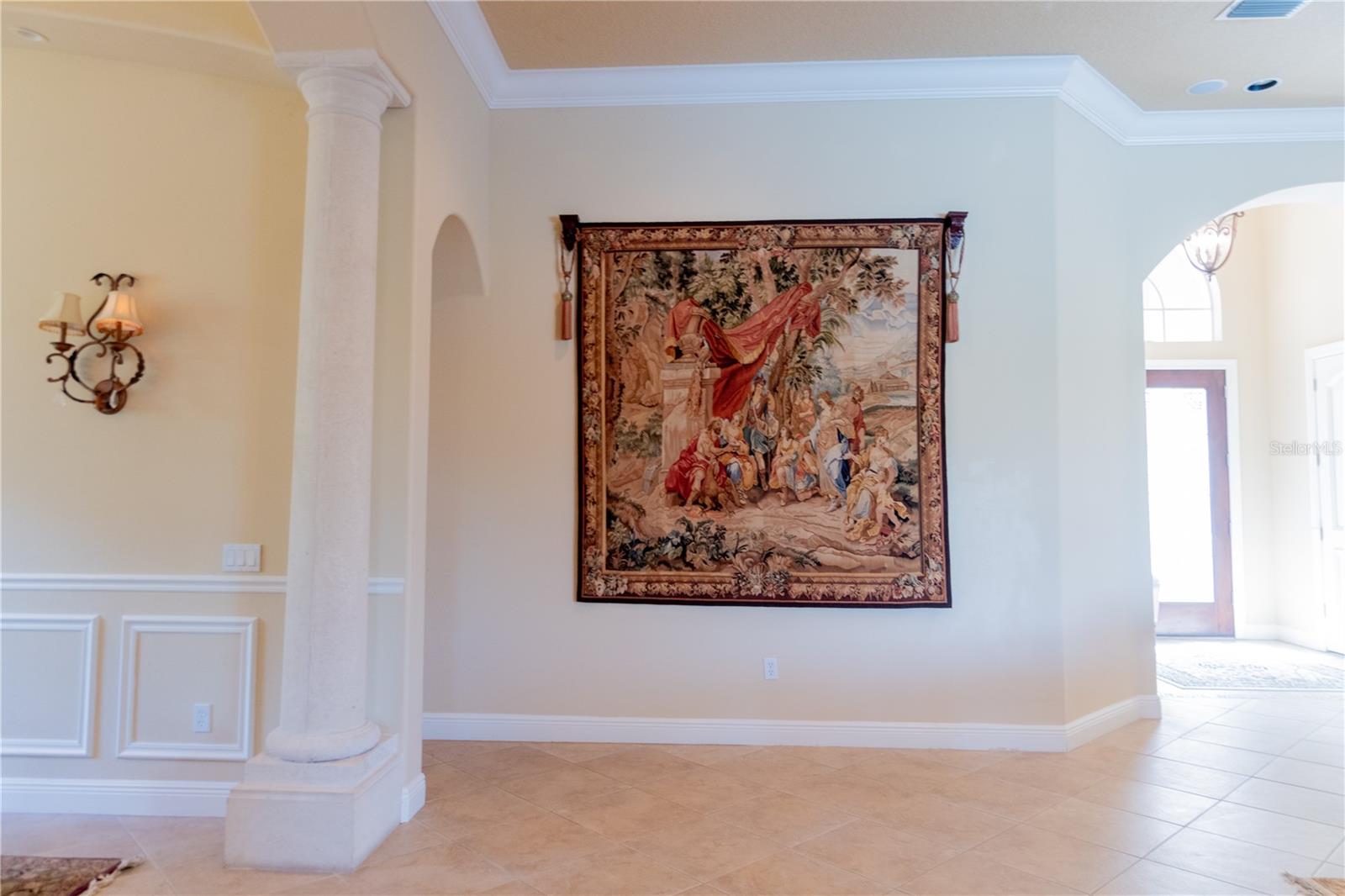 Experimente o luxo incomparável nesta extraordinária residência personalizada de 5.000 pés quadrados da renomada construtora Hannah Bartoletta, idealmente situada em um lote privado de beco sem saída no enclave exclusivo de Kestrelridge em Fishhawk Ranch, com conservação impressionante e vistas de água que criam um pacífico, Picturespque; Esta obra-prima arquitetônica foi projetada para uma vida divertida e descontraída refinada, com um oásis externo em estilo resort com um lanchonete e coberto com acabamento em ladrilhos de travertino, piscina aquecida e spa, lareira a gás, cozinha ao ar livre completa e integração interna fora de interação integral, por meio de uma expansão de bolso triplo na sala familiar. Enquanto lá dentro, a casa exala sofisticação com tetos crescentes de 12 a 14 pés, bandeja intrincada e detalhes em capital com vigas de teto, moldagem por coroa, colunas decorativas e arcos, ladrilhos espanhóis e incrustações diagonais, bancadas de granito e gabinetes de madeira personalizados por toda parte; the gourmet kitchen is a chef’s dream complete with a gas stove, range hood vented to the outside, double ovens, upgraded 65” upper cabinets with crown molding, a fully built-out pantry with custom shelving, and an adjacent wine room with built-in wood finishes; the expansive and light-filled living areas are further elevated by designer chandeliers in the formal dining, living, and family rooms, while the thoughtfully designed layout includes a luxurious first-floor primary suite, private guest suite with en-suite bath, dedicated home office with built-in desk and cabinetry, state-of-the-art home theater, powder bath, pool bath, and a well-equipped laundry room with a hand-washing sink, and upstairs, the wood-accented staircase with hardwood treads and custom railing leads to a versatile loft space, two additional bedrooms, and a full bath; every closet in the home is enhanced with Buildade de madeira premium para armazenamento e organização superiores, todas as portas interiores têm 8 pés de altura e cada banheiro é atualizado com uma função de bidê e lavagem automática; As unidades-incluindo uma novíssima em 2024-, esta casa oferece conforto e paz de espírito, tudo dentro da premiada comunidade de Fishhawk Ranch, conhecida por suas escolas de melhor classificação, comodidades em estilo resort, trilhas extensas, parques, piscinas e centers vibrantes-o Schedule Tour hoje e descobre hoje a vida.