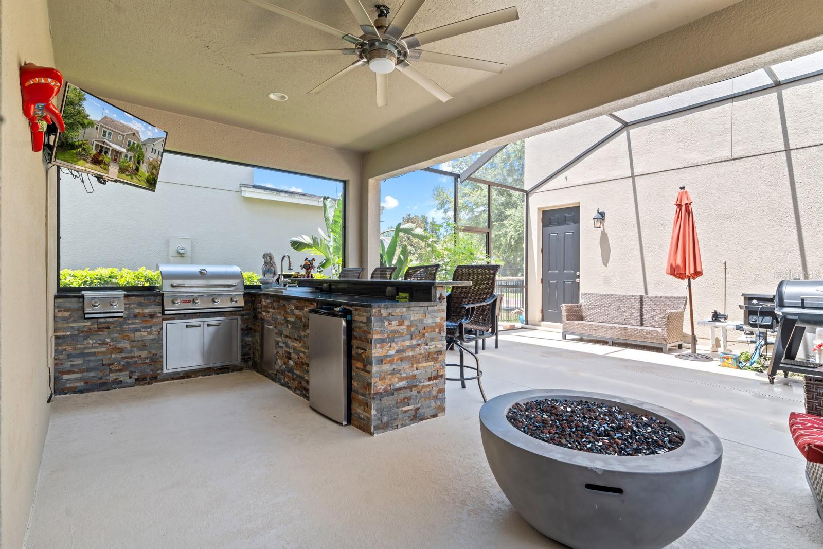 Bem-vindo ao 5955 Caldera Ridge Drive, localizado no altamente desejável FishHawk Ranch West, onde a vida luxuosa encontra a conveniência do dia a dia, e escolas com classificação A estão bem na sua vizinhança. Esta propriedade é elegível para um empréstimo VA Assumable de 2,25%! Este condomínio oferece comodidades em estilo resort, piscina, playground e trilhas panorâmicas para caminhadas, perfeitas para famílias e um estilo de vida ativo. Esta propriedade deslumbrante oferece cinco quartos e quatro banheiros e meio, incluindo um apartamento privativo com entrada própria, cozinha completa, lavanderia, quarto e banheiro completo, ideal para hóspedes, sogros ou renda de aluguel. Caminhando até a entrada da frente, você é saudado por um paisagismo exuberante e um alpendre acolhedor que leva você para dentro de uma sala iluminada e espaçosa, repleta de luz natural e acabamentos modernos. A cozinha do chef é ótima para entretenimento, com bancadas de granito, eletrodomésticos de aço inoxidável e uma grande ilha que flui perfeitamente para a área de estar de conceito aberto. Você também vai adorar a despensa do mordomo e o espaço para refeições formais. A suíte principal oferece um retiro relaxante com banheiro privativo tipo spa, pia dupla e chuveiro com box de vidro. Você também encontrará um escritório doméstico dedicado, uma grande sala de bônus e muito espaço flexível para tornar esta casa sua. Saia e você encontrará seu próprio retiro no quintal, completo com piscina protegida, varanda coberta e uma cozinha externa personalizada com churrasqueira, bar e até mesmo uma TV - perfeita para churrascos de fim de semana e dias de jogos. Esteja você relaxando ao sol ou organizando uma festa à beira da piscina, este espaço é feito para recordações. Esta casa realmente oferece espaço para todos, incluindo uma suíte de hóspedes ou apartamento privativo com cozinha própria, sala de estar, lavanderia e um quarto completo/com cama embutida e banheiro completo. Ideal para habitação multigeracional ou potencial para arrendamento. E não vamos esquecer: você está no coração do FishHawk Ranch West, conhecido por suas escolas de primeira linha, eventos comunitários e acesso a trilhas panorâmicas para caminhada e ciclismo. Desde parques e parques infantis a centros de fitness e piscinas em estilo resort, isto é mais do que apenas uma casa – é um estilo de vida. Se você procura flexibilidade, espaço e o lugar perfeito para crescer, 5955 Caldera Ridge Drive é o ideal. Agende sua exibição hoje mesmo!