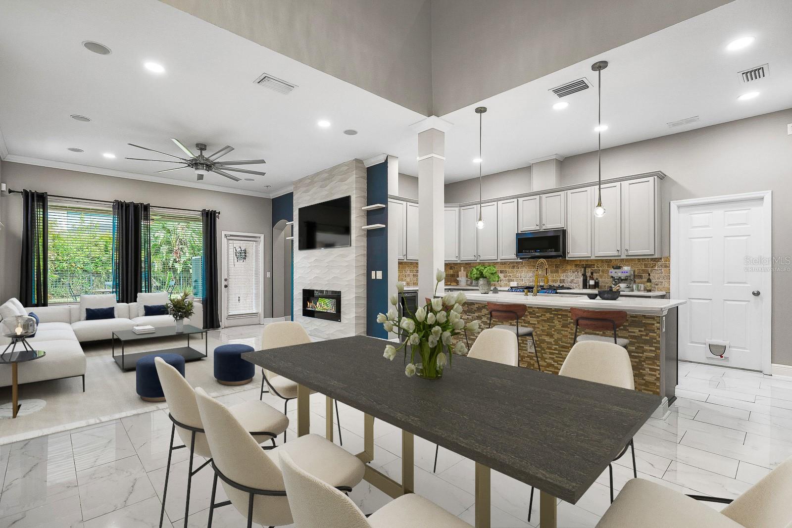 Uma ou mais fotos foram virtualmente encenadas. Bem-vindo a esta deslumbrante casa de 4 quartos, mais loft e 3,5 banheiros, situada na muito procurada comunidade de Fishhawk Ranch West. Este modelo David Weekley Redwing tem 2.380 pés quadrados de área de estar lindamente projetada, garagem para 2 carros e uma planta cuidadosamente elaborada, incluindo uma suíte principal no primeiro andar. Com eletrodomésticos e acabamentos atualizados, esta casa combina aparência elegante de designer com conforto e conveniência. A partir do momento em que você entra, você notará os detalhes que o diferenciam - azulejos decorativos na entrada e no lavabo, luminárias elegantes e atualizadas e piso de mármore que flui perfeitamente pela área de jantar, cozinha e sala de estar. O coração da casa é a espaçosa cozinha gourmet, completa com uma grande ilha e adega refrigerada embutida, perfeita para refeições casuais e divertidas. Os eletrodomésticos foram substituídos em outubro de 2023, conferindo ao espaço um toque fresco e moderno. Tetos altos elevam sua experiência gastronômica e melhoram a exposição à luz natural. A sala é acolhedora e convidativa, apresentando uma parede decorativa em pedra com lareira eléctrica que cria um ponto focal acolhedor. A suíte principal do primeiro andar oferece um retiro privativo com carpete macio, teto abobadado, banheiro privativo tipo spa com pia dupla e box amplo, e um closet personalizado que se conecta diretamente à lavanderia sala. A lavanderia inclui lavadora e secadora empilháveis que vão transmitir com a venda, agregando facilidade ao dia a dia. No andar de cima você encontrará um loft versátil e três quartos secundários. O quarto 2 tem banheiro privativo, enquanto os quartos 3 e 4 compartilham um banheiro completo. Ventiladores de teto em todos os quartos, no loft e na sala proporcionam conforto durante todo o ano. Saia para o seu quintal totalmente cercado e para o pátio traseiro coberto, perfeito para noites relaxantes ou reuniões de fim de semana. A casa também inclui estantes de garagem que ficarão. Além da sua porta, o Fishhawk Ranch West oferece comodidades incomparáveis - piscinas em estilo resort, playgrounds, um parque para cães e a Lake House com academia, sala de recreação, fogueira e áreas de estar serenas à beira do lago. Com lojas, restaurantes e fácil acesso às principais estradas a poucos minutos de distância, esta casa oferece o equilíbrio ideal entre conveniência diária e vida comunitária excepcional.