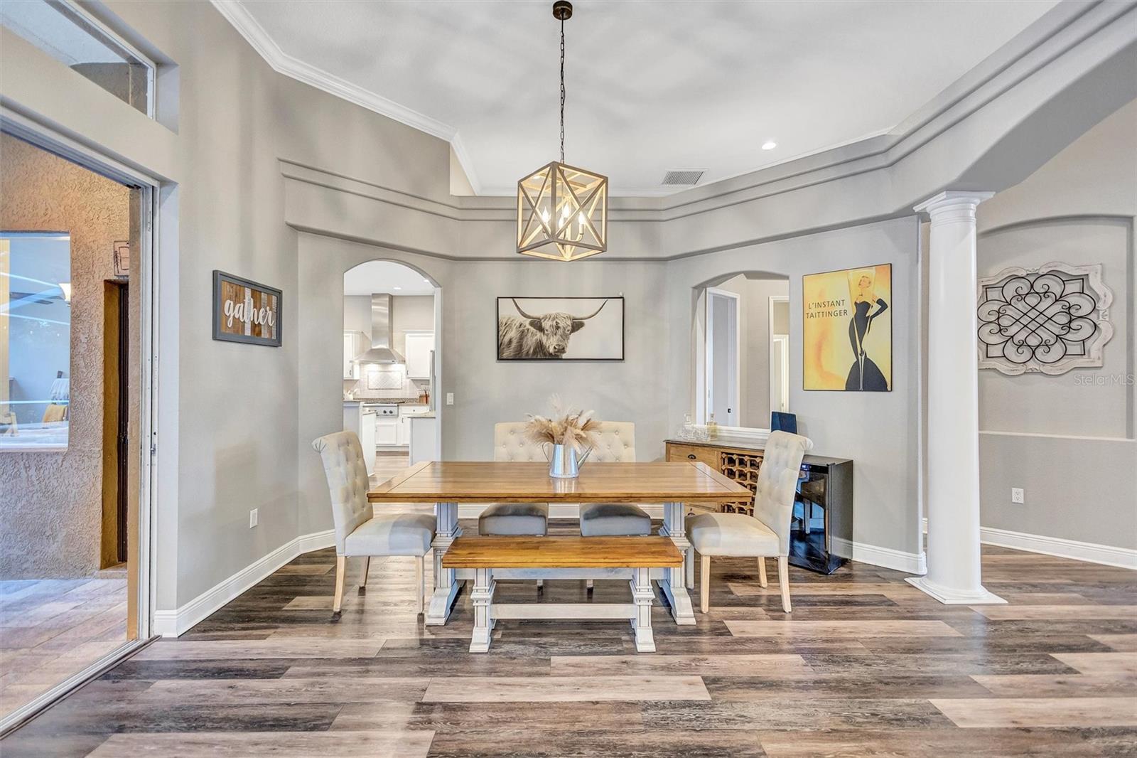 BEM-VINDO ÀS TRILHAS DO FISH HAWK! Uma rara oportunidade de possuir esta deslumbrante casa com piscina Ken Franklin de 5 quartos e 4 banheiros construída no “modelo Dominique” no muito procurado condomínio fechado de Fish Hawk Trails. A partir do momento em que você entra, você é recebido por vistas deslumbrantes da piscina e um cenário sereno de conservação. As salas de estar e jantar formais apresentam colunas elegantes, sancas e uma parede de controles deslizantes de vidro que conectam perfeitamente o interior ao espaço ao ar livre. A cozinha iluminada e iluminada possui armários empilhados, bancadas de granito e eletrodomésticos de aço inoxidável, incluindo um fogão a gás Thermador de 6 bocas, forno embutido e geladeira LG. Um encantador recanto de café da manhã com janelas de esquadria tem vista para a varanda. A espaçosa sala familiar aberta oferece uma lareira de tijolos com estantes personalizadas, luz natural abundante das janelas panorâmicas e controles deslizantes de vidro triplo que levam à área da piscina. A suíte principal é de tamanho generoso, com banheiro privativo com box amplo, banheira de imersão, pia dupla e closet. Os quartos secundários estão bem equipados com um design ideal de Jack & Jill Bath. Um escritório/escritório com portas duplas tem vista para o jardim da frente, enquanto a enorme sala de bônus - localizada no andar de cima - é ideal para uma sala de mídia, quarto, sala de jogos ou retiro de hóspedes. A área do andar de cima inclui um lavabo e amplo armazenamento através de um sótão. Nichos de arte adicionam charme arquitetônico. A lavanderia inclui armários e pia. Projetada para entretenimento, esta casa oferece uma grande varanda coberta, piscina e spa de água salgada recapeada, banheira de piscina e ampla área de estar externa recém-pavimentada. Paredes deslizantes e janelas oferecem vistas quase panorâmicas da piscina cativante e do oásis privado no quintal cercado por conservação. Os destaques adicionais incluem um telhado de 2017, novo aquecedor de água de poliuretano de titânio, amaciador de água e uma garagem lateral de grandes dimensões para 3 carros, melhorando a atratividade do meio-fio. Residentes de Fish Hawk Trails, zoneados para escolas “A Rated”. Você desfrutará de uma entrada vigiada, oito quilômetros de trilhas panorâmicas para caminhada, dois parques, quadras de tênis, PickleBall e basquete e um clube para eventos privados ou comunitários.