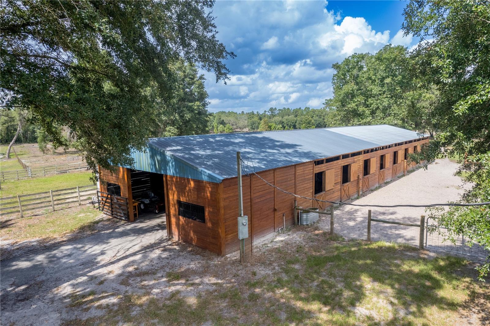 Localizada a apenas 8 km do centro de Live Oak, esta propriedade equestre de 97,98 acres oferece uma vida rural luxuosa. A propriedade é cercada e cruzada, com um celeiro de 13 baias com um quarto, banheiro completo e espaçosa sala de arreios. Além disso, há um celeiro com 6 baias e uma oficina de reparos que pode ser transformada em espaço adicional e dois celeiros abertos para armazenamento de equipamentos. A propriedade inclui 13 pastagens bem conservadas e 4 piquetes, todos com fontes de água acessíveis. Desfrute de mais de 4,8 quilômetros de trilhas pitorescas para cavalos para passeios de lazer ou sessões de treinamento, além de uma área de lago de 2 acres que realça a paisagem. O acesso às utilidades é feito em toda a propriedade através de dois poços, três postes elétricos e três fossas sépticas. A residência principal com 3.284 pés quadrados oferece 3 quartos, 2 banheiros e um loft no andar de cima com 4 camas. No interior, a casa apresenta conforto e estilo decorados profissionalmente, com áreas de estar espaçosas, perfeitas para relaxamento e entretenimento. Uma sala familiar/sala de jogos adicional com área de loft oferece espaço versátil. Quer você seja um ávido entusiasta de cavalos ou esteja procurando um retiro tranquilo com amplo espaço e comodidades, esta propriedade promete um estilo de vida de conforto, conveniência e beleza natural. Agende hoje mesmo seu tour privado!