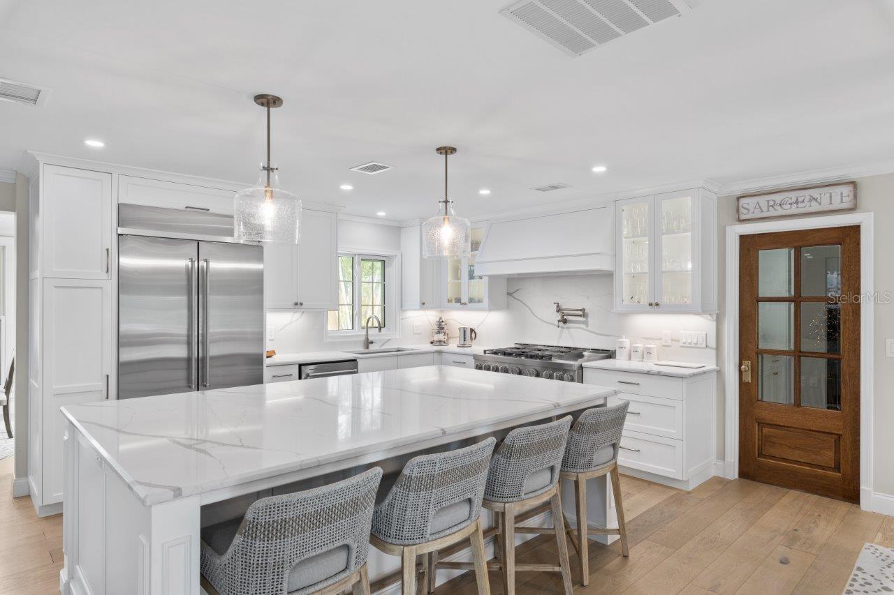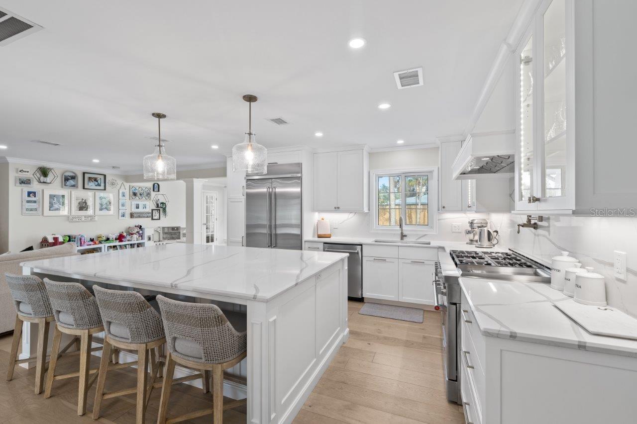 Casa com piscina completamente renovada em Longboat Key, situada em um lote duplo, a poucos minutos de Longboat Key Beach! Impecavelmente redesenhada, esta casa apresenta uma planta aberta espaçosa e deslumbrante com piso de tábuas de carvalho, janelas e portas de furacão e iluminação embutida atualizada por toda parte. Ao passar pela área de estar, você mergulhará na cozinha gourmet com armários Campbell personalizados, lindo quartzo, ilha enorme e eletrodomésticos Kitchen Aid de nível comercial. Ao entrar em sua espaçosa marquise, você será saudado por uma vista de 180 graus do oásis de seu quintal. O quintal possui uma piscina de água salgada aquecida de 8 pés de profundidade, pátio de pavimentação estendido, duas conexões de cozinha ao ar livre, grama artificial de alta qualidade e paisagismo fresco, tornando este o lugar perfeito para receber convidados! A suíte do proprietário possui não um, mas dois armários personalizados que levam ao seu luxuoso banheiro, com penteadeira de mármore, armários personalizados e banheira embutida com porta de vidro sem moldura. O escritório/escritório está centralmente localizado fora da área de estar principal e da marquise, ideal para o seu trabalho em casa! Além disso, para ser totalmente redesenhada, esta casa foi completamente reformada, novas linhas elétricas, novas tomadas e linhas de gás natural foram instaladas. Novo HVAC e A/C Central, NOVO TELHADO. Nenhuma despesa foi poupada! Entre e aproveite! Localizado no extremo norte de Longboat Key, você está a poucos minutos da praia de Longboat Key, rampas para barcos públicos, restaurantes requintados, lojas, salões de beleza, barcos e barcos de pesca, jet skis, parasailing e muito mais! Esta casa é a combinação perfeita? Agende uma exibição hoje!