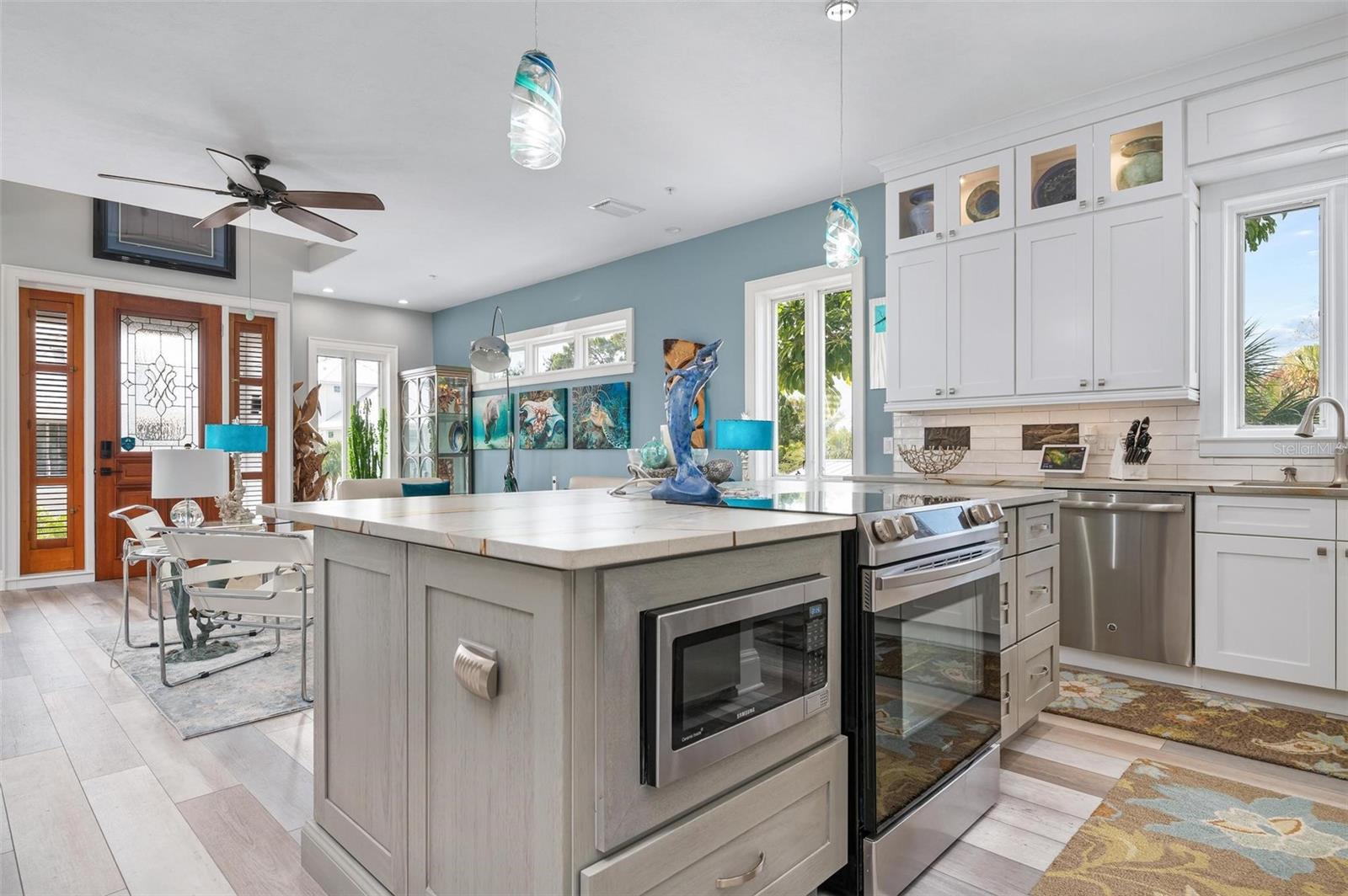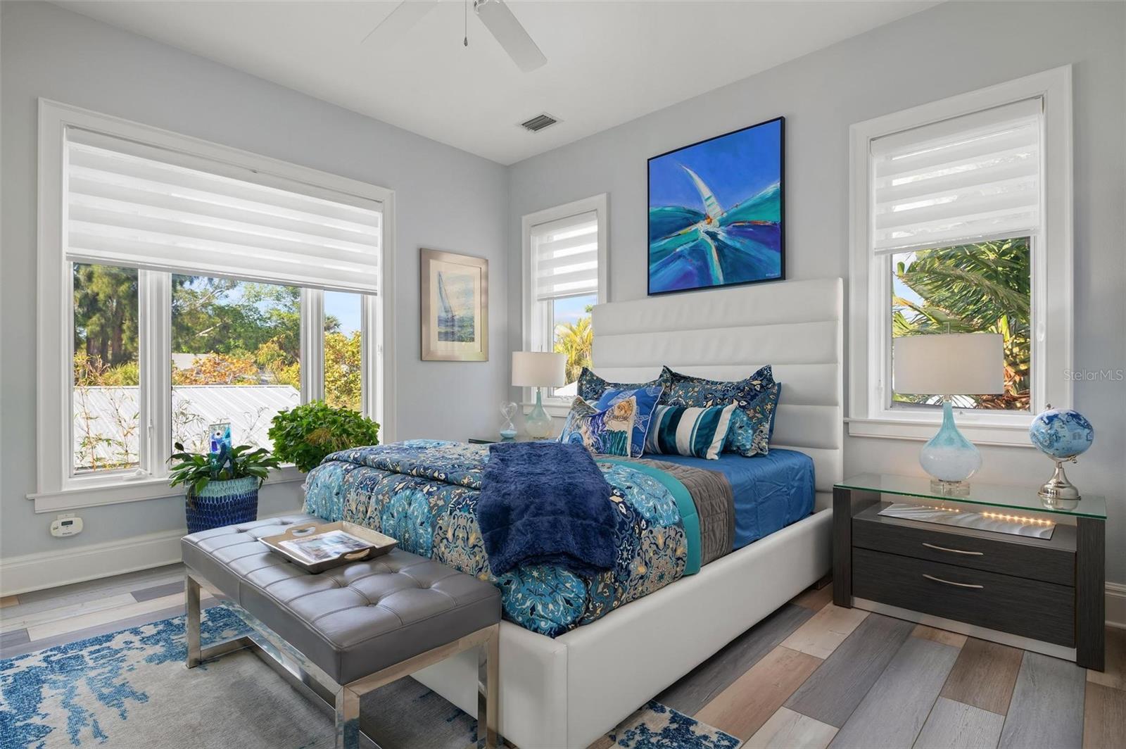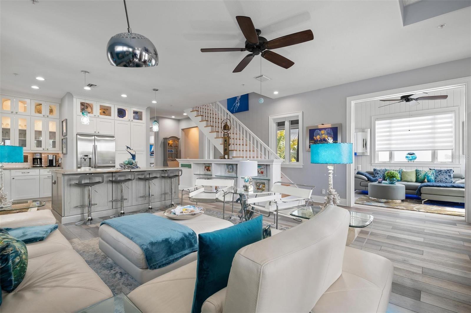 Esta deslumbrante casa costeira contemporânea em estilo Key West está localizada na cobiçada área histórica de Longbeach Village, no extremo norte de Longboat Key. Originalmente projetada e construída sob medida por Steven Carr para si mesmo, esta magnífica casa em plano aberto oferece muitos recursos e acabamentos desejáveis, incluindo vitrais, tetos abobadados de madeira, estantes embutidas e um elevador. As atualizações recentes (2020) incluem: cozinha com ilha central e balcões de quartzito, eletrodomésticos de aço inoxidável, luminárias de vidro artístico, backsplash de azulejos artísticos personalizados, iluminação de gabinete LED e piso de pranchas de vinil de luxo de fácil manutenção em todo o segundo nível. Os banheiros foram refeitos (2020) com box amplo, balcões de quartzo e acabamentos de alta qualidade. Duas novas unidades HVAC (2022), lavadora/secadora, cortinas (2023), calhas contínuas no lado sul (2020) e atualizações tecnológicas, incluindo termostatos Google Home, campainhas, câmeras de segurança, alto-falantes Sonos sem fio e extensores Wi-Fi amplificam a casa recursos modernizados. A espaçosa e exclusiva suíte principal ocupa todo o terceiro nível e possui piso de madeira, estantes embutidas e um estúdio bônus. O grande banheiro privativo foi atualizado com um amplo box amplo, backsplashes personalizados de azulejos de arte oceânica e bancadas de couro de quartzo. A garagem superdimensionada do primeiro nível possui duas vagas para veículos, armários personalizados e uma grande área central que acomoda uma academia doméstica e/ou mesa de sinuca. Existem varandas em todos os níveis, onde você pode desfrutar de brisas confortáveis e sons ocasionais das ondas do Golfo nas proximidades. As áreas externas oferecem espaços privativos, incluindo um tranquilo jardim Zen com fogueira, rede e iluminação de café. O lote oferece espaço para estacionamento de hóspedes e um barco que pode ser lançado na área de lançamento compartilhada do bairro. Aproveite a praia deserta do Golfo, as lanchas de caiaque da vila, os cais de pesca e os restaurantes à beira-mar próximos, classificados entre os melhores da área metropolitana de Sarasota. Palavras não podem descrever a beleza e o encanto únicos que esta casa oferece, por isso marque uma visita para ver por si mesmo.