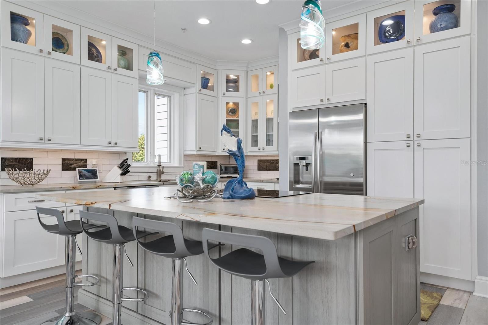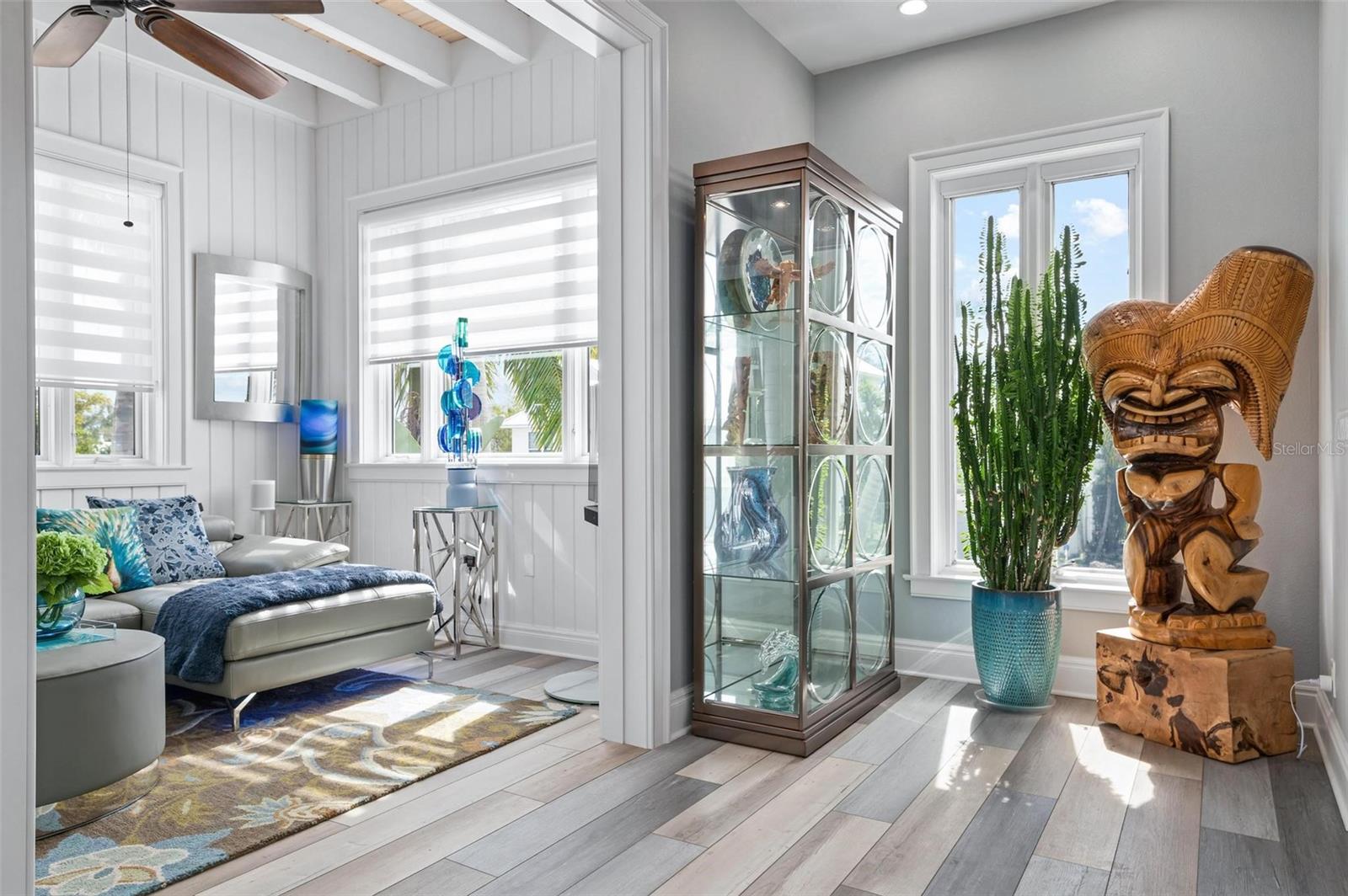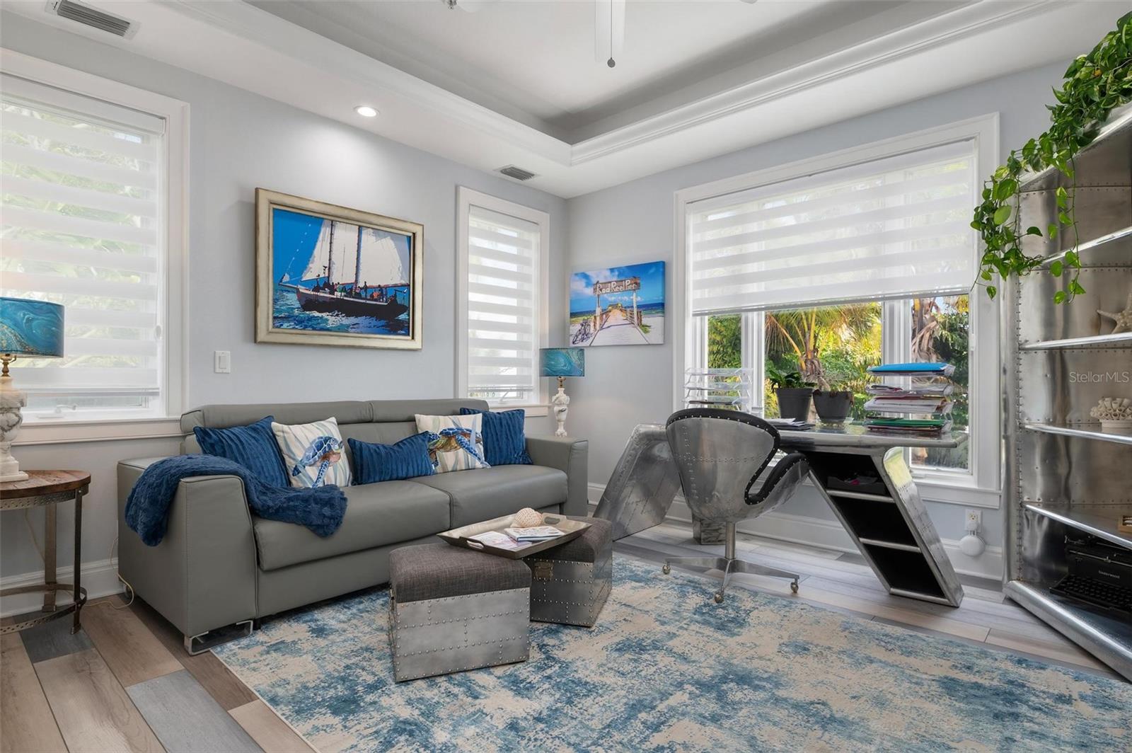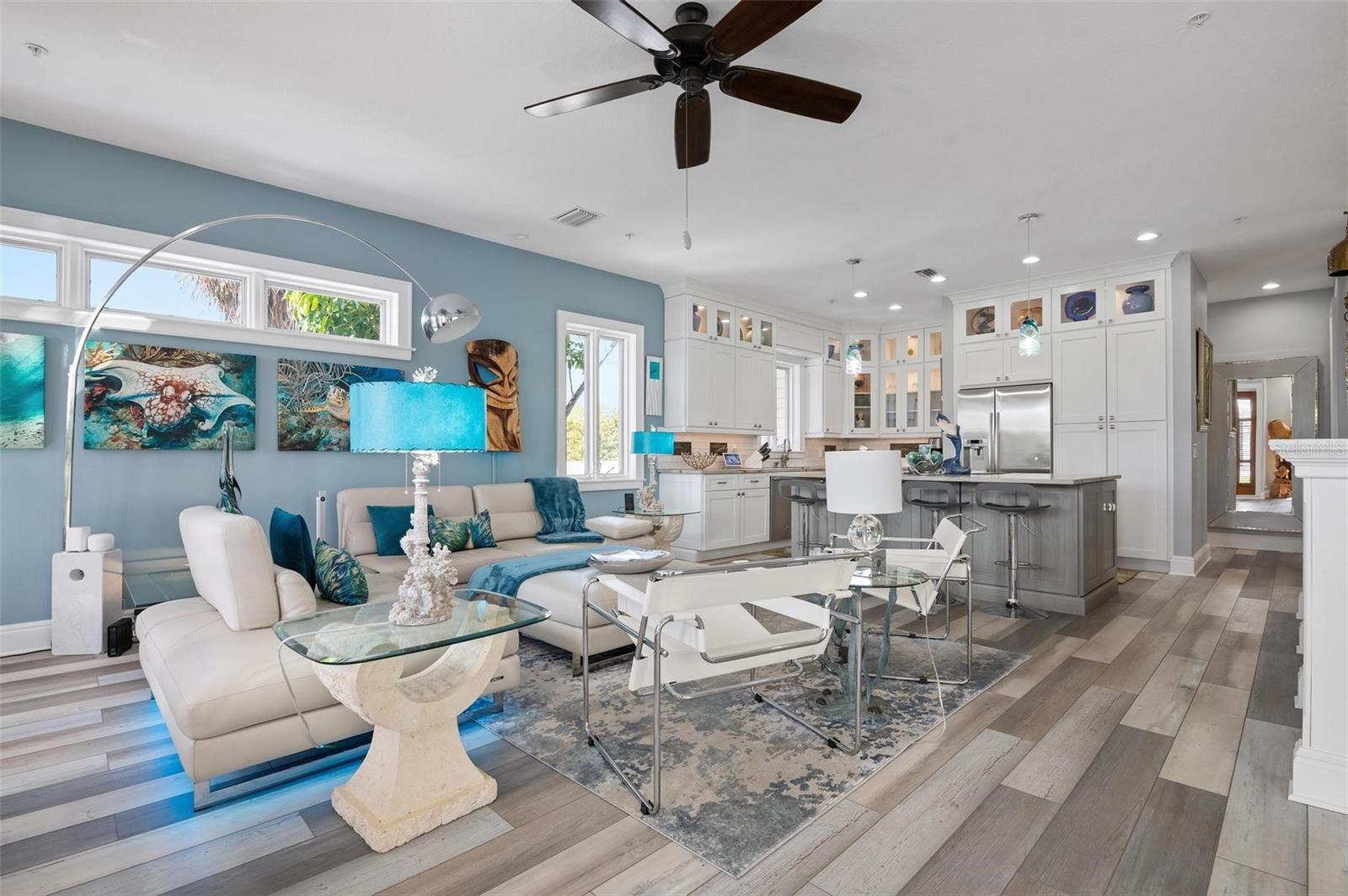 Esta deslumbrante casa costeira contemporânea em estilo Key West está localizada na cobiçada área histórica de Longbeach Village, no extremo norte de Longboat Key. Originalmente projetada e construída sob medida por Steven Carr para si mesmo, esta magnífica casa em plano aberto oferece muitos recursos e acabamentos desejáveis, incluindo vitrais, tetos abobadados de madeira, estantes embutidas e um elevador. As atualizações recentes (2020) incluem: cozinha com ilha central e balcões de quartzito, eletrodomésticos de aço inoxidável, luminárias de vidro artístico, backsplash de azulejos artísticos personalizados, iluminação de gabinete LED e piso de pranchas de vinil de luxo de fácil manutenção em todo o segundo nível. Os banheiros foram refeitos (2020) com box amplo, balcões de quartzo e acabamentos de alta qualidade. Duas novas unidades HVAC (2022), lavadora/secadora, cortinas (2023), calhas contínuas no lado sul (2020) e atualizações tecnológicas, incluindo termostatos Google Home, campainhas, câmeras de segurança, alto-falantes Sonos sem fio e extensores Wi-Fi amplificam a casa recursos modernizados. A espaçosa e exclusiva suíte principal ocupa todo o terceiro nível e possui piso de madeira, estantes embutidas e um estúdio bônus. O grande banheiro privativo foi atualizado com um amplo box amplo, backsplashes personalizados de azulejos de arte oceânica e bancadas de couro de quartzo. A garagem superdimensionada do primeiro nível possui duas vagas para veículos, armários personalizados e uma grande área central que acomoda uma academia doméstica e/ou mesa de sinuca. Existem varandas em todos os níveis, onde você pode desfrutar de brisas confortáveis e sons ocasionais das ondas do Golfo nas proximidades. As áreas externas oferecem espaços privativos, incluindo um tranquilo jardim Zen com fogueira, rede e iluminação de café. O lote oferece espaço para estacionamento de hóspedes e um barco que pode ser lançado na área de lançamento compartilhada do bairro. Aproveite a praia deserta do Golfo, as lanchas de caiaque da vila, os cais de pesca e os restaurantes à beira-mar próximos, classificados entre os melhores da área metropolitana de Sarasota. Palavras não podem descrever a beleza e o encanto únicos que esta casa oferece, por isso marque uma visita para ver por si mesmo.