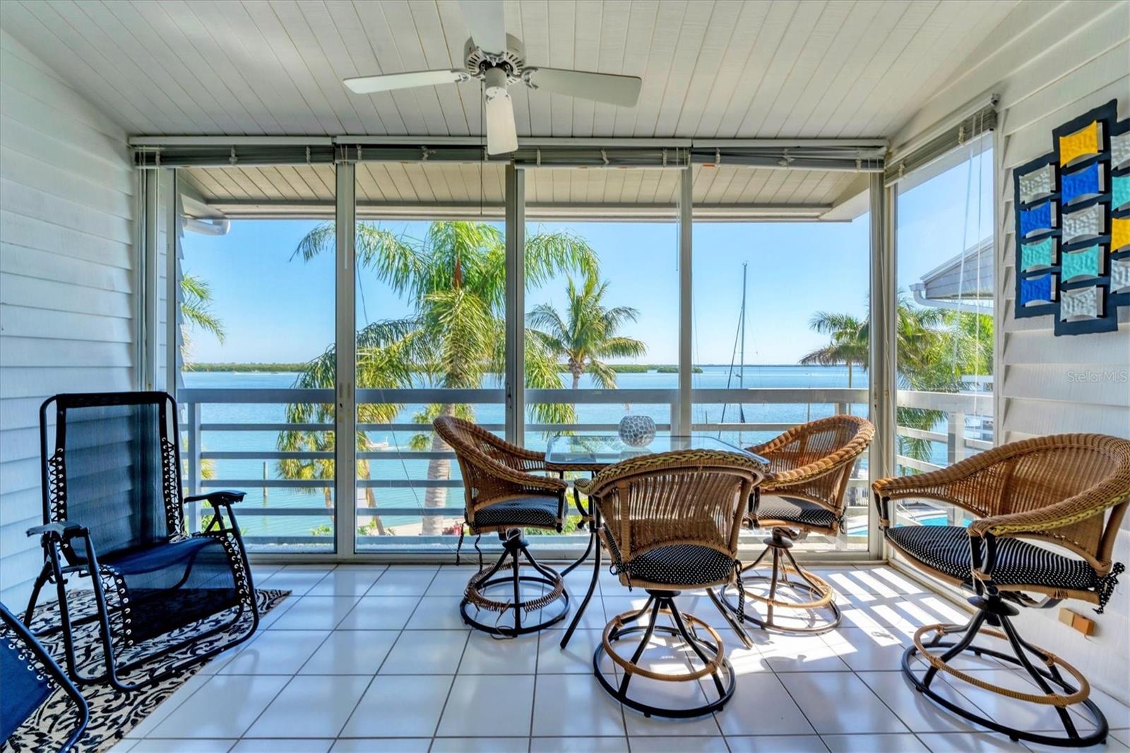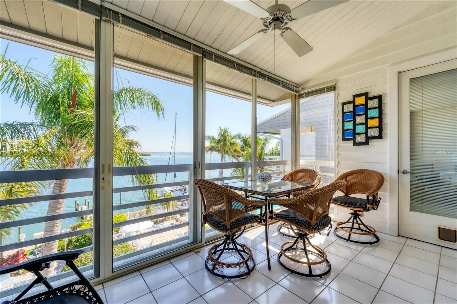 Esta comunidade especial está escondida da agitação, mas oferece um pouco de tudo. Aqui, você terá uma casa para o seu barco, juntamente com uma residência renovada e móvel do 3º andar. E o melhor de tudo é que você terá vistas de 180 graus da Baía de Sarasota. Relaxe em seu vidro privado fechado e com ar condicionado, levando as vistas de água em constante mudança, atividade de passeios de barco, vida selvagem da Flórida e os arredores tropicais. Este condomínio lindamente renovado de 2 quartos foi atualizado com pisos de ladrilhos por toda parte e cozinha atualizada. Por estar no 3º andar, há tetos abobadados para um ambiente leve e brilhante. O Lanai é vidro fechado com uma parede de portas de vidro deslizantes que podem ser abertas até a brisa. Os móveis são todos novos nos últimos anos, incluindo um sofá dorminhoco na sala de estar. Seu deslizamento de barco atendido pode acomodar até 42 pés de barco e foi recentemente reconstruído. O Harbor Villa Club é o segredo mais bem guardado de Longboat Key, com apenas 39 unidades e um raro aluguel mínimo de 7 dias. Escondido no final da estrada, está longe da agitação e do ruído da estrada, mas ainda está perto o suficiente para uma rápida caminhada até a praia. É uma comunidade amigável para animais de estimação com toneladas de comodidades, incluindo 4 quadras de tênis/pickleball iluminadas, centro de negócios, rampa de barcos particulares, piscina espaçosa, estacionamento coberto, talhes de barco cometidos com eletricidade e água, armazenamento de caiaques e bicicletas, banheira de quente, churrasqueiras ao ar livre, elevadores e uma linda paisagem exuberante. O Harbor Villa Club se saiu relativamente bem nas tempestades recentes, com alguns danos mínimos da área comum, sem onda de inundação em nenhuma das unidades. O proprietário está em processo de atualização dos dois banhos - novas vaidades/encanamento/contadores, além de substituir a banheira por caminhada no chuveiro