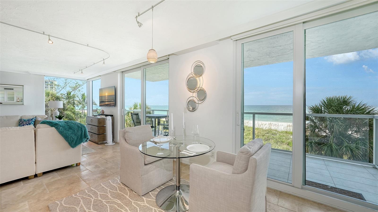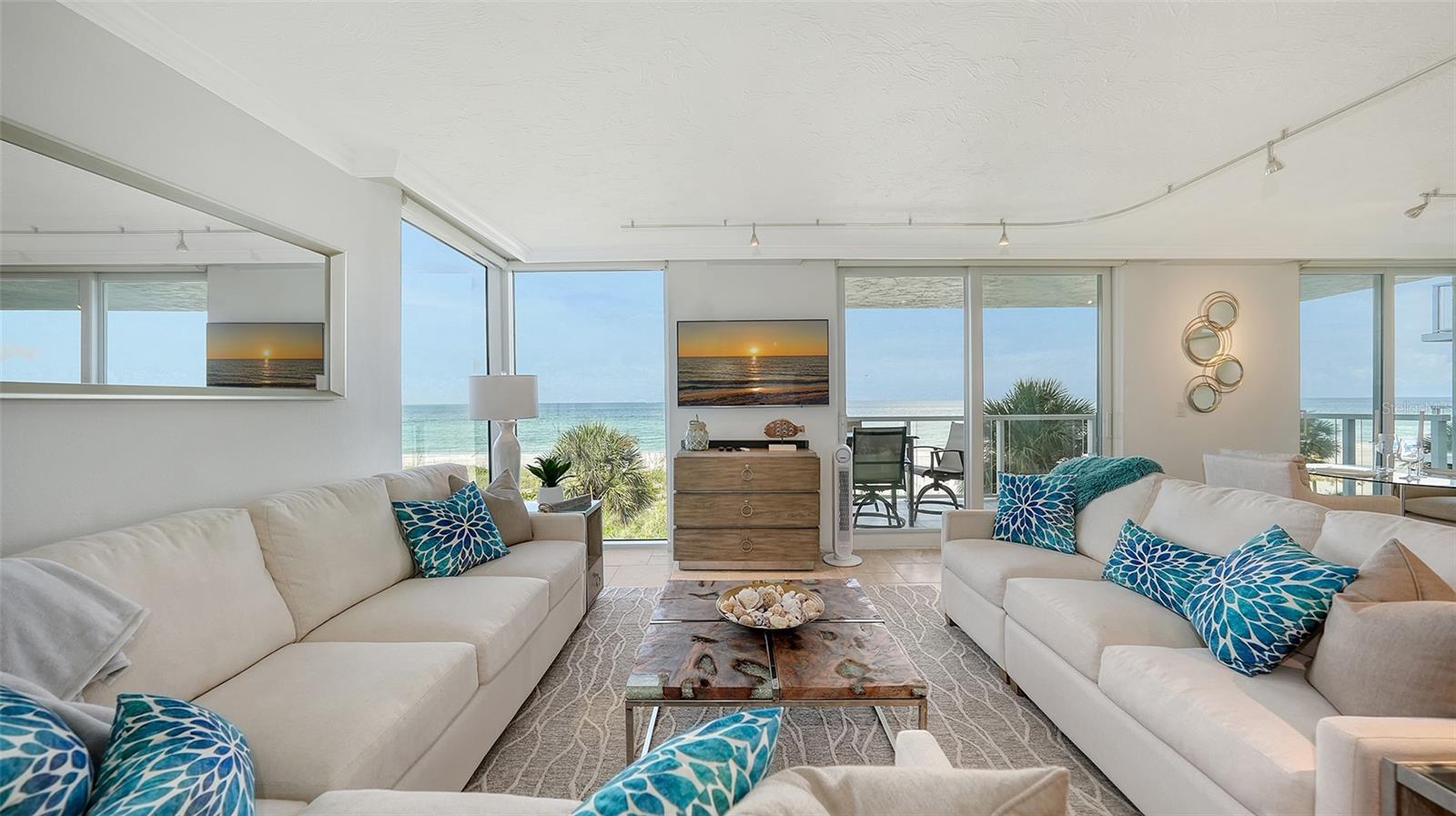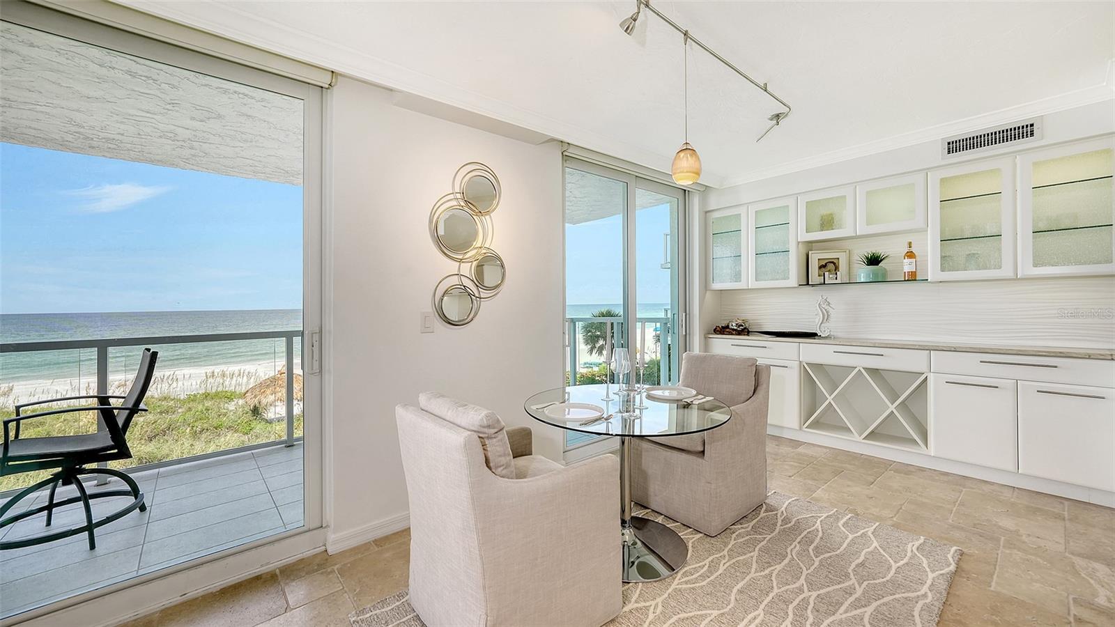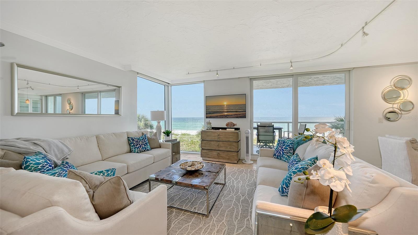 Eleve seu estilo de vida costeiro com esta residência requintada no Sea Gate Club em Longboat Key. Perfeitamente posicionado para oferecer vistas diretas das deslumbrantes ondas do Golfo, este retiro atualizado de quase 1.500 pés quadrados está pronto para morar e mobiliado. Entre na recém-renovada varanda à beira-mar, onde grades de vidro melhoram as vistas desobstruídas e brilhantes da praia que fluem perfeitamente de sala em sala, culminando em vistas deslumbrantes do pôr do sol que completam o seu dia. O layout de conceito aberto é adornado com superfícies elegantes, uma paleta neutra e fresca, nova iluminação, tratamentos de janela personalizados e sancas. Banheiros recentemente modernizados, concluídos em 2024, e piso de travertino contribuem para a sensação arejada e expansiva da casa. Janelas de impacto e controles deslizantes de vidro, instalados em 2019/20, emolduram lindamente essas vistas cativantes. A elegante cozinha de quartzo tem vista para a área de estar e jantar, bem como para o terraço de frente para o Golfo. Esta cozinha em estilo galera está equipada com eletrodomésticos de aço inoxidável, armazenamento de vinho embutido, armários elegantes com recortes de vidro, backsplash de azulejos exclusivo e uma aconchegante sala de jantar. Paredes de vidro do chão ao teto infundem luz natural em todos os cantos, realçando o ambiente ensolarado da casa. O quarto principal, situado no lado sul para ótima iluminação natural, oferece vista direta para a praia, closet embutido e banheiro privativo recém-atualizado. O quarto de hóspedes, localizado no lado norte para maior privacidade, é espaçoso o suficiente para incluir sua própria área de estar voltada para o Golfo, garantindo conforto aos visitantes. Localizada no terceiro andar, esta residência está convenientemente perto das impressionantes comodidades do Sea Gate Club. Esta comunidade privada fica no extremo sul de Longboat Key, em meio a uma vegetação exuberante e à beleza costeira, compreendendo apenas 90 residências e passou recentemente por extensas reformas. O estuque exterior do edifício foi renovado, novas janelas e grades de varanda em todo o edifício, entradas e corredores foram atualizados e uma nova sala social com cozinha de catering foi adicionada. O centro de fitness renovado apresenta equipamentos totalmente novos. Os residentes se beneficiam de gerenciamento no local, armazenamento de bicicletas com ar-condicionado e armazenamento de caiaques. Aproveite o acesso ao terraço do Gulfside com piscina aquecida e aproveite as quadras de tênis Har-Tru para um ou dois jogos. O acesso à praia por escritura leva a um trecho privado da costa de Longboat Key, completo com áreas de estar para seu relaxamento. Experimente o melhor da vida costeira no Sea Gate Club, onde cada detalhe é projetado para oferecer luxo, conveniência e vistas deslumbrantes.