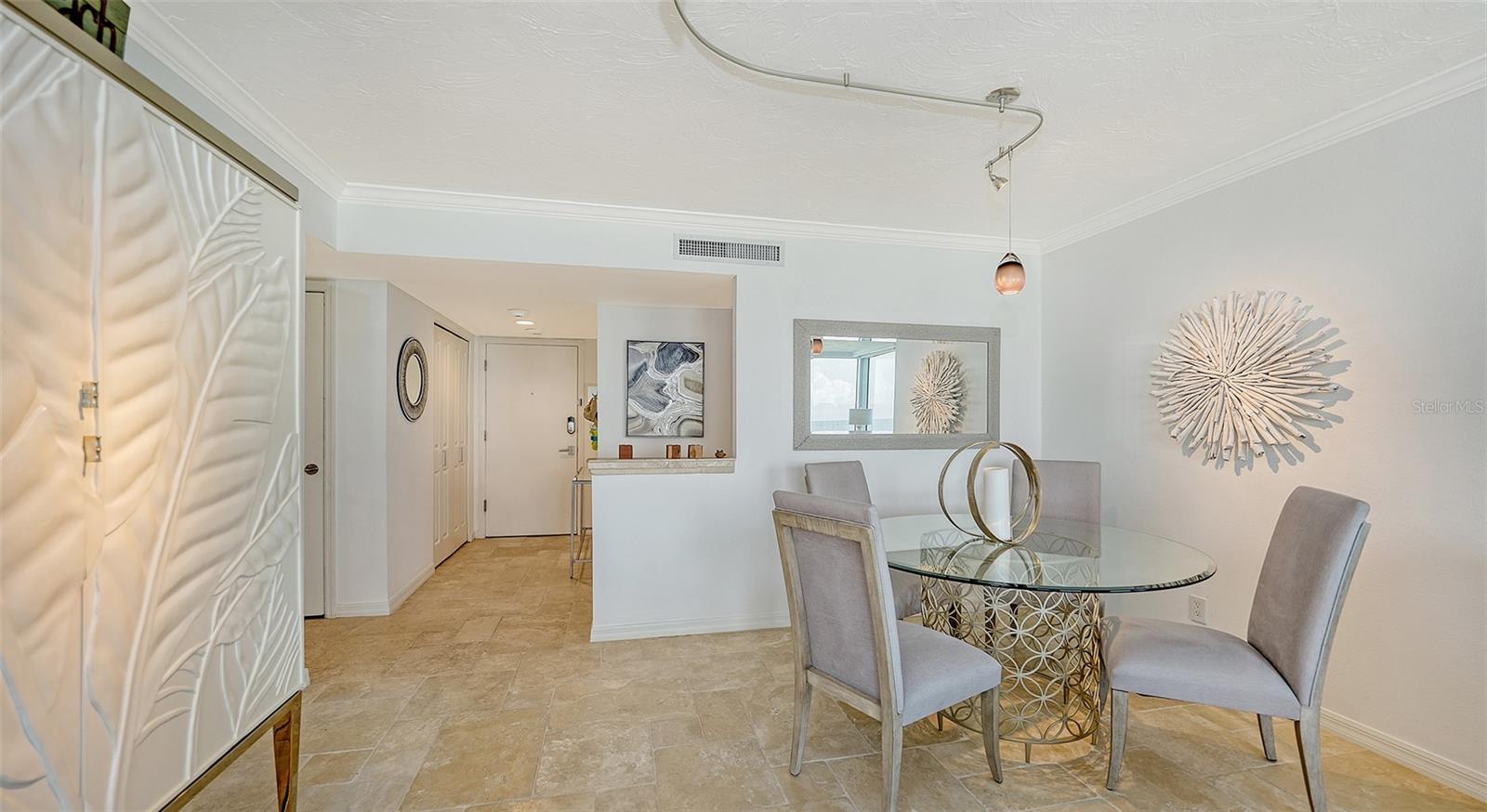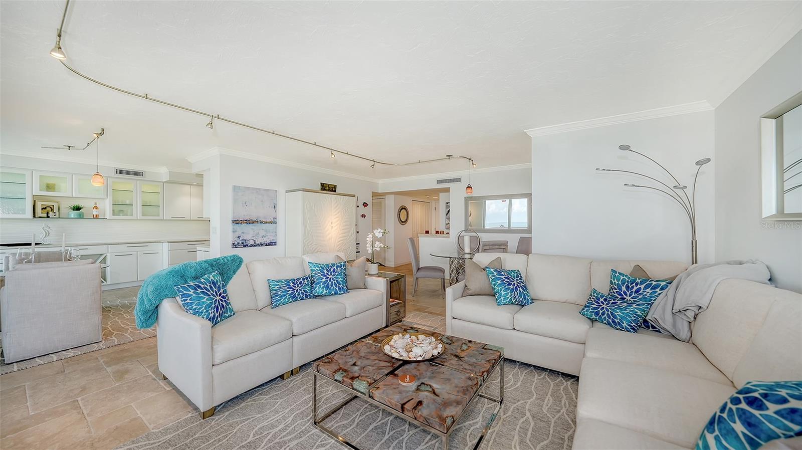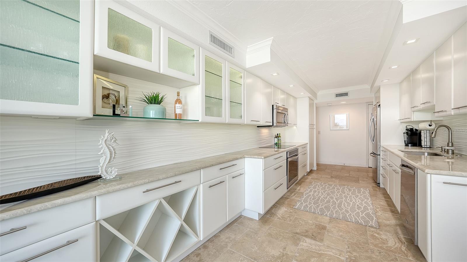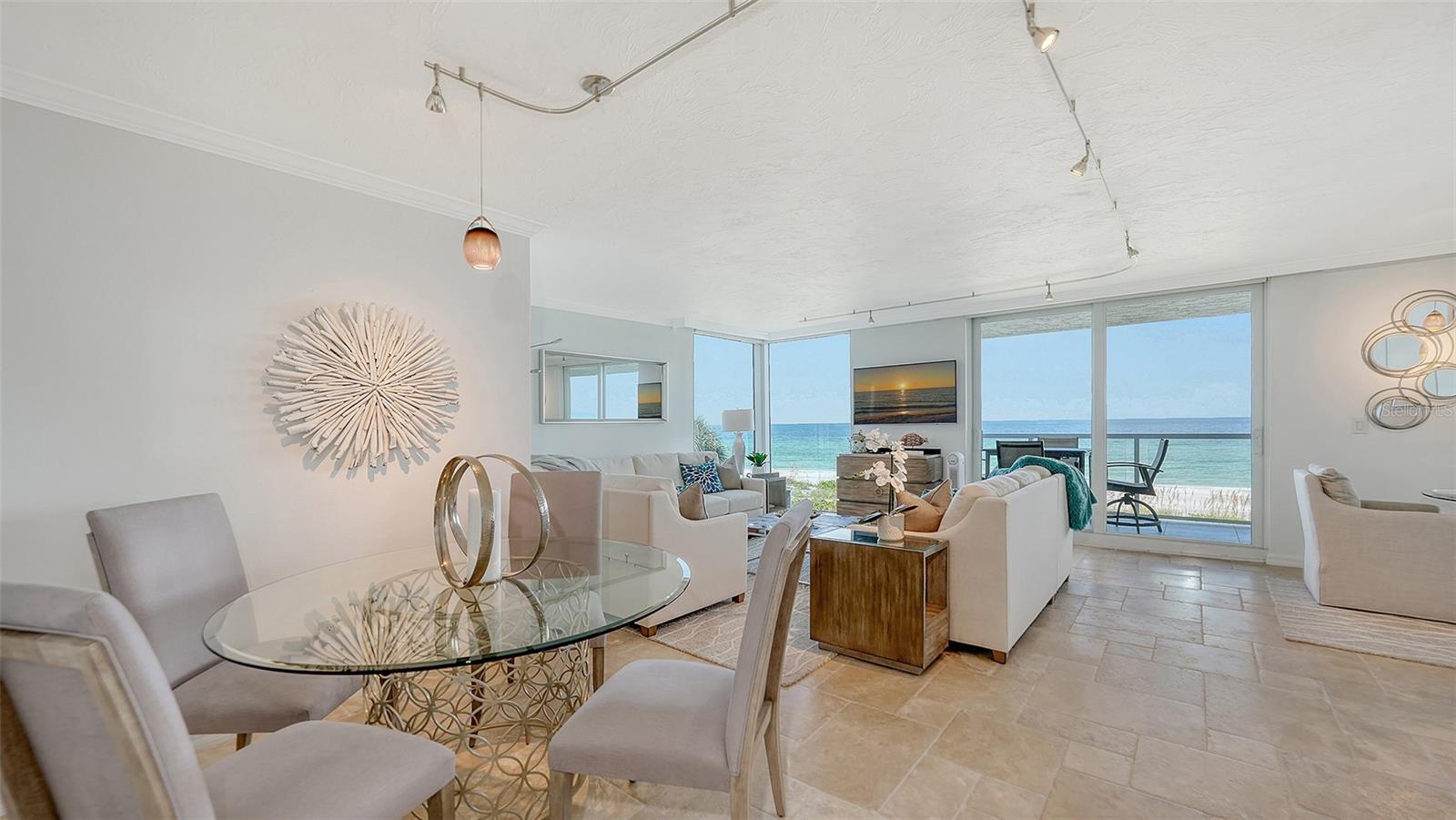 Eleve seu estilo de vida costeiro com esta residência requintada no Sea Gate Club em Longboat Key. Perfeitamente posicionado para oferecer vistas diretas das deslumbrantes ondas do Golfo, este retiro atualizado de quase 1.500 pés quadrados está pronto para morar e mobiliado. Entre na recém-renovada varanda à beira-mar, onde grades de vidro melhoram as vistas desobstruídas e brilhantes da praia que fluem perfeitamente de sala em sala, culminando em vistas deslumbrantes do pôr do sol que completam o seu dia. O layout de conceito aberto é adornado com superfícies elegantes, uma paleta neutra e fresca, nova iluminação, tratamentos de janela personalizados e sancas. Banheiros recentemente modernizados, concluídos em 2024, e piso de travertino contribuem para a sensação arejada e expansiva da casa. Janelas de impacto e controles deslizantes de vidro, instalados em 2019/20, emolduram lindamente essas vistas cativantes. A elegante cozinha de quartzo tem vista para a área de estar e jantar, bem como para o terraço de frente para o Golfo. Esta cozinha em estilo galera está equipada com eletrodomésticos de aço inoxidável, armazenamento de vinho embutido, armários elegantes com recortes de vidro, backsplash de azulejos exclusivo e uma aconchegante sala de jantar. Paredes de vidro do chão ao teto infundem luz natural em todos os cantos, realçando o ambiente ensolarado da casa. O quarto principal, situado no lado sul para ótima iluminação natural, oferece vista direta para a praia, closet embutido e banheiro privativo recém-atualizado. O quarto de hóspedes, localizado no lado norte para maior privacidade, é espaçoso o suficiente para incluir sua própria área de estar voltada para o Golfo, garantindo conforto aos visitantes. Localizada no terceiro andar, esta residência está convenientemente perto das impressionantes comodidades do Sea Gate Club. Esta comunidade privada fica no extremo sul de Longboat Key, em meio a uma vegetação exuberante e à beleza costeira, compreendendo apenas 90 residências e passou recentemente por extensas reformas. O estuque exterior do edifício foi renovado, novas janelas e grades de varanda em todo o edifício, entradas e corredores foram atualizados e uma nova sala social com cozinha de catering foi adicionada. O centro de fitness renovado apresenta equipamentos totalmente novos. Os residentes se beneficiam de gerenciamento no local, armazenamento de bicicletas com ar-condicionado e armazenamento de caiaques. Aproveite o acesso ao terraço do Gulfside com piscina aquecida e aproveite as quadras de tênis Har-Tru para um ou dois jogos. O acesso à praia por escritura leva a um trecho privado da costa de Longboat Key, completo com áreas de estar para seu relaxamento. Experimente o melhor da vida costeira no Sea Gate Club, onde cada detalhe é projetado para oferecer luxo, conveniência e vistas deslumbrantes.