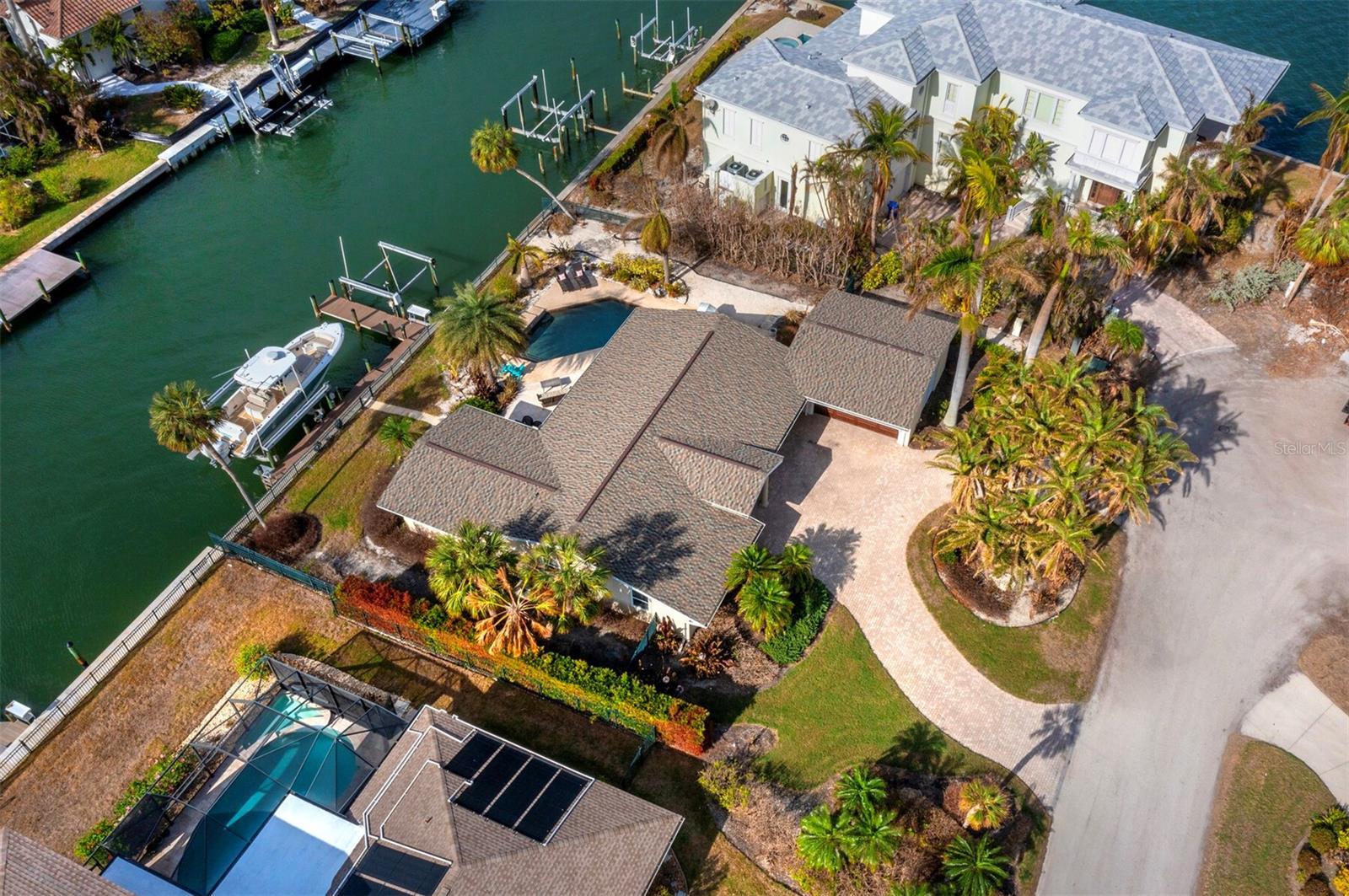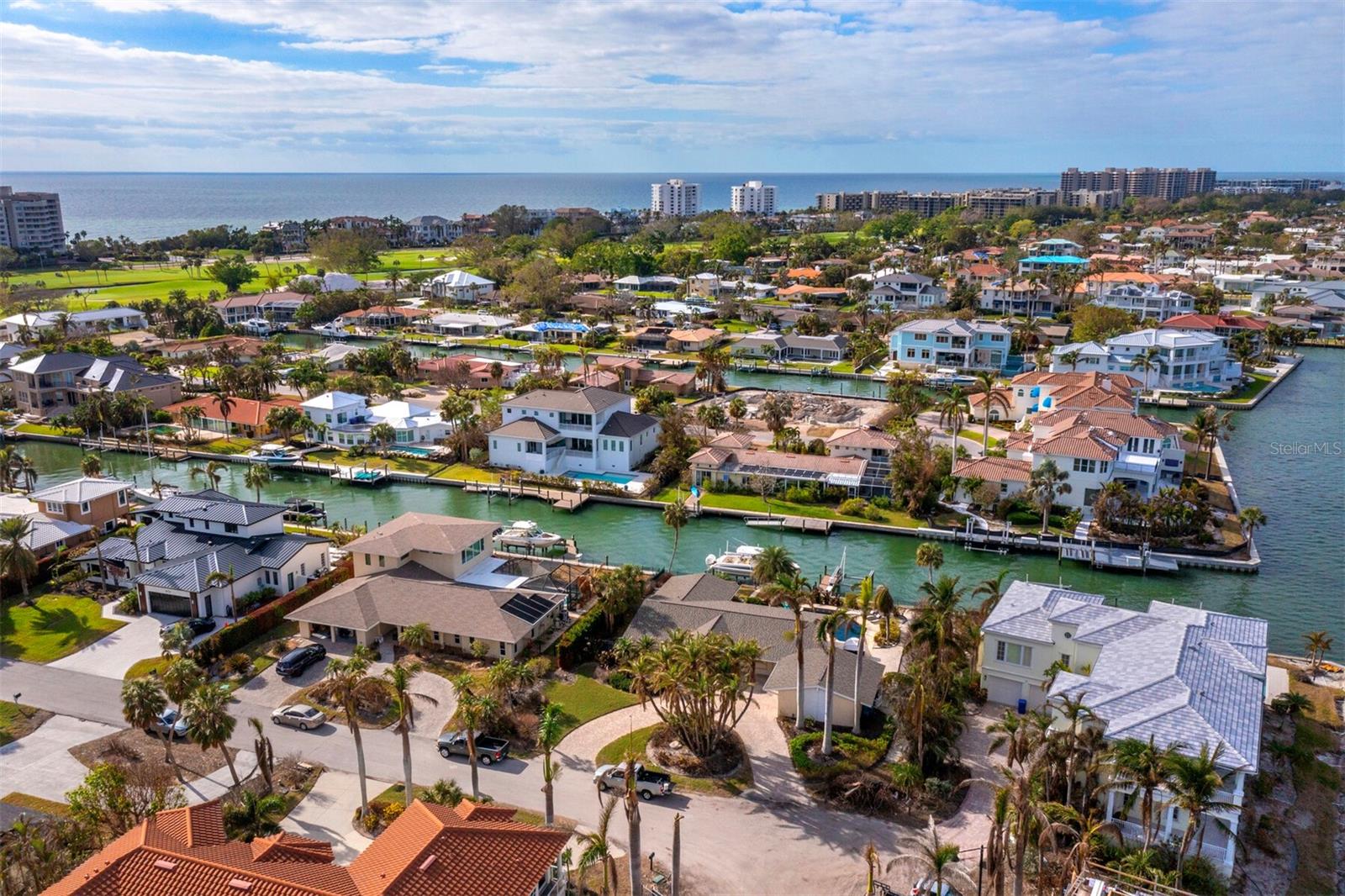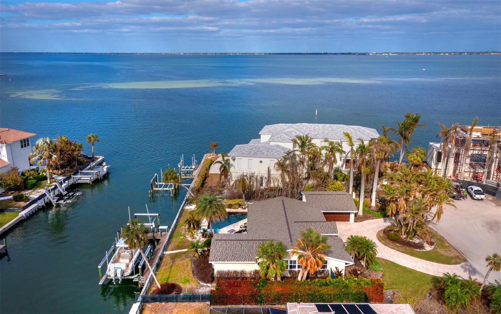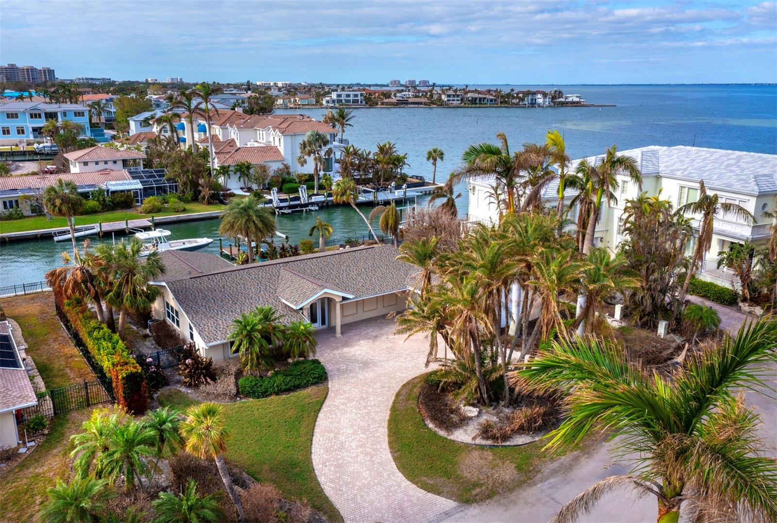 Localizada na procurada comunidade Country Club Shores, no extremo sul de Longboat Key, esta casa 3BR e 2BA à beira-mar oferece vistas deslumbrantes da baía, design contemporâneo e capacidades de navegação excepcionais. Posicionada a apenas um lote do final da península, a propriedade possui 103' de orla marítima direta, tornando-a ideal para os entusiastas da água. Country Club Shores é conhecido por seus canais pitorescos, casas à beira-mar e acesso à praia, tornando-o um destino privilegiado para quem gosta de passeios de barco, passeios na praia e um estilo de vida costeiro vibrante. Sua proximidade com St. Armands Circle, centro de Sarasota e praias de classe mundial do Golfo oferece acesso conveniente a restaurantes sofisticados, boutiques, atrações culturais e recreação ao ar livre. Uma pavimentação circular com paisagismo maduro leva à entrada, onde portas duplas de vidro com chumbo se abrem para uma espaçosa área de estar. A grande sala possui tetos abobadados embutidos com iluminação embutida e piso de travertino por toda parte. Uma parede de vidro preenche o espaço com luz natural e emoldura vistas serenas do mar, perfeitas para relaxar ou se divertir. A cozinha está bem equipada com bancadas em granito, eletrodomésticos em aço inoxidável, armários de madeira e balcão para café da manhã. A suíte principal oferece controles deslizantes para a área da piscina, um amplo closet e um banheiro reformado com pia flutuante, box amplo e banheira independente. Os quartos de hóspedes são elegantes e confortáveis. O espaço externo é um verdadeiro retiro à beira-mar, com piscina de água salgada, frente direta para a água e dois elevadores para barcos (24.000 libras e 10.000 libras). Com fácil acesso ao Golfo através do New Pass, a propriedade pode acomodar um barco de até 70 pés, tornando-a uma escolha incomparável para os entusiastas da navegação. Esta casa oferece o melhor do sul de Longboat Key, vivendo em uma comunidade onde os residentes desfrutam de um estilo de vida descontraído na ilha, cercado por comodidades excepcionais. Quer pretenda desfrutar da casa existente ou construir a residência dos seus sonhos à beira-mar, esta propriedade oferece uma oportunidade extraordinária numa localização ideal.