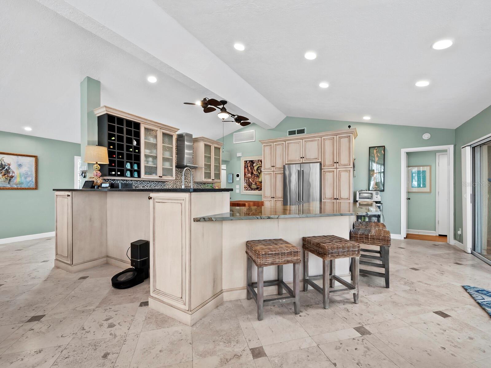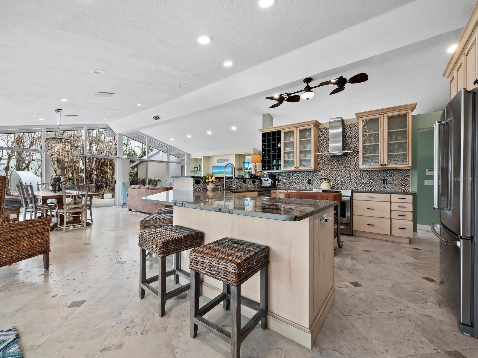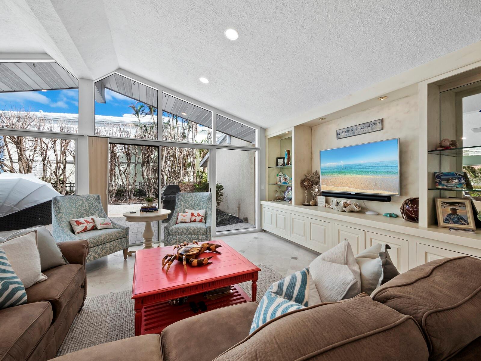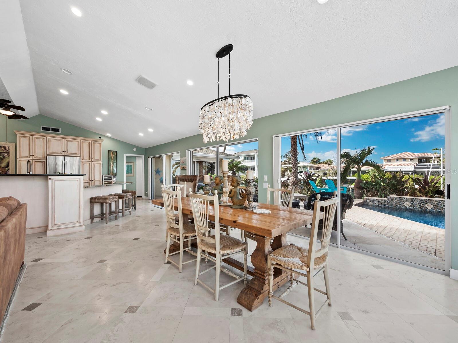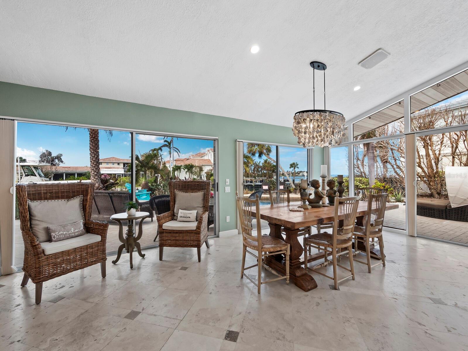 Localizada na procurada comunidade Country Club Shores, no extremo sul de Longboat Key, esta casa 3BR e 2BA à beira-mar oferece vistas deslumbrantes da baía, design contemporâneo e capacidades de navegação excepcionais. Posicionada a apenas um lote do final da península, a propriedade possui 103' de orla marítima direta, tornando-a ideal para os entusiastas da água. Country Club Shores é conhecido por seus canais pitorescos, casas à beira-mar e acesso à praia, tornando-o um destino privilegiado para quem gosta de passeios de barco, passeios na praia e um estilo de vida costeiro vibrante. Sua proximidade com St. Armands Circle, centro de Sarasota e praias de classe mundial do Golfo oferece acesso conveniente a restaurantes sofisticados, boutiques, atrações culturais e recreação ao ar livre. Uma pavimentação circular com paisagismo maduro leva à entrada, onde portas duplas de vidro com chumbo se abrem para uma espaçosa área de estar. A grande sala possui tetos abobadados embutidos com iluminação embutida e piso de travertino por toda parte. Uma parede de vidro preenche o espaço com luz natural e emoldura vistas serenas do mar, perfeitas para relaxar ou se divertir. A cozinha está bem equipada com bancadas em granito, eletrodomésticos em aço inoxidável, armários de madeira e balcão para café da manhã. A suíte principal oferece controles deslizantes para a área da piscina, um amplo closet e um banheiro reformado com pia flutuante, box amplo e banheira independente. Os quartos de hóspedes são elegantes e confortáveis. O espaço externo é um verdadeiro retiro à beira-mar, com piscina de água salgada, frente direta para a água e dois elevadores para barcos (24.000 libras e 10.000 libras). Com fácil acesso ao Golfo através do New Pass, a propriedade pode acomodar um barco de até 70 pés, tornando-a uma escolha incomparável para os entusiastas da navegação. Esta casa oferece o melhor do sul de Longboat Key, vivendo em uma comunidade onde os residentes desfrutam de um estilo de vida descontraído na ilha, cercado por comodidades excepcionais. Quer pretenda desfrutar da casa existente ou construir a residência dos seus sonhos à beira-mar, esta propriedade oferece uma oportunidade extraordinária numa localização ideal.