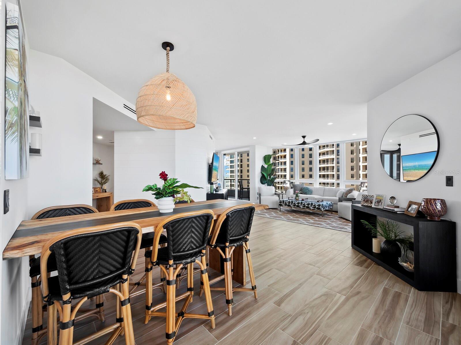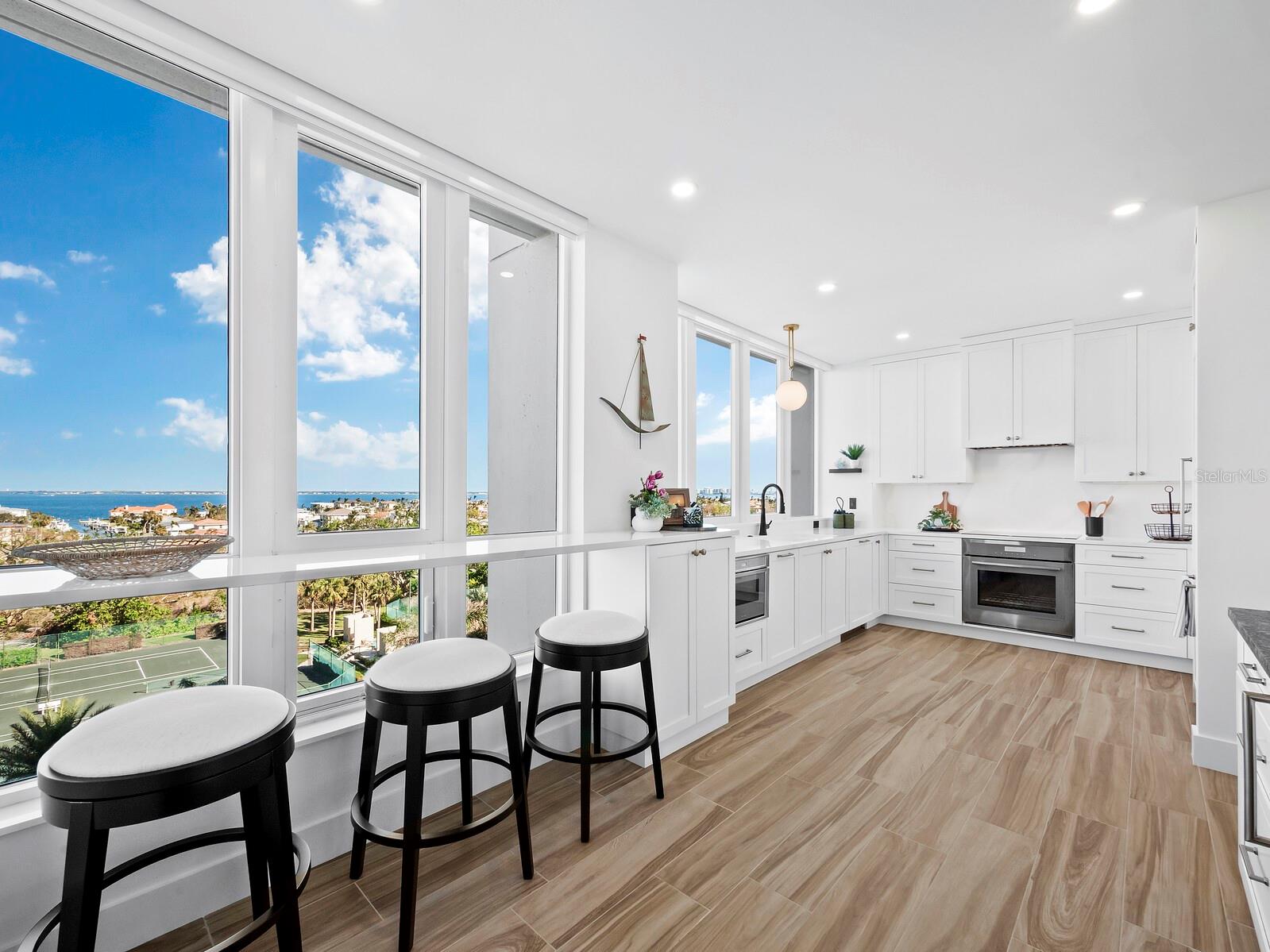 Experimente o que há de melhor em Longboat Key vivendo no Promenade com este condomínio lindamente reformado no 4º andar, oferecendo vistas espetaculares do Golfo e da Baía. Amplamente renovada e MOBILIADA CHAVE NA MÃO... esta residência de 2.100 pés quadrados agora combina elegância moderna com vistas deslumbrantes de todos os quartos. Janelas de vidro do chão ao teto preenchem o espaço com luz natural e mostram o ambiente tropical sereno. O interior cuidadosamente redesenhado apresenta três quartos, um dos quais é atualmente usado como sala de família, mas pode facilmente ser convertido novamente em quarto. Cada quarto tem um banheiro privativo atualizado, incluindo uma luxuosa suíte principal com acesso ao terraço, armários personalizados e um banheiro inspirado em spa com pia dupla e box amplo. A cozinha reformada se destaca, com armários elegantes, bancadas de pedra, uma parede de vidro emoldurando a vista panorâmica do mar e eletrodomésticos Thermador de última geração. Duas varandas oferecem espaço ao ar livre para apreciar a paisagem pitoresca. A comunidade Promenade oferece comodidades em estilo resort, incluindo piscina aquecida e spa, 394 pés de praia privativa, quadras de tênis Har-Tru, clube de saúde, sauna, segurança 24 horas, serviço completo de concierge e manutenção interna. Além disso, os residentes têm a opção de ingressar no prestigiado Longboat Key Club, localizado nas proximidades, que oferece golfe, tênis, restaurantes, serviços de spa e instalações de marina de classe mundial. Convenientemente localizada a apenas 3,2 km de St. Armands Circle e a 8 km do centro de Sarasota, esta propriedade combina luxo, conforto e acesso ao melhor da vida na ilha e na cidade.
