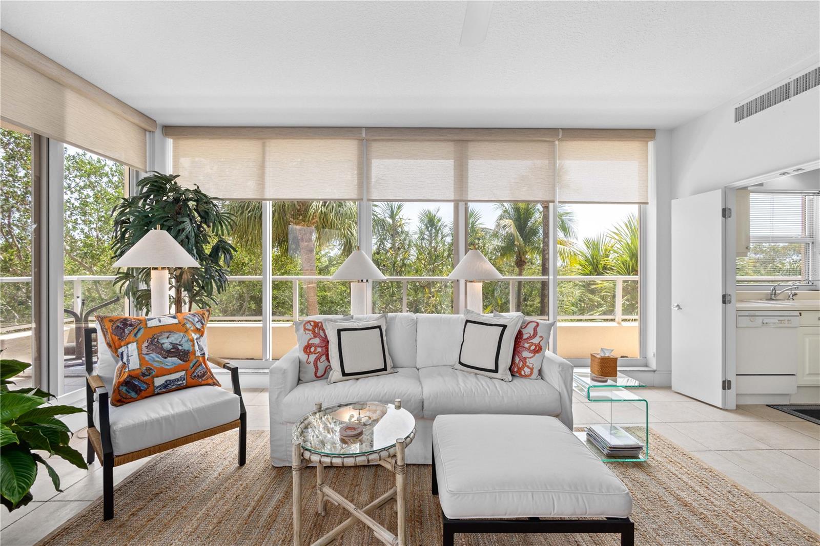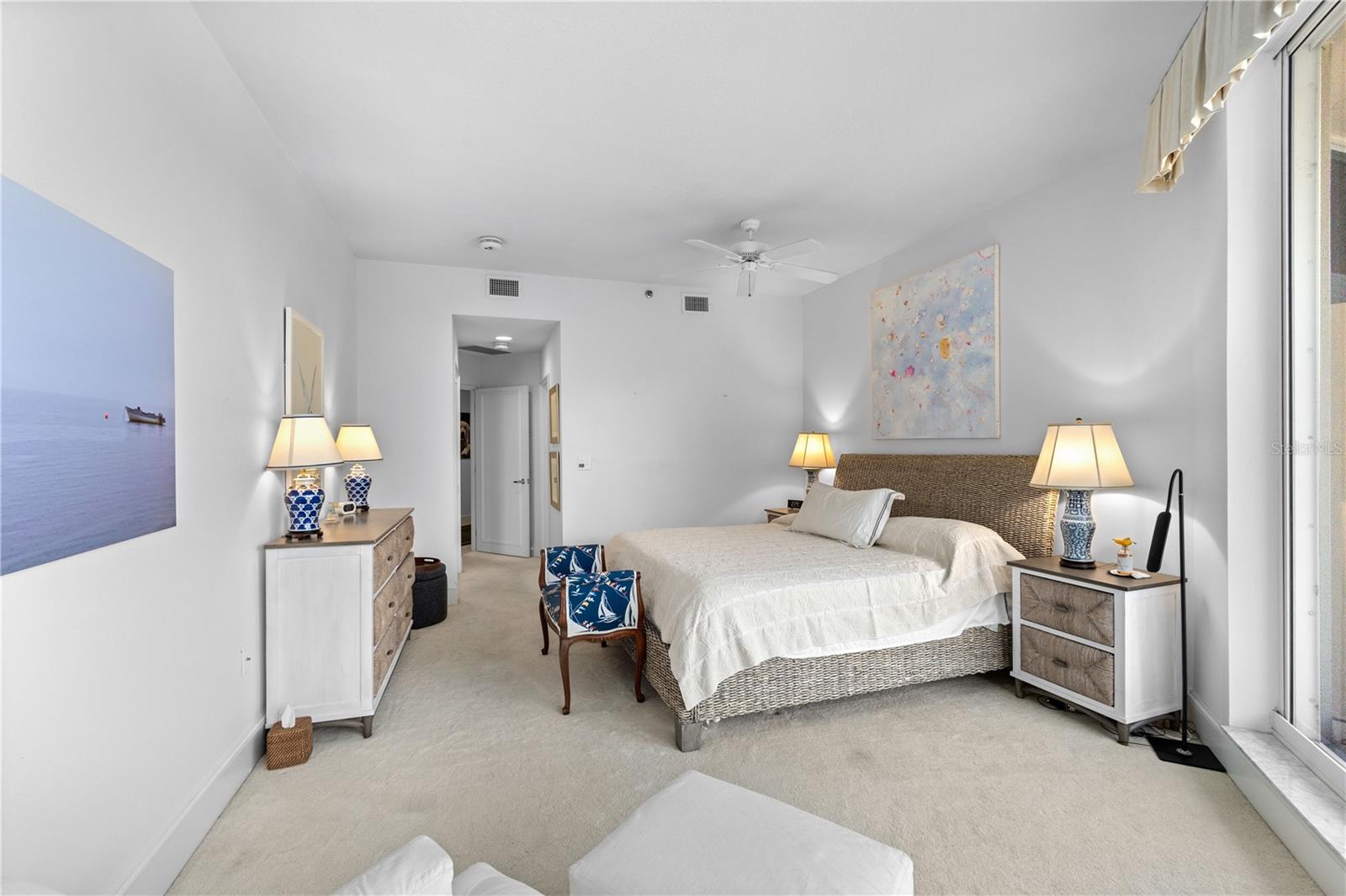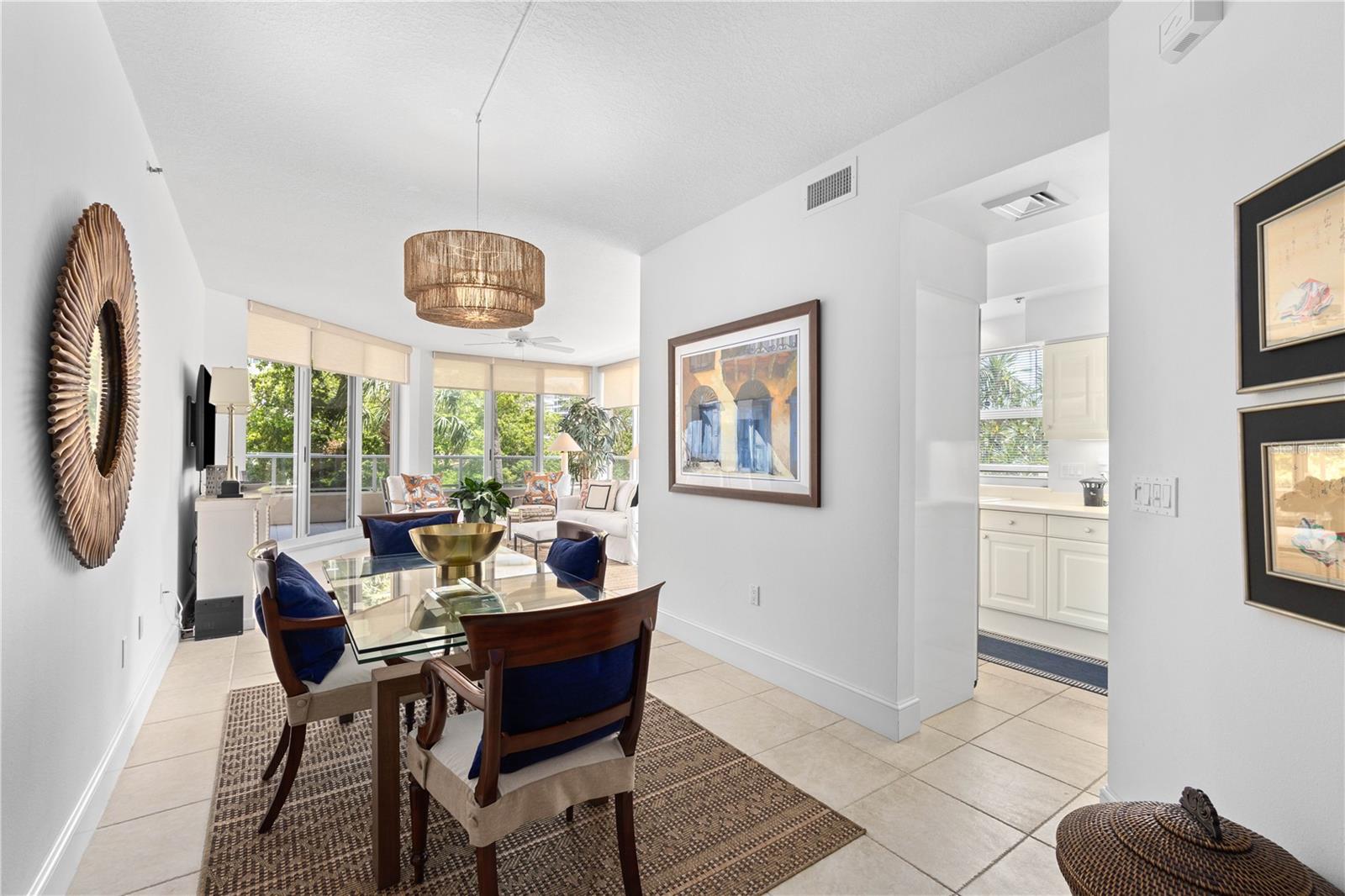 Bem-vindo a esta deslumbrante planta dividida de 2 quartos na comunidade altamente desejável de Grand Bay. Situado perfeitamente para vistas do nascer do sol sobre a Baía de Sarasota, este condomínio que aceita animais de estimação oferece um cenário pitoresco para sua rotina diária. A grande sala, a suíte master e o terraço oferecem belas vistas da baía, criando um ambiente tranquilo para desfrutar do seu café da manhã ou de noites relaxantes. Receber os hóspedes é muito fácil com o forno duplo embutido e opções para refeições ao ar livre no espaçoso terraço ou na grande sala com paredes de janelas que mostram a paisagem tropical e vistas memoráveis. A suíte principal é um refúgio em si, com carpete exuberante, banheiro com piso de mármore, banheira de jardim, closet e vista para a baía que o farão dormir. Grand Bay está localizado atrás dos portões do Longboat Key Club e oferece segurança adicional na entrada do condomínio. As comodidades incluem quadras de tênis Har-Tru, academia com vista para a baía, 2 piscinas aquecidas e acesso privativo à praia do Bay Isles Beach Club. Esta é a vida em estilo resort no seu melhor, com a conveniência de estar a poucos minutos de St. Armands e do centro de Sarasota.