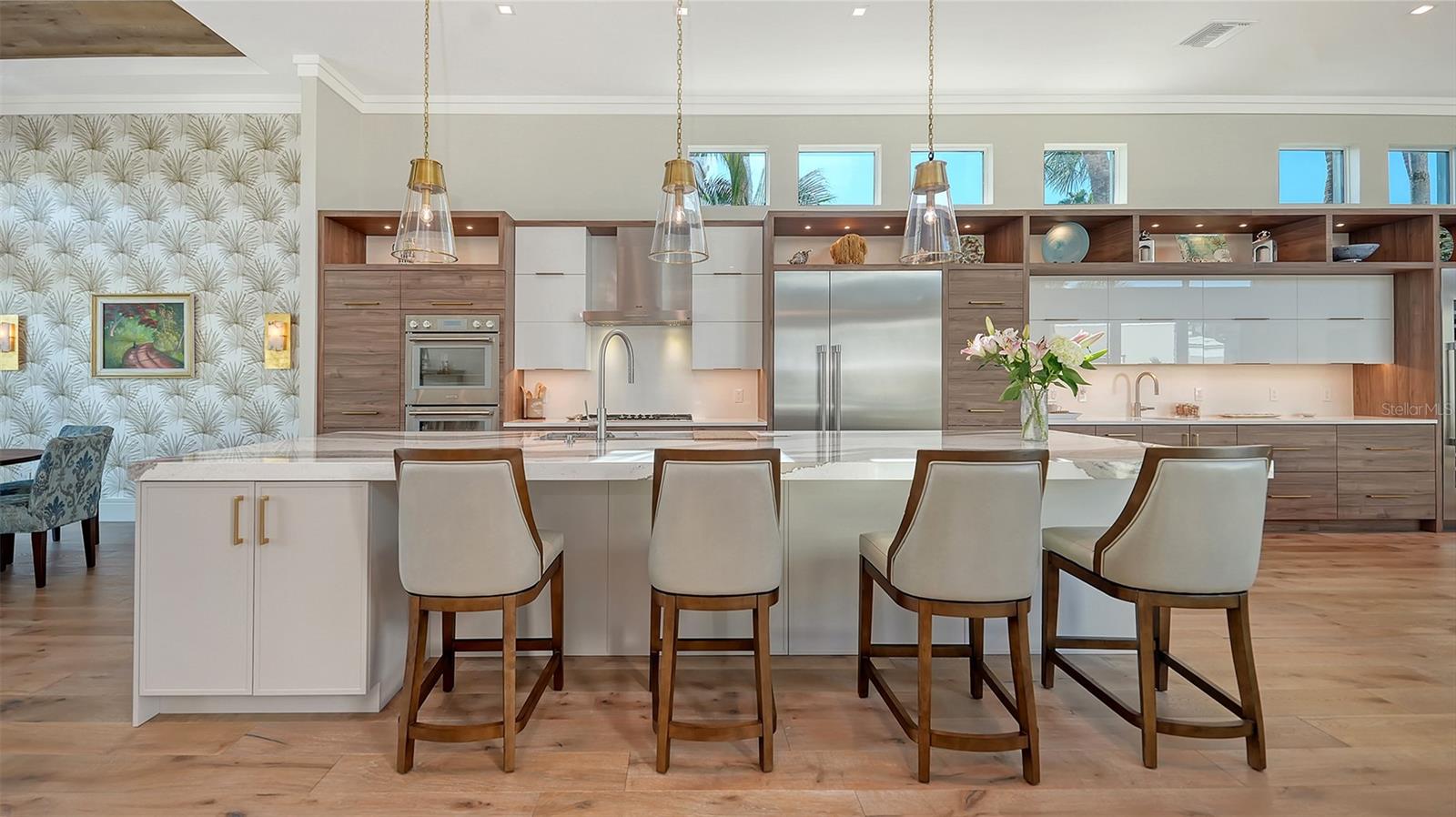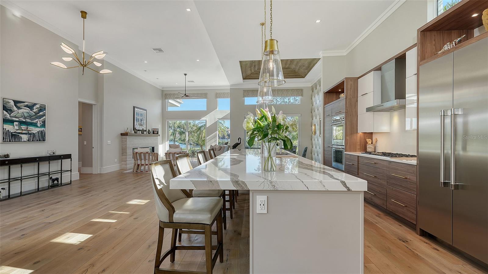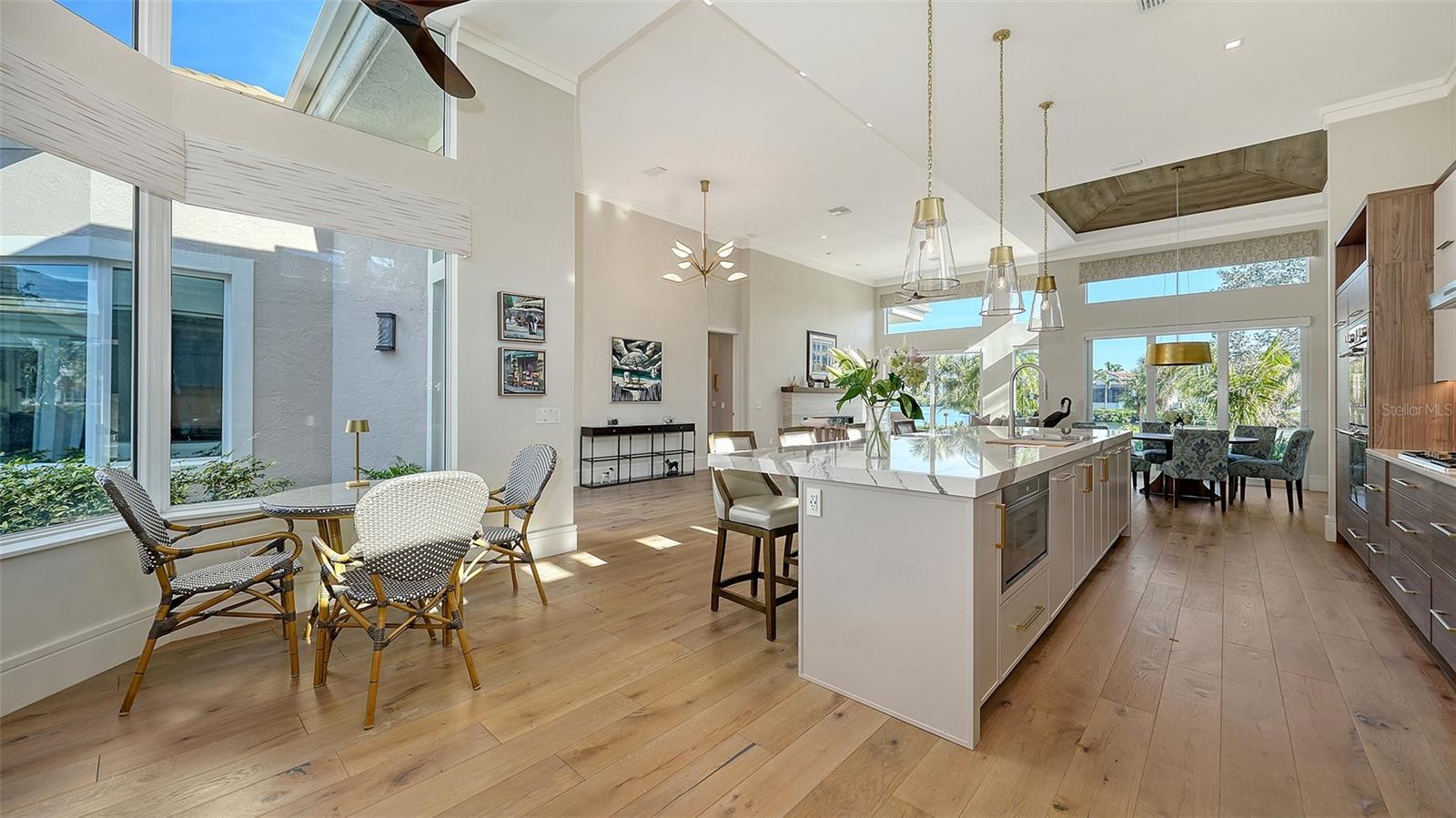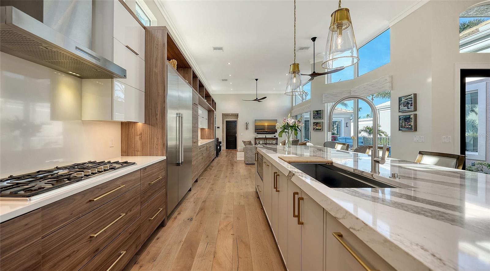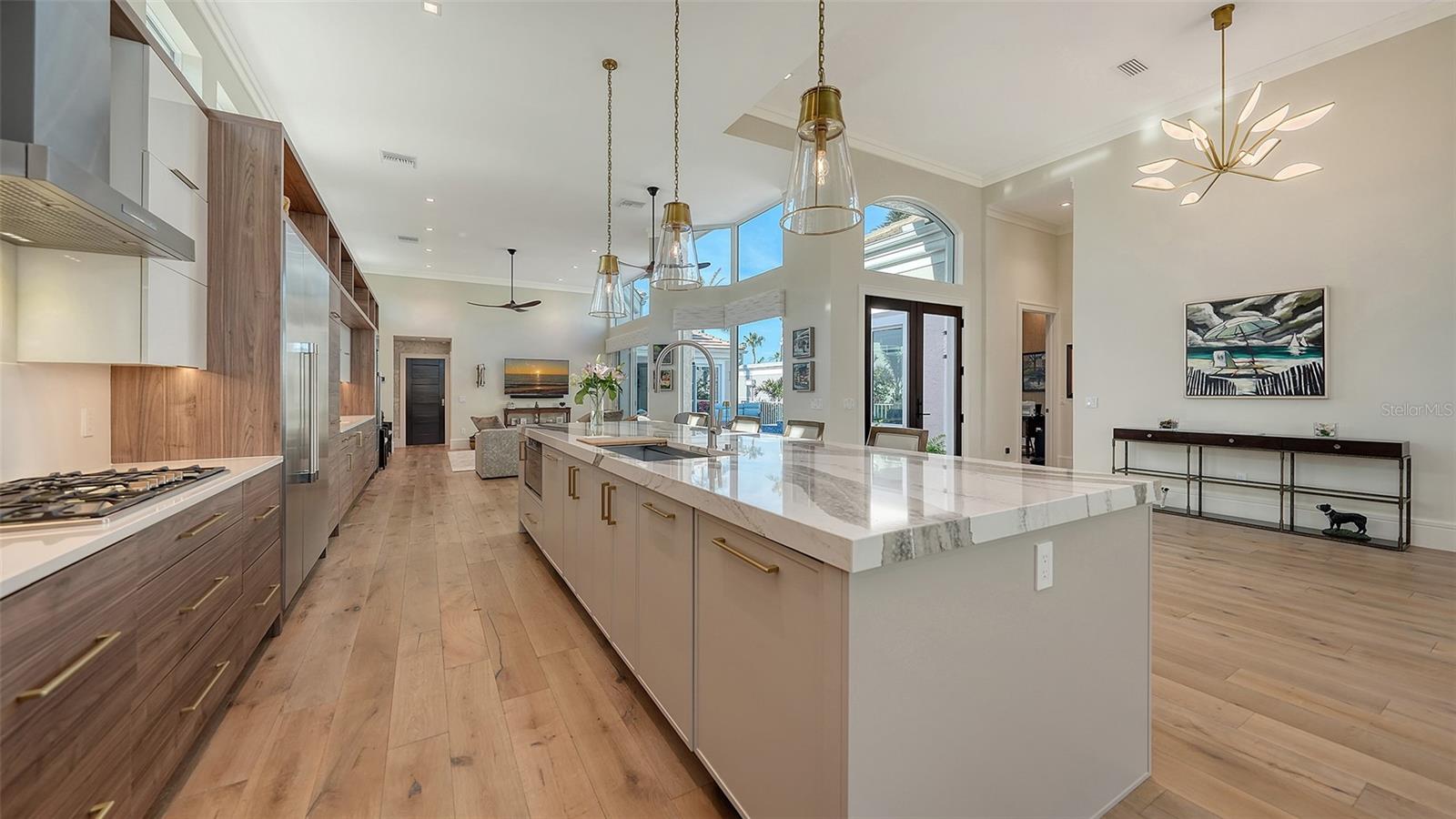 Não deve ser desperdiçada - este mais de 3.400 sf, em casa de Queens Harbor, é um passo para a vida arejada e inspirada na natureza. Situado em um beco sem saída cênico na seção sem manutenção das prestigiadas Ilhas da Baía, luxo silencioso e um estilo de vida sereno que ocupa o centro do palco. Após a entrada, você é abraçado pelo charme da piscina aquecida, a casita privativa e os jardins vibrantes cheios de textura e cor. Entre na casa principal por meio de portas duplas personalizadas de mogno e vidro e seja impressionado com a extensa reforma - levada aos pregos - transformando o espaço em quatro vinhetas vivas abertas. Portas de vidro expansivas abertas a um pátio, jardins lindamente paisagísticos e um grande lago orgânico, oferecendo gloriosos nascer e pôr do sol. Navegue em ambientes fechados com tetos de 14 pés e ampla prancha de madeira de engenharia macio por toda parte. Uma sala de estar espaçosa apresenta uma lareira elétrica de travertino com manto de nogueira, criando um ambiente aconchegante e luxuoso. A área de jantar contígua é lindamente definida pelo teto de bandeja de ripas de madeira coordenado com o piso, destacado por um elegante lustre contemporâneo para uma atmosfera íntima dentro do espaço aberto. Enquanto claramente definido, as áreas formais se misturam perfeitamente com a espetacular cozinha aberta, definida suavemente pela ilha de 14 pés. O sonho de um chef com armários de madeira de dois tons arquitetônicos de Sarasota e aparelhos termadores de primeira linha; Fornos de parede dupla, fogão a gás de 5 queimadores, geladeira, gaveta de microondas e 2 lava-louças estrategicamente colocadas na ilha com uma pia de aço inoxidável de 48 ”central. A sala da família adjacente é aberta e convidativa, oferecendo armários prolongados, pia de bar, grande refrigerador de vinho e portas de vidro deslizantes para o pátio da piscina. O foco dos vendedores em detalhes de ponta e acabamentos de qualidade é aparente. Consistência de armários, portas de mogno, sotaques de usina de noz, ventiladores de teto contemporâneo e superfícies embutidas por toda parte. Um verdadeiro retiro, a suíte primária de vista para a água oferece um grande armário com embutidos personalizados, além de um armário duplo embutido. O banho privativo apresenta vaidades duplas, chuveiro de vidro grande sem moldura com chuveiro de chuva, acabamentos travertinos, arandelas elegantes e uma banheira de imersão independente. O piso principal também inclui um escritório/covil privado com teto dividido e uma janela de aquário com vista para a piscina espumante, juntamente com uma sala de bônus de transição, banho cheia e cama Murphy, levando a uma espaçosa suíte de convidado de segundo andar, com embutidos personalizados e banho completo. Todos os detalhes foram cuidadosamente considerados, desde o telhado recém-substituído (2021) até as janelas e controles deslizantes protegidos por UV de alto impacto. Desfrute de paz de espírito com unidades A/C de todos os reproduzidos (2022-2024), aquecedor de água, encanamento, sistema de filtração de água e soldados automáticos. A piscina com cachoeira foi ressurgida, junto com uma nova bomba e aquecedor. A garagem de dois carros possui armazenamento embutido e piso epóxi. Este retiro tranquilo com Casita fora do pátio é ideal para a privacidade dos hóspedes. O cenário perfeito, desfrute de vistas privadas de água e campo de golfe com vistas abrangentes do 4º camiseta do campo de golfe azul. Relaxe no seu oásis ao ar livre enquanto assiste golfistas discretos, vida selvagem e muito mais. A propriedade inclui a associação ao Bay Isles Beach Club, para acesso às areias intocadas do Golfo do México. Localizada no enclave sereno do porto de Queens, atrás dos portões do Longboat Key Club, esta casa é o epítome da luxuosa ilha de vida.