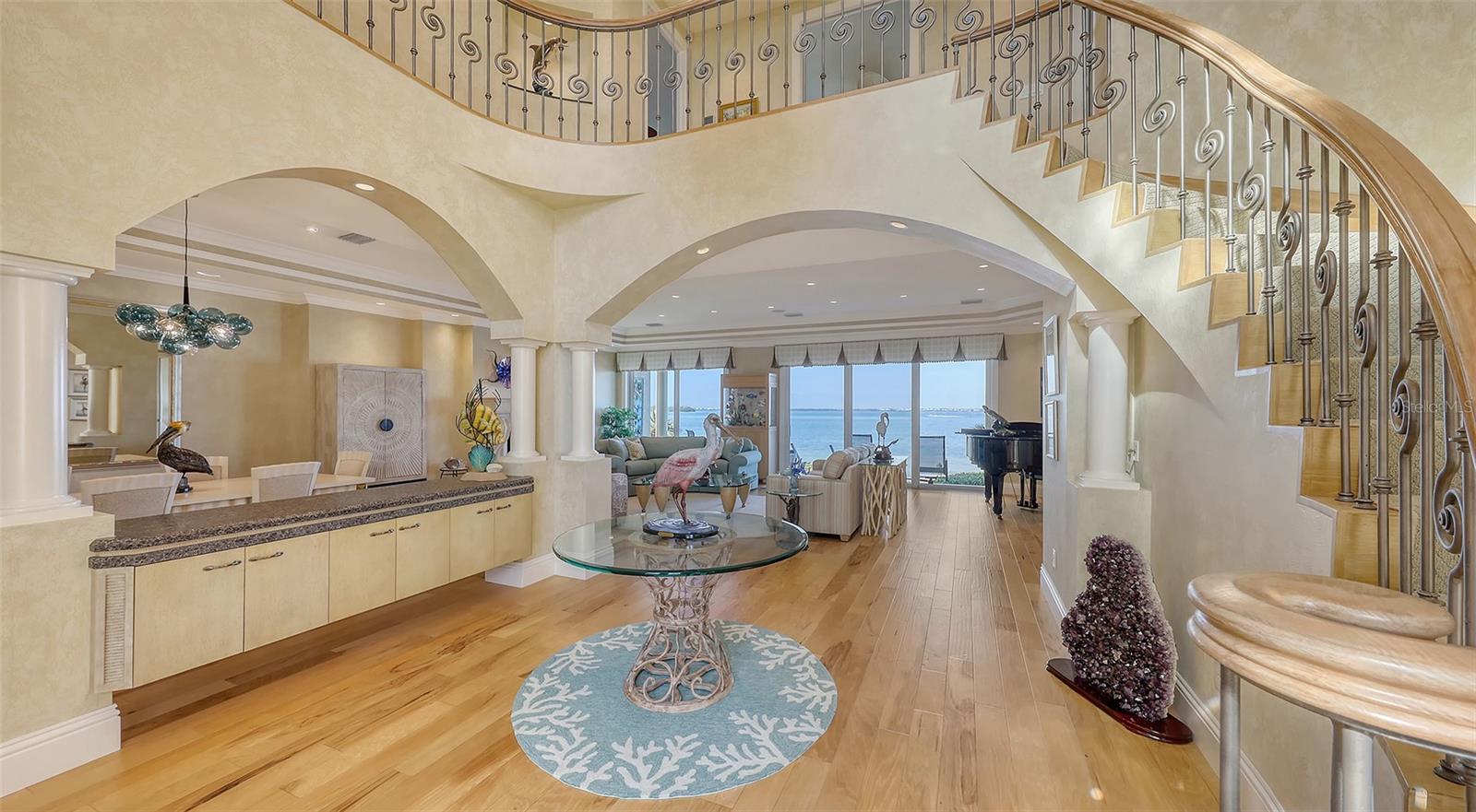 Vistas espetaculares desobstruídas da Baía de Sarasota e da via hidrográfica intercoastal! Esta casa de 4 quartos, 4 banheiros e 4233 pés quadrados fica no bairro de Queens Harbor, que há portões de Bay Isles. Você entra na casa através de sua peça central de entrada exclusiva: o pátio com jardim, piscina e spa. Quando você passa pelas lindas portas costeiras do litoral até o hall de entrada de dois andares com uma grande escada no andar de cima, seus olhos capturam as maravilhosas vistas e desobstruídas da baía e intercoastal. Você chegou ao seu santuário na fabulosa Key Longboat. O piso plano aberto tem dois mestres, um para cima e outro para baixo, cada um com banhos fabulosos e armários espaçosos com armários embutidos. O mestre no andar de cima ainda tem sua própria lavadora e secadora! Os recursos arquitetônicos incluem tetos de camada de cúpula, moldagem por coroa, colunas decorativas, janelas do chão ao teto e luz abundante. A cozinha de um chef com uma grande sala familiar e um escritório particular de Hemmingway com vista para o pátio fornecem retoques finais para o andar de baixo. Do lado de fora está o deck traseiro coberto, com um pátio de jantar levando à doca grande. No andar de cima é um verdadeiro refúgio de quartos espaçosos, uma sala de estar mestre com mesa e armários embutidos e dois quartos de hóspedes com um espaçoso Jack e Jill Bath com duas pias e uma banheira e um chuveiro separados. Esta casa bem conservada atualizou os aparelhos, um telhado de 5 anos, piso de madeira, proteção completa do vento de furacões de vidro de impacto e um novo gerador de generac. A atração externa da casa está completa com o santuário da vida selvagem que muda a maré na sua porta dos fundos da baía, onde os golfinhos cruzam a baía, os pelicanos mergulham em bomba para peixes e águias e caça aos Osprey. O Queens Harbor é uma comunidade de luxo planejada e semi-manutenção de 102 casas unifamiliares. A Associação fornece serviços de paisagismo, incluindo poços e irrigação, mantém a piscina comunitária aquecida e é responsável por pintar o exterior de cada casa a cada cinco anos. O proprietário inclui a associação ao Bay Isles Beach Club, que oferece instalações de praia privadas, incluindo banheiros com chuveiros, churrasqueiras, vôlei, pavilhão coberto e várias outras áreas de alimentação cobertas e, é claro, as belas areias da espetacular praia do Gulf de Longboat Key! A Bay Isles oferece fácil acesso ao Publix e CVS, além de uma curta distância de carro do famoso St. Armands Circle. As associações estão disponíveis no Longboat Key Club, com acesso a 27 buracos de golfe intocado, 20 quadras de tênis Har-Tru no renomado Jardins de Tênis, 8 quadras de pickleball, uma fantástica marina privada com acesso direto ao intercostal e 2 restaurantes.