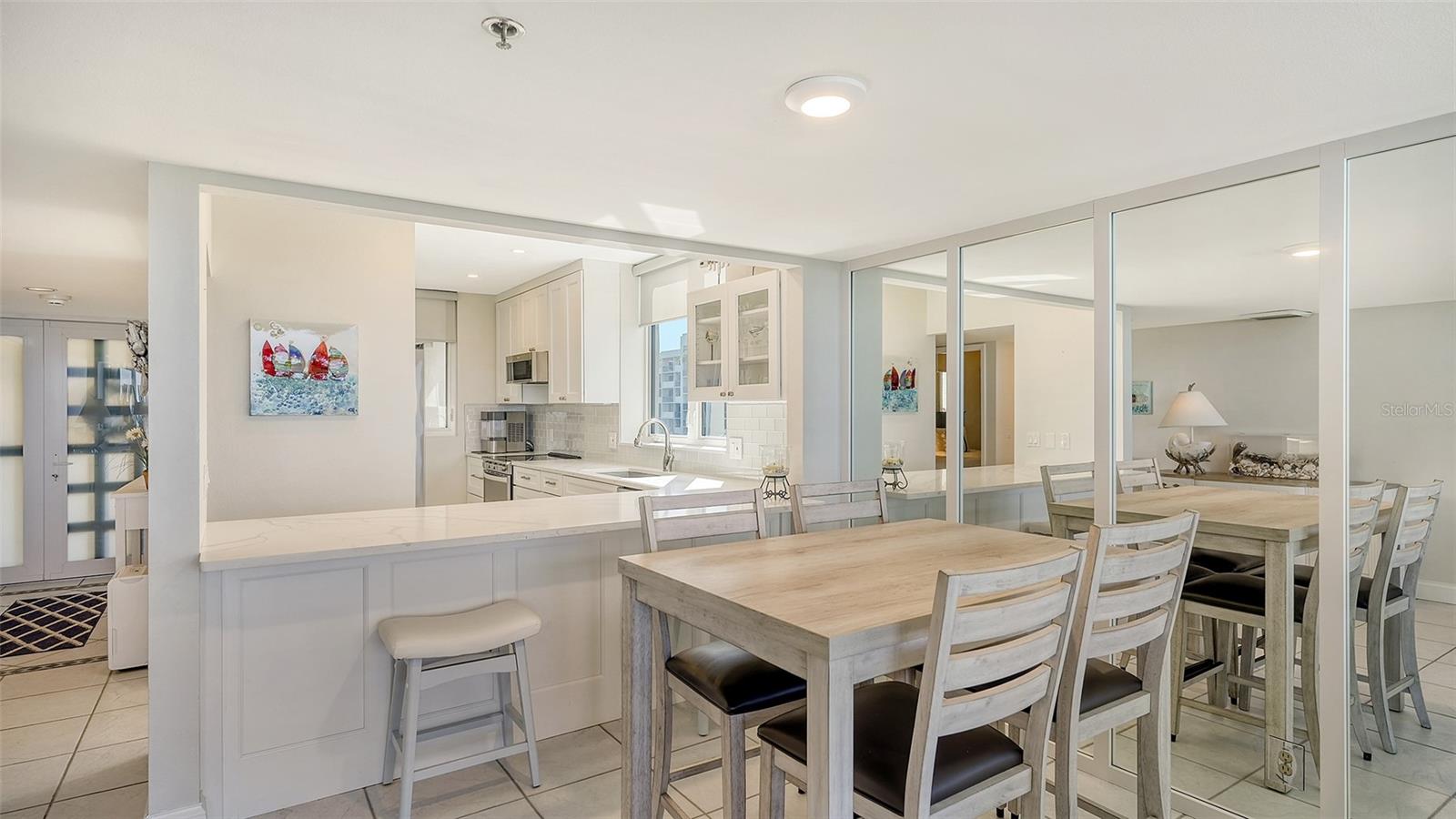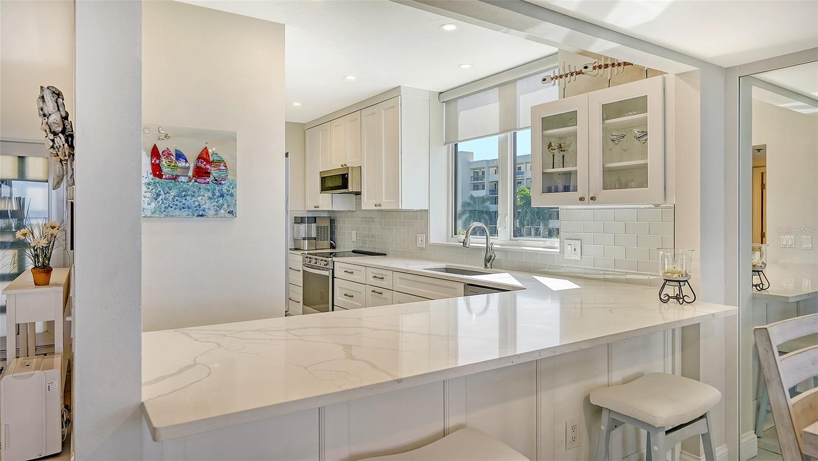A elegância encontra conforto nesta unidade de canto raramente disponível, na frente do Golfo, no extremo sul de Longboat Key. Desde o momento em que você passa pela porta da frente, você será cativado por vistas direta e direta do Golfo, através de janelas do chão ao teto, fornecendo um estilo de vida inútil e idílico sem paralelo. Esta unidade de canto lindamente renovada é cuidadosamente projetada para conforto e estilo e possui uma varanda envolvente perfeita para entretenimento e imersão em vistas deslumbrantes do Golfo do México com a família e os amigos. No interior, todos os detalhes desta unidade recentemente renovada foram cuidadosamente considerados, incluindo uma cozinha que foi completamente atualizada com novos armários brancos, bancadas de quartzo e backsplash de ladrilhos de vidro com todos os novos aparelhos e lavadora e secadora. O quarto principal possui janelas do chão ao teto que oferecem uma vista à beira-mar, uma porta que leva à varanda e um luxuoso banho primário que apresenta pias duplas e novos armários e iluminação. Recursos adicionais incluem janelas, controles deslizantes e portas resistentes ao impacto do furacão, iluminação embutida na sala de estar e na área de jantar e persianas de janelas de Hunter Douglas com controle remoto que adicionam um toque de elegância. A unidade é fornecida em torneira. Esta unidade possui um principal espaço de estacionamento convenientemente perto da porta do saguão. Beachplace’s, well-maintained gorgeous grounds with resort-style amenities include 24-hour manned security gate, private beach access with chairs and umbrellas, Wi-Fi, a heated Junior Olympic pool and spa, covered infant wading pool, multiple grilling areas by pool and large covered outdoor spaces, two lighted Har-Tru tennis courts with two pickleball courts, an EV charging location, multiple car wash stations, and a clubhouse with social Salas, atividades sociais organizadas, dois centros de fitness de última geração, saunas e uma biblioteca.