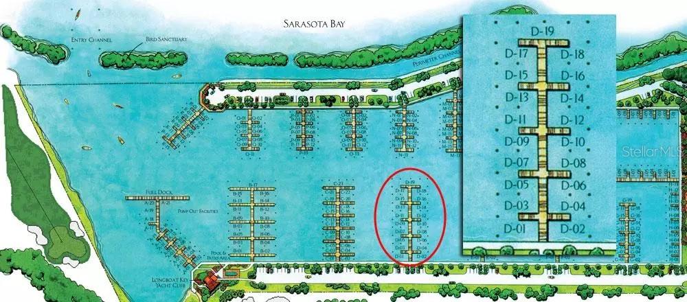 Um único deslize de barco disponível para venda com estacas fortificadas com revestimento de plástico e um píer de dedos prolongado, águas profundas, acesso protegido, mas fácil, à Baía de Sarasota e ao Golfo em Longboat Key Moorings Marina. Esta é uma doca de 154 pés. T de D-Dock possui 2 pontos de serviço 50s/100 de serviço. D-19 é de 74,5 pés e D-20 é de 79,5 pés, porque esse deslizamento é atendido como dois escorregadores, dois barcos são permitidos. Acesso direto à Baía de Sarasota e à ICW com vistas excepcionais da Baía de Sarasota. Essa apenas marina de águas profundas, na costa oeste da Flórida, é tanto um resort de luxo quanto qualquer outro bairro da ilha, graças à propriedade individual, Marina Village, que inclui Bath House, lavanderia, restaurante, compras - perto de Publix, CVs e outras lojas especializadas - atividades recreativas e sociais, serviços de manutenção e conciplica. Acesso elétrico, de água e sem fio a cada deslizamento. Ônibus de transporte grátis para o círculo de St. Armand. A marina tem tudo o que um velejador poderia precisar. A associação no Longboat Key Club está disponível por uma taxa adicional. Este deslizamento acomodará um ou dois navios totalizam 149 pés. O feixe utilizável é de 25 pés.
