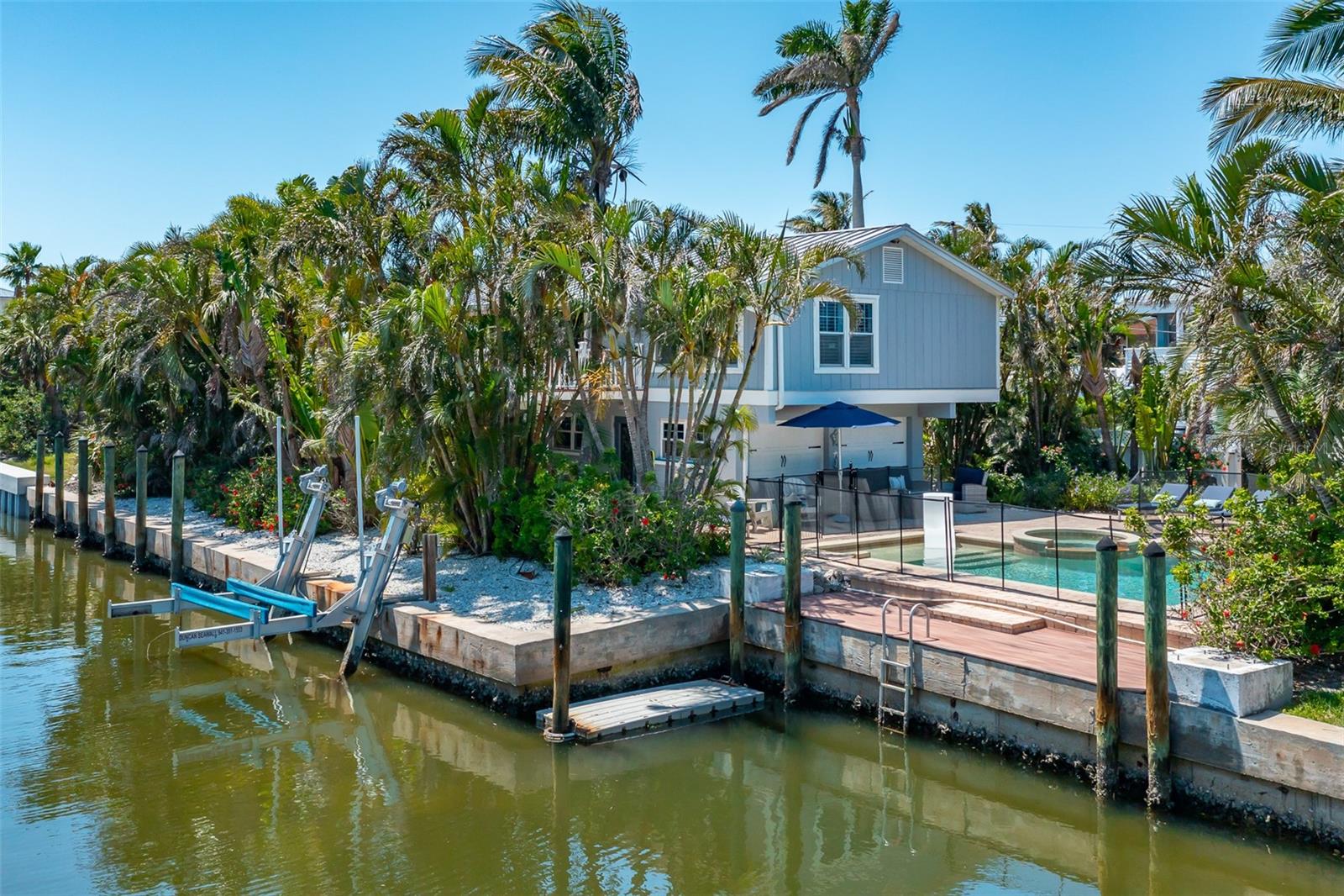 Descubra seu próprio paraíso tropical no sereno North End of Longboat Key e tenha acesso à praia, uma jóia rara que combina privacidade, luxo e charme costeiro. Esta casa impressionante e totalmente renovada possui um plano de piso dividido aberto, bem projetado, perfeito para uma vida e divertido relaxadas. A cozinha personalizada é o sonho de um chef, com bancadas sólidas, armários personalizados e aparelhos de aço inoxidável premium. Um expansivo bar da ilha cria um espaço convidativo para refeições casuais e reuniões sociais. Pisos de madeira lindos e projetados fluem por todas as principais áreas de estar, acrescentando calor e elegância. A espaçosa suíte master oferece um retiro tranquilo, completo com um banho mestre recém-remodelado, semelhante ao spa, ideal para relaxar após um dia gasto na água. Um quarto de hóspedes bem equipado com seu próprio banho particular garante conforto e privacidade para os visitantes. Saia do seu oásis privado, onde uma varanda traseira que tem vista para as vistas serenas do canal e a piscina aquecida. O expansivo deck de pavimentador oferece amplo espaço para relaxar, jantar e absorver o sol da Flórida. Os entusiastas do passeio de barco ficarão encantados com o paredão de 120 pés, o elevador de barco de 7.000 libras e os recursos convenientes de acoplamento e amarração, fornecendo acesso sem esforço à água aberta. Esta propriedade foi projetada com estilo e segurança em mente. O telhado de metal de costura durável e o impacto resistente ao furacão janelas e portas oferecem tranquilidade durante a temporada de tempestades. O nível inferior possui uma suíte versátil de hóspedes ou sogros completa com um banheiro e cozinha atualizados, ideais para hospedar a família ou acomodar estadias prolongadas. O paisagismo exuberante e meticulosamente mantido mostra uma variedade de palmeiras e árvores frutíferas, criando uma verdadeira fuga tropical. A garagem de dois carros, terminada com um revestimento epóxi elegante e durável, combina estilo com funcionalidade.