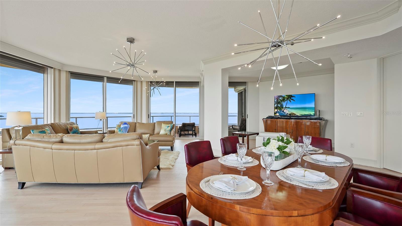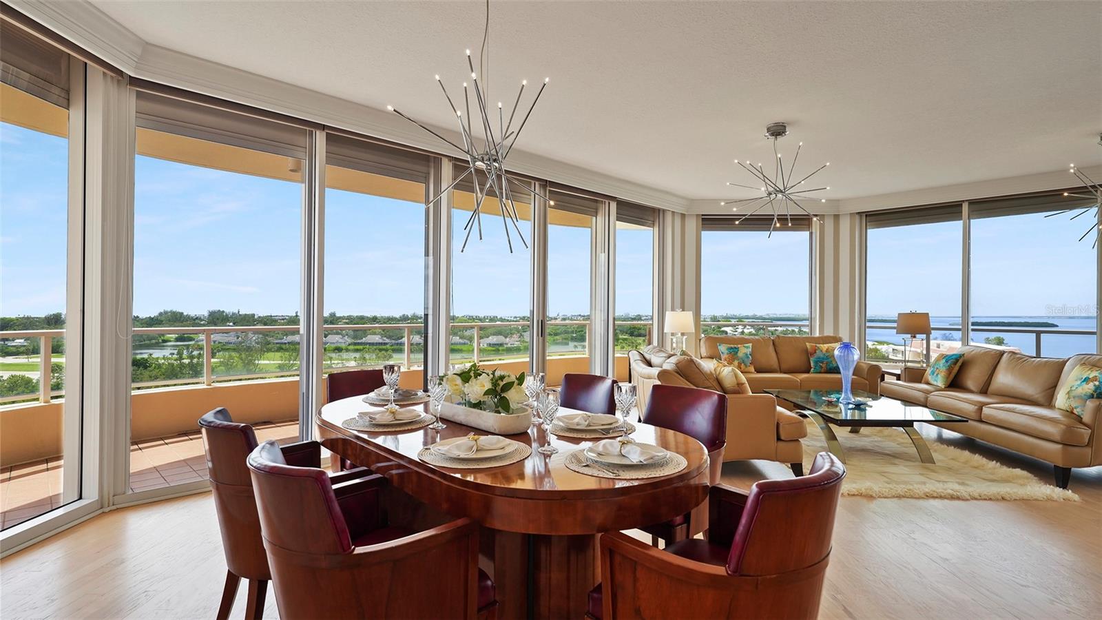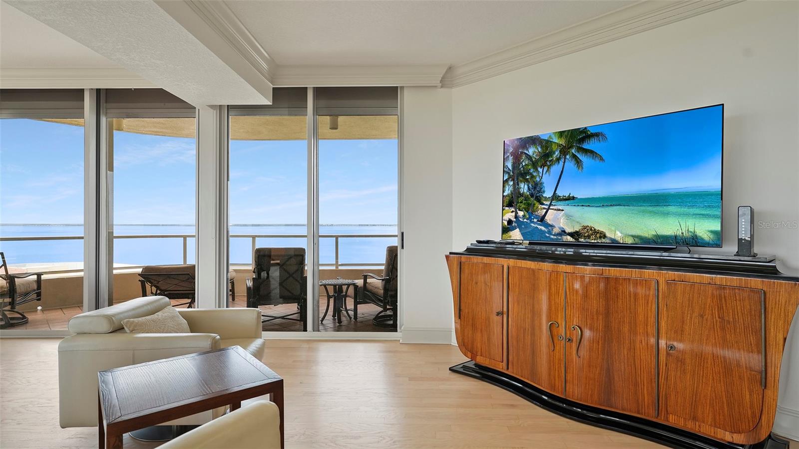 A alta Sarasota Bay e o Golfo do México vistas de todos os cômodos desta residência do 8º andar em Grand Bay. Esta planta piso de 2 quartos + den biscayne está localizada na esquina do edifício 1 e fornece o ponto de vista perfeito para vistas desobstruídas através de paredes de vidro do chão ao teto. Relaxe no terraço envolvente que é acessível de todos os quartos e oferece pôr do sol dramático sobre o Golfo do México. O quarto principal tem vistas longas, pisos de madeira recém-refinados e um luxuoso banho privativo com closet, banheira de jardim, pisos de mármore, vaidades duplas e dois armários de água privados. Os recursos adicionais incluem moldagem de coroa e piso de madeira de carvalho recém-refinado por toda parte, uma lavanderia em tamanho real, tetos altos, persianas de tempestades motorizadas, novas tonalidades elétricas e puxadas, portas de núcleo sólido, duas novas unidades de HVAC instaladas em um armazenamento de 2024, duas vagas de estacionamento de serviço, uma entrada de serviço, além de um armazenamento separado. Grand Bay é uma comunidade que aceita animais de estimação, com elevadores particulares, entrada fechada para a Guarda Privada, clube em estilo resort com um centro de fitness de última geração, incluindo saunas e salas de vapor, juntamente com quadras de tênis Har-Tru, churrasqueiras ao ar livre e duas piscinas. Os proprietários de Grand Bay também desfrutam de uma associação de ação no exclusivo Bay Isles Beach Club com estacionamento privado e fechado acessado pelo cartão -chave diretamente no Golfo do México! Móveis disponíveis fora do setor imobiliário. Tem tudo!