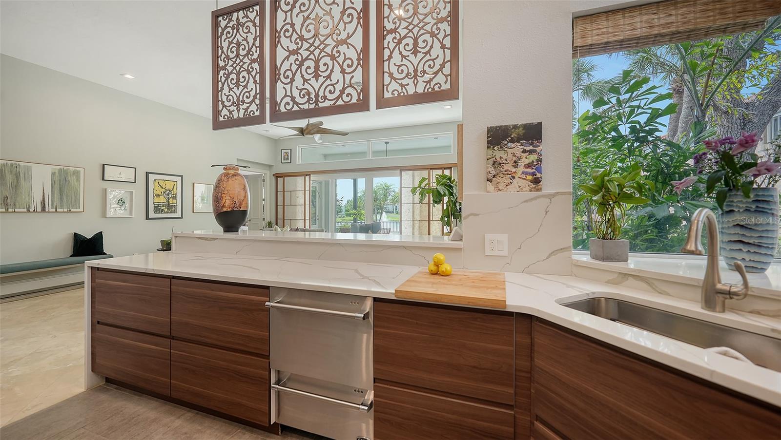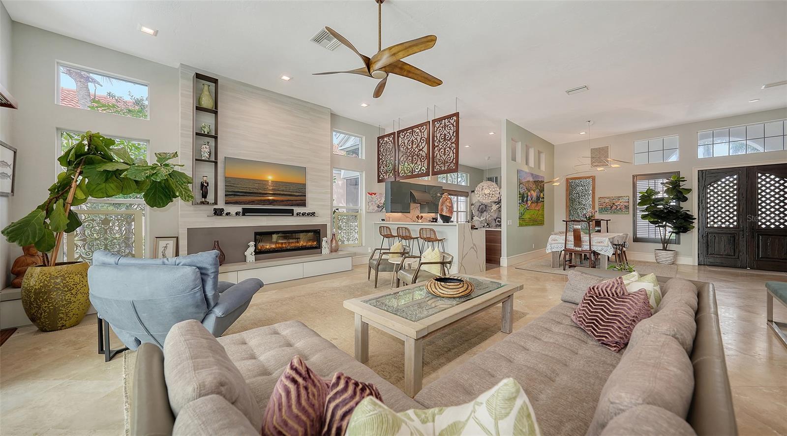 Bem-vindo a uma transformação extraordinária onde a arte sofisticada encontra o luxo urbano moderno, elevando o prestígio sereno de Queens Harbour em Longboat Key. Esta residência impecavelmente reimaginada de 3 quartos e 2 banheiros oferece um ambiente e requinte raros, mesclando perfeitamente a elegância interior com a serenidade externa. Portas shoji personalizadas envolvem controles deslizantes com impacto de furacão, criando um ambiente intimista e brilhante - perfeito para noites ao ar livre ou saboreando a escultural lareira de pedra na grande sala. Tetos altos e nichos selecionados exibem belas artes e detalhes arquitetônicos, infundindo a casa com um calor elegante. Texturas cremosas - desde travertino selecionado à mão até bancadas em cascata de quartzo - formam um cenário relaxante e sofisticado. A cozinha inspirada no chef é bonita e altamente funcional. Uma ilha de madeira exótica, pia de cobre martelado e fogão a gás inoxidável DCS premium com fornos embutidos evocam a arte culinária. A iluminação de designer ilumina as superfícies de quartzo, enquanto a elegante área de café da manhã - com sua impressão de parede personalizada - sugere uma suíte sofisticada de Manhattan. As gavetas da máquina de lavar louça Fisher & Paykel elevam o entretenimento e a ampla barra de café da manhã convida os hóspedes a se reunirem com estilo sem esforço. O volumoso plano aberto flui para uma sala de jantar formal, ideal para uma recepção graciosa, tudo conectado à grande sala e ao tranquilo jardim Zen além. Os controles deslizantes grandes dissolvem a fronteira entre o interior e o exuberante oásis do quintal, emoldurando a piscina serena como uma pintura viva. A suíte dos proprietários é um santuário com proporções generosas, closet, lounge/espaço de trabalho tranquilo e acesso à piscina privativa com vista para o lago suave. O banheiro principal é uma obra-prima - com acabamentos refinados, box amplo para duas pessoas fechado em vidro transparente e banheira de imersão generosa criando um refúgio semelhante a um spa. O segundo quarto de banho é banhado pela luz solar de uma ampla parede de janelas e oferece acesso ao banheiro privativo. Quartzo luxuoso, azulejos e acessórios de alta qualidade proporcionam refinamento discreto, com um armário espaçoso e armazenamento de roupa de cama próximo para os hóspedes. O terceiro quarto/arrumos, atualmente decorado como um escritório chique, pode ser facilmente convertido em uma suíte de hóspedes. Os componentes integrados personalizados dão um tom sofisticado, ideal para relaxar depois de dias nas praias próximas. Desde suas portas duplas esculpidas até seus acessórios e acabamentos elevados, esta casa irradia calor, artesanato e luxo costeiro refinado. Uma reforma completa em 2018 garante conforto e tranquilidade. Mude-se imediatamente e comece a viver o estilo de vida fácil e distinto que define Queens Harbour e Longboat Key. Os residentes têm acesso ao Bay Isles Beach Club com churrasqueiras, vôlei, pavilhões cobertos, cozinha privativa e armazenamento - perfeito para reuniões ao pôr do sol. As associações opcionais no renomado Longboat Key Club oferecem pickleball de primeira linha, tênis, 45 buracos de golfe profissional, uma marina de águas profundas, restaurantes sofisticados, spa, academia e 16 quilômetros de praia de areia branca. Venha viver o sonho.