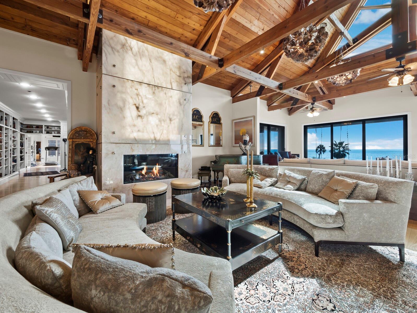 Onde o céu se abre acima do Golfo e a costa corre ininterruptamente, esta extraordinária propriedade de mais de 12.000 pés quadrados tem uma presença que desafia qualquer comparação. Situada em quase 60 metros de praia imaculada, a residência é elevada sobre estacas e envolta em paredes de vidro que estendem o horizonte do Golfo para todos os principais espaços residenciais. No interior, tetos altos de cedro, treliças expostas e linhas dramáticas criam uma sensação de volume e calor que é ao mesmo tempo refinada e convidativa. A grande sala se desdobra sob grandes vigas arquitetônicas e transita facilmente para amplos terraços acima da areia. Um lounge ricamente elaborado com bar personalizado e área de bilhar traz uma sofisticação de clube aos espaços de entretenimento da casa. A extraordinária cozinha do chef chama a atenção com armários embutidos personalizados, duas ilhas grandes, eletrodomésticos de nível profissional e uma despensa escondida - ideal tanto para eventos de bufê quanto para a vida cotidiana. A suíte principal do segundo andar serve como um refúgio privado com vista para o Golfo, área de estar generosa e banheira inspirada em spa. Suítes adicionais oferecem privacidade aos hóspedes, enquanto espaços flexíveis – incluindo escritórios, sala de ginástica com sauna e áreas bônus – acomodam uma variedade de estilos de vida. Uma piscina elevada e um spa com vista para a praia, complementados por vários decks e áreas de estar ao ar livre que capturam o nascer do sol, o pôr do sol e o som das ondas. Com dois elevadores, garagem para vários carros e acabamento excepcional por toda parte, esta é uma residência projetada para quem busca escala, presença e uma verdadeira vida à beira do Golfo.