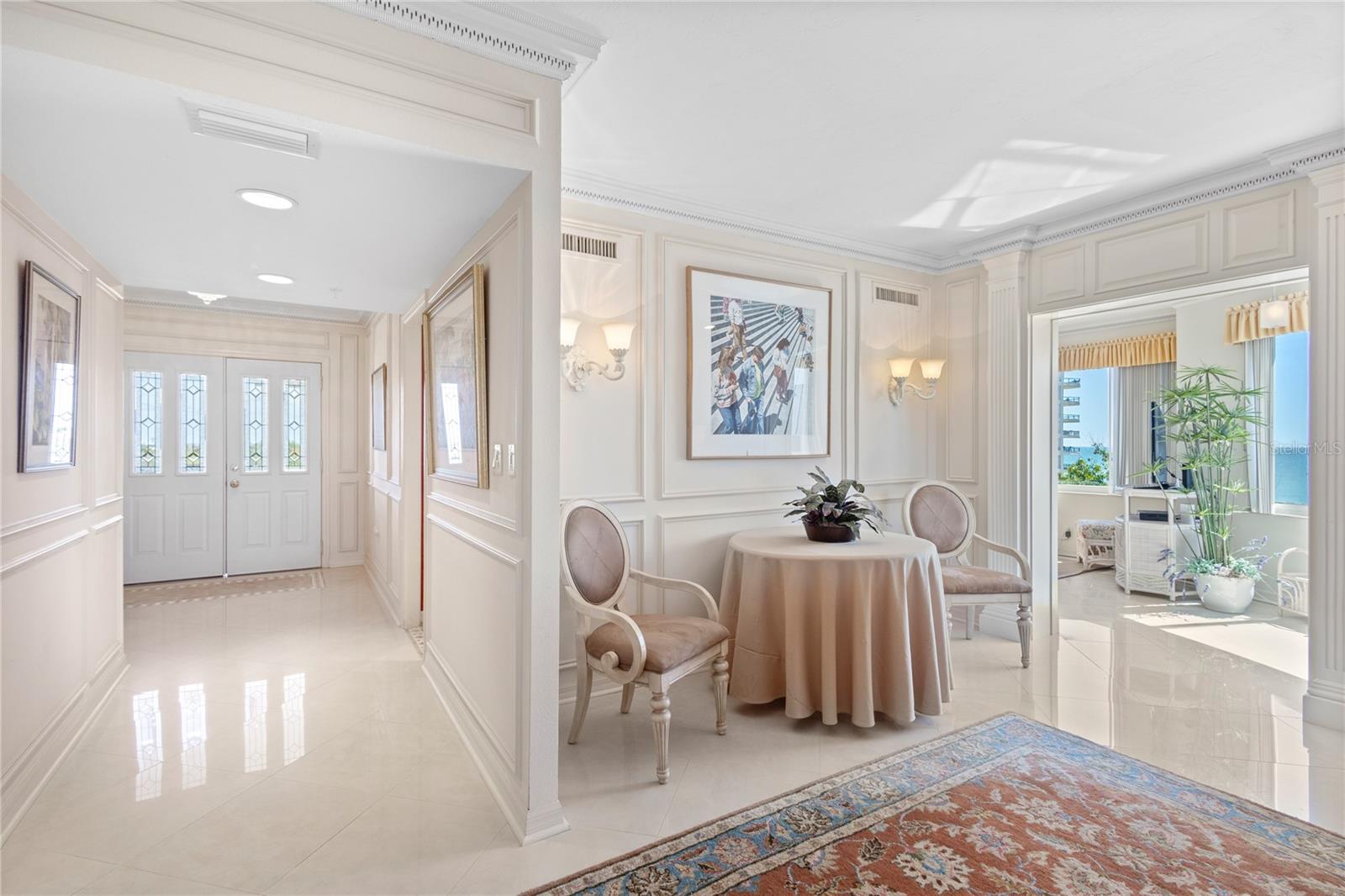 Esta deslumbrante cobertura de canto se estende por mais de 2.800 pés quadrados e oferece vistas deslumbrantes do Golfo, da Baía e do horizonte da cidade. As principais características incluem elegantes pisos de pedra, janelas resistentes a tempestades, armários personalizados, claraboias, tetos elevados e iluminação indireta. A cozinha oferece um balcão para café da manhã e um solário adjacente, perfeito para desfrutar do seu café da manhã enquanto aprecia as vistas do Golfo e da cidade. A espaçosa sala de estar/escritório adjacente ao quarto principal possui mesa e estantes embutidas, com amplas paredes de vidro com vista para a piscina e o Golfo. Para entretenimento, o impressionante pátio privado de 800 pés quadrados inclui uma grande fonte e uma cozinha de verão. Esta residência também inclui uma garagem privada e um lugar de estacionamento adicional atribuído no edifício. Os residentes do The Players Club desfrutam de uma entrada vigiada, gerenciamento no local, piscina de água salgada e cabanas em estilo resort, spa, quadras de tênis Har-Tru, pickleball, putting green, academia, clube reformado com cozinha de catering, área de entretenimento ao ar livre com fogueiras, churrasqueiras e acesso direto a uma praia de areia branca. Tudo isso fica a poucos minutos das vibrantes lojas, restaurantes, teatros e galerias de arte de St. Armands Circle e do centro de Sarasota.