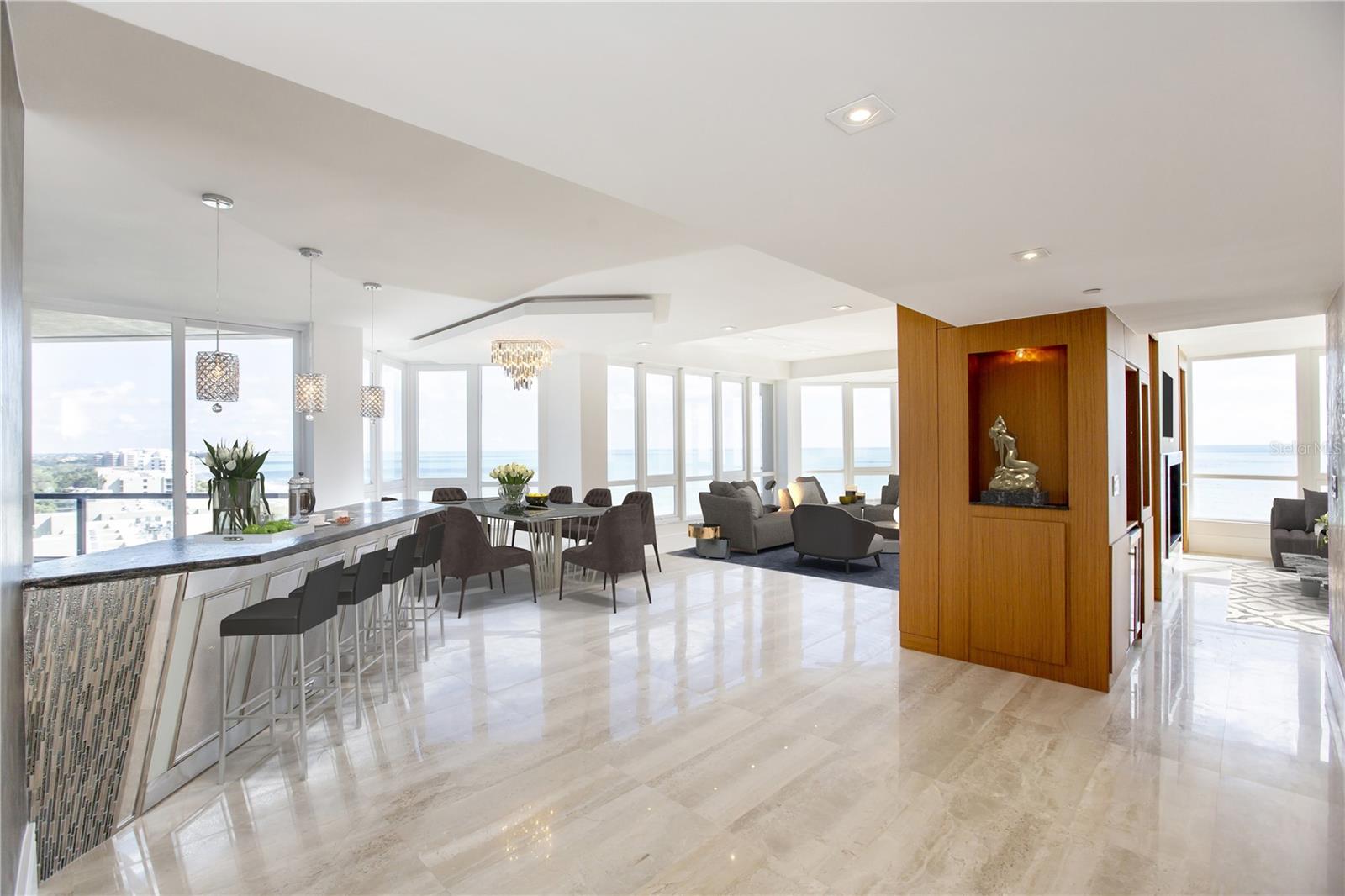 "Condomínio GULF FRONT Promenade Penthouse, Longboat Key 2 andares 5 quartos + escritório, 5 ½ banheiros diretamente na frente do Golfo, unidade final, unidade quase completamente reformada e nunca ocupada. A residência tem aproximadamente 5.092 SF com quilômetros de vistas fabulosas de todos os quartos do Golfo, pôr do sol e baía, elevador privativo espelhado conectando os 2 níveis, 2 clarabóias no 10º andar abertas para o céu azul da Flórida e noites estreladas, 2 terraços ao ar livre com vistas fascinantes do Golfo do México, centro de Sarasota e Siesta Key, 2 vagas de estacionamento cobertas perto do elevador, armário de armazenamento com temperatura controlada e um armário adicional na parada de trabalho Espetacular hall de entrada de dois andares com paredes de vidro de tirar o fôlego. Vencedor do prêmio “Vencedor do prêmio Platinum da SRQ Magazine em 2023: Melhor Remodelação/Renovação do Ano”. Design luxuoso e glamouroso com recursos interiores elegantes, como uma sala de armazenamento de vinho transparente, um dramático hall de entrada de 2 andares com vista para um segundo. guarda-corpo de vidro no piso, lareira ônix retroiluminada, piso em pedra calcária 18”X36”, piso em madeira maciça de teca, cozinha inspirada no chef com armários Poggenpohl, geladeira e freezer completos Liebherr, forno Kueppersbusch, lava-louças e cooktop, exaustor “Elica” em cristal Swarovski, Armários de couro italiano Falegnami, ferragens Valli & Valli, luminárias Kreon e Deltalight, com escada interna circular em vidro. Instalações sanitárias Hansgrohe e Grohe, bancada em granito antigo escovado, gesso veneziano técnica italiana cobrindo as paredes, arrecadação privativa com ar condicionado e armário atribuído na sala de artes/ofícios, estores motorizados e cortinas blackout. Promenade é um dos condomínios premium em frente ao Golfo de Longboat Key, com 112 unidades e 10 andares situados no extremo sul, oferecendo uma grande piscina geométrica aquecida com vista para a praia e spa, spa, terraços e gazebo com cadeiras e 2 mesas longas, 4 quadras de tênis Har-Tru , churrasqueira, 2 academias de ginástica e spa com saunas em cada health club, duas salas de convívio: Sala Sunrise (com bar) e Sala Sunset (com cozinha completa), sala de confraternização, sala de artesanato com filme e livro biblioteca, armazenamento de bicicletas, portão de entrada vigiado 24 horas, serviço de concierge 7 dias por semana, cadeiras de praia e guarda-sóis e praia de areia imaculada com vista para as águas azul-turquesa do Golfo do México. A taxa de manutenção cobre o exterior do edifício, cabo, internet e eletricidade na área comunitária, reserva de garantia muito saudável, seguro contra inundações, manutenção do terreno, seguro do edifício e áreas comuns, gestão no local, instalações recreativas, telhado, segurança, remoção de lixo, água e esgoto. Sarasota, Flórida, é uma cidade vibrante conhecida por suas belas praias, como Siesta Key, Lido Key e Longboat Key. O complexo do Ringling Museum oferece uma experiência artística cativante, enquanto o Mote Marine Laboratory & Aquarium apresenta espécies marinhas fascinantes. Faça compras de luxo no St. Armands Circle, delicie-se com diversas delícias culinárias e mergulhe no próspero cenário de artes cênicas de Sarasota. O Aeroporto Internacional Sarasota Bradenton oferece acesso conveniente a esta variedade de atrações. • A economia de Sarasota, Florida, é impulsionada por sectores como o turismo, sendo as maiores indústrias os cuidados de saúde e assistência social, o comércio retalhista, o imobiliário, os serviços profissionais e as artes. Proprietários sublocam 3 meses/mínimo duas vezes/ano. Não perca a oportunidade de ver esta cobertura premiada e única à beira-mar! Ligue para mostrar hoje.
