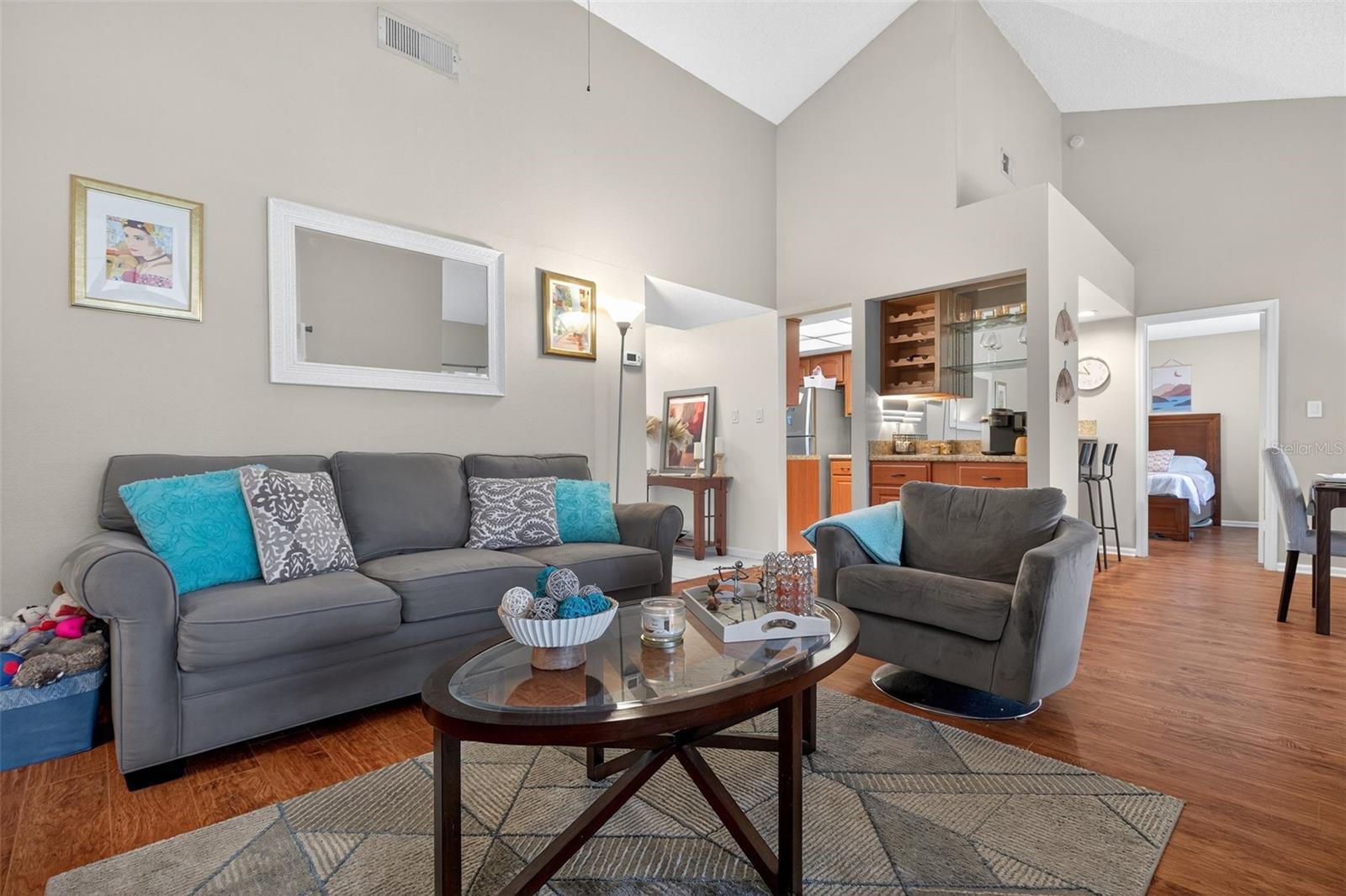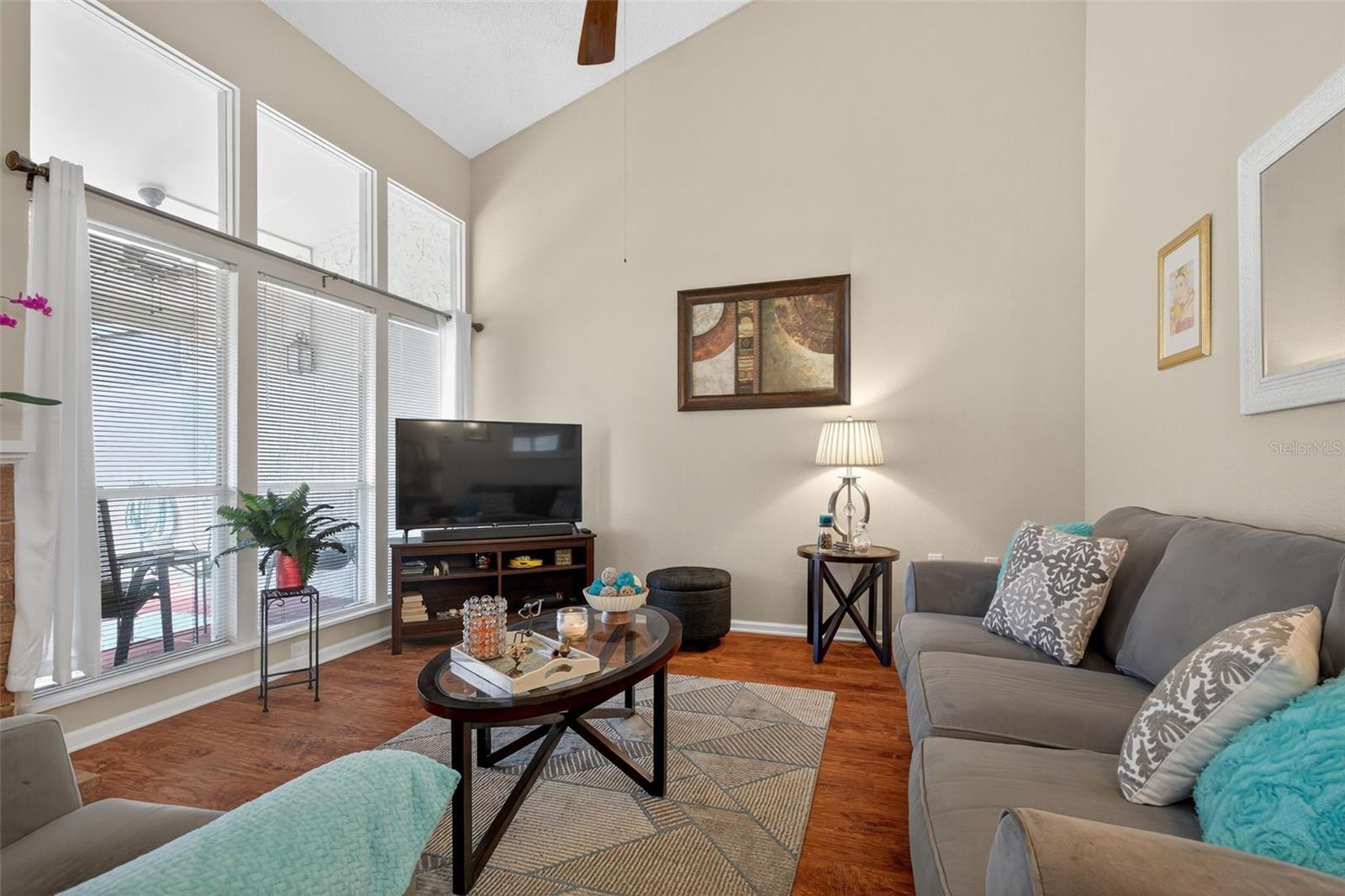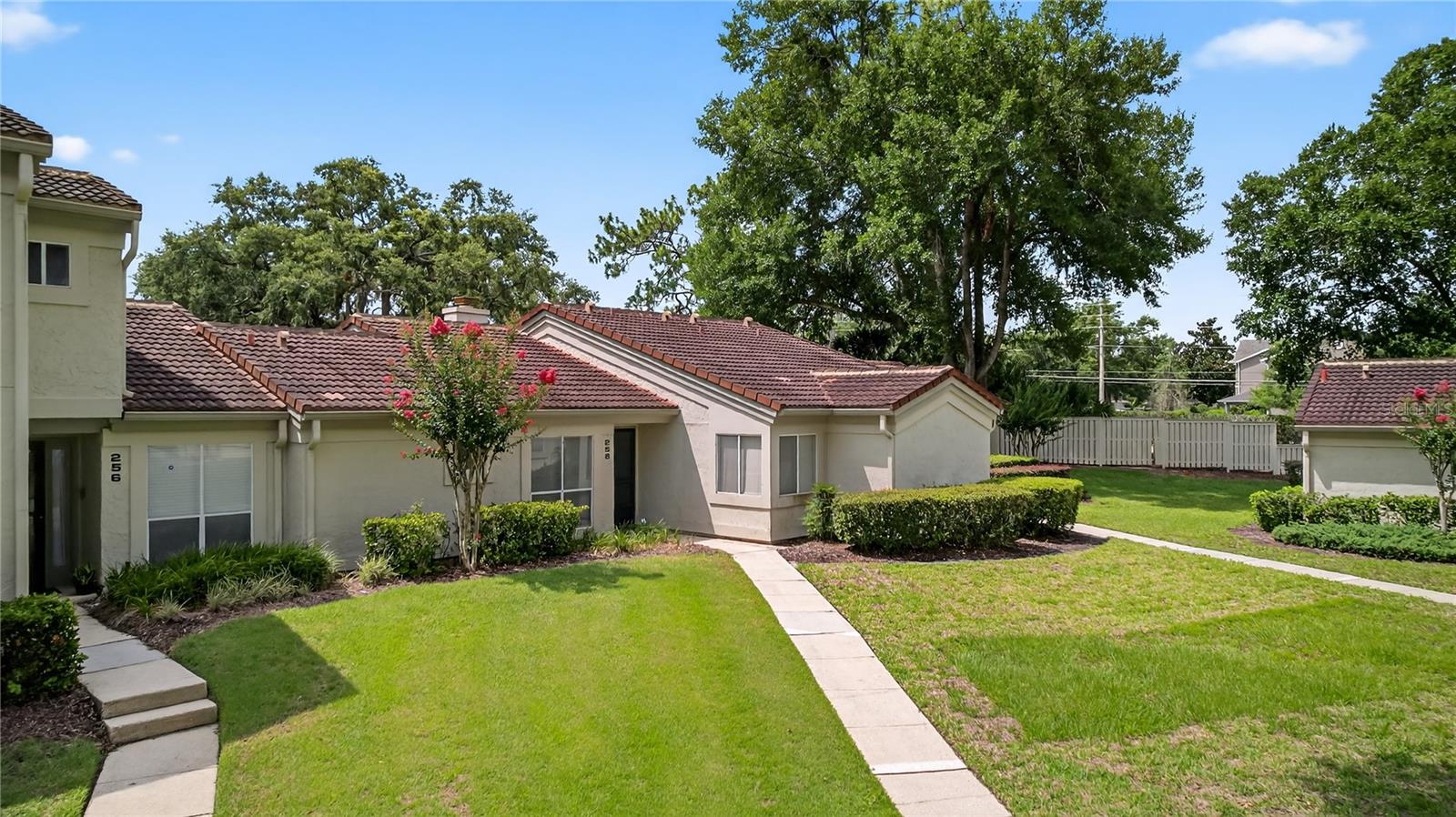 Desfrute de uma vida de baixa manutenção e uma ótima oportunidade de investimento! Esta elegante villa de 2 quartos e 2 banheiros, que oferece uma planta baixa e cheia de luz, com tetos altos altos e lindos pisos laminados por toda parte. Cada quarto de grandes dimensões possui seu próprio banheiro privativo, enquanto a sala de estar mostra uma lareira a gás e um vinho embutido/e/ou café. A cozinha é completa com utensílios de aço inoxidável, um balcão de capota e um recanto de comer que flui perfeitamente para um espaço formal para refeições e um retiro de pátio traseiro. Localizado perto da frente da comunidade, a poucos minutos da piscina comunitária, Publix, CVS, LA Fitness e Dining, este realmente tem tudo, incluindo lavanderia na unidade (lavadora/secadora incluída). O HOA cobre água, esgoto, lixo e toda a manutenção externa.