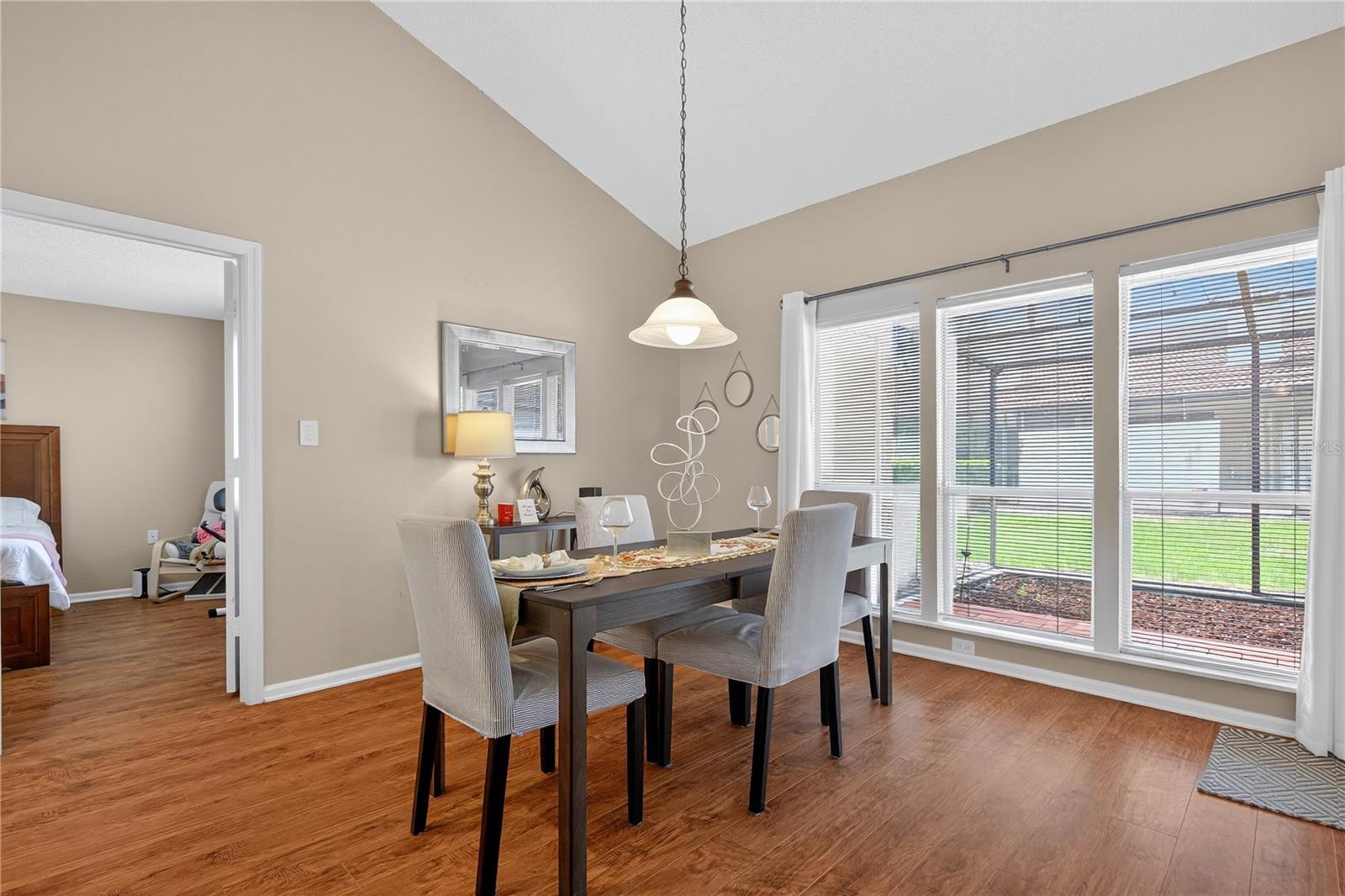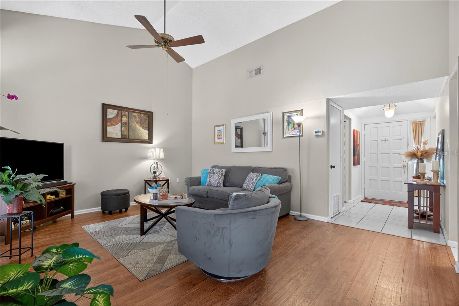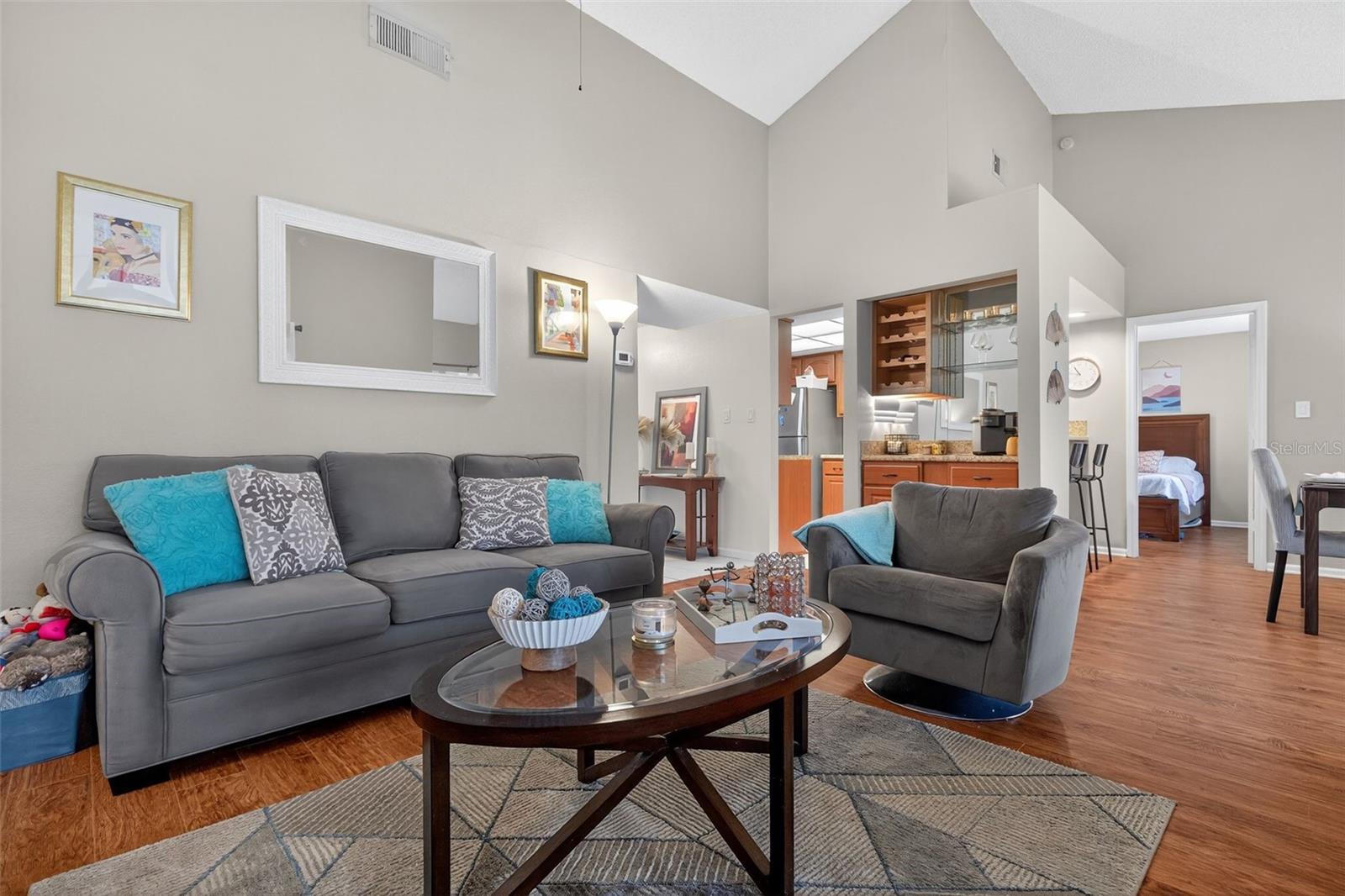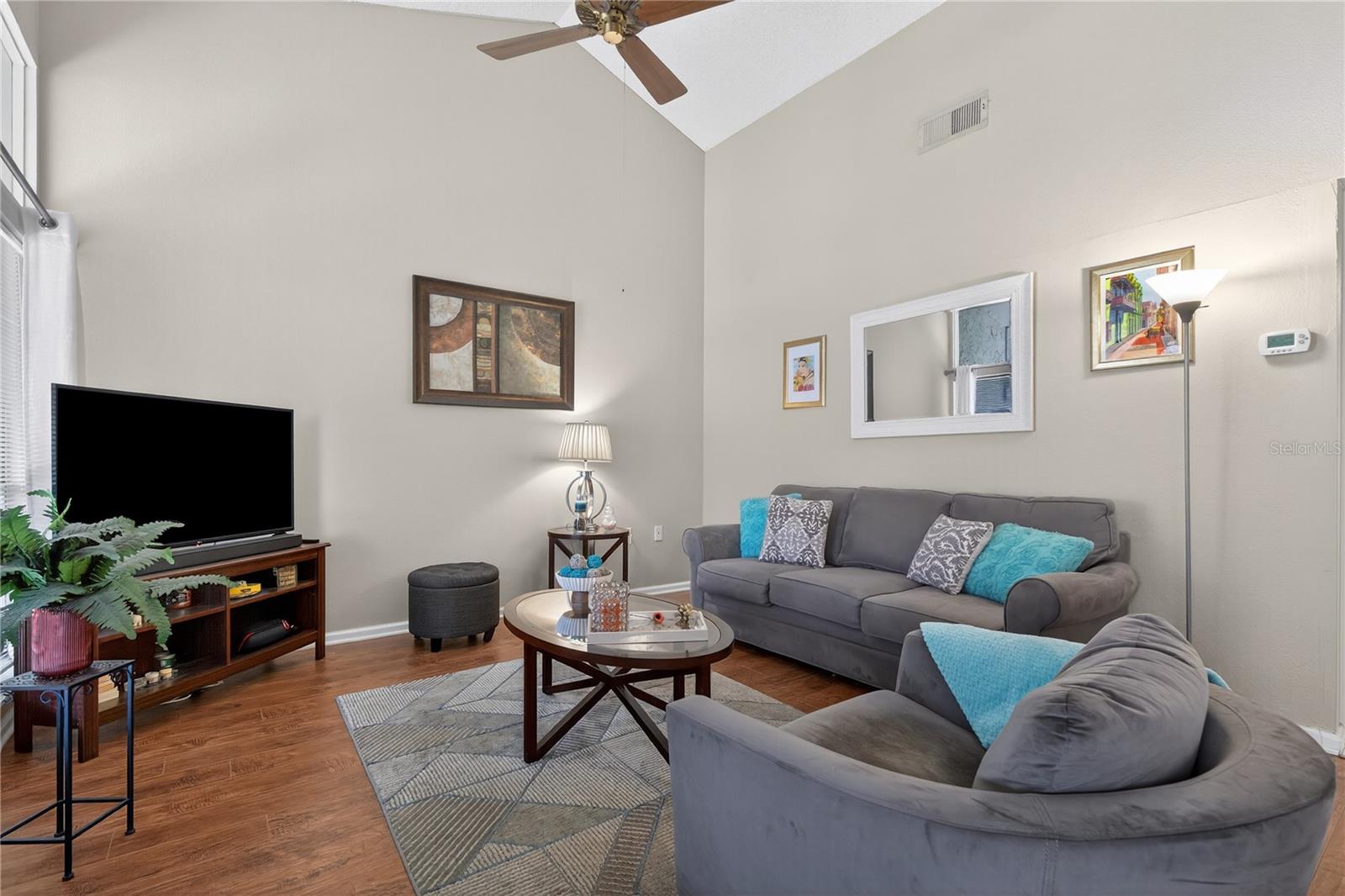 Desfrute de uma vida de baixa manutenção e uma ótima oportunidade de investimento! Esta elegante villa de 2 quartos e 2 banheiros, que oferece uma planta baixa e cheia de luz, com tetos altos altos e lindos pisos laminados por toda parte. Cada quarto de grandes dimensões possui seu próprio banheiro privativo, enquanto a sala de estar mostra uma lareira a gás e um vinho embutido/e/ou café. A cozinha é completa com utensílios de aço inoxidável, um balcão de capota e um recanto de comer que flui perfeitamente para um espaço formal para refeições e um retiro de pátio traseiro. Localizado perto da frente da comunidade, a poucos minutos da piscina comunitária, Publix, CVS, LA Fitness e Dining, este realmente tem tudo, incluindo lavanderia na unidade (lavadora/secadora incluída). O HOA cobre água, esgoto, lixo e toda a manutenção externa.