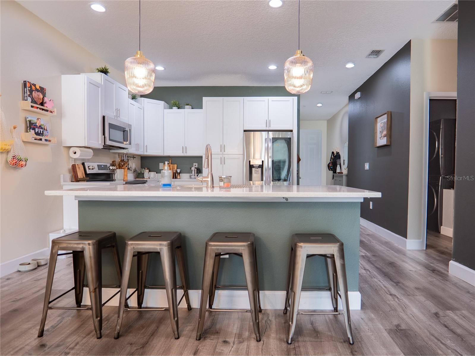 O vendedor pode oferecer concessões do comprador! Bem-vindo a esta casa moderna projetada construída em 2021- sem HOA. Esta casa apresenta uma planta baixa. 4 quartos, uma sala secundária pode ser usada como uma sala flexível para o seu escritório, sala de jogos/sala, sala de ginástica ou quarto! 3 banheiros completos, 2 dos quais são suítes, perfeitos para um quarto de hóspedes! Cozinha espaçosa com uma bela ilha de quartzo com saliência de 4 lugares. Balcões de quartzo, pensativamente colocados em cozinha e banheiros. Armários de agitadores de madeira, piso de tábua de vinil nas áreas principais e piso de tapete macio nos quartos. Tetos de 9'4 '', 5 1/4 de rodapé, aparelhos de aço inoxidável premium, incluindo uma geladeira de batida e visualização que ilumina com duas batidas rápidas, permitindo que você veja o que está dentro sem abrir a porta. Muito quintal - completamente cercado! Transfira o interruptor para o gerador instalado para que você possa ficar fácil durante a temporada de furacões com energia. Linda garagem com pavimentação para recebê -lo em casa. Localizado perto das principais estradas, como 434, I-4 e 1792. A casa tem uma garantia transferível até 2032!