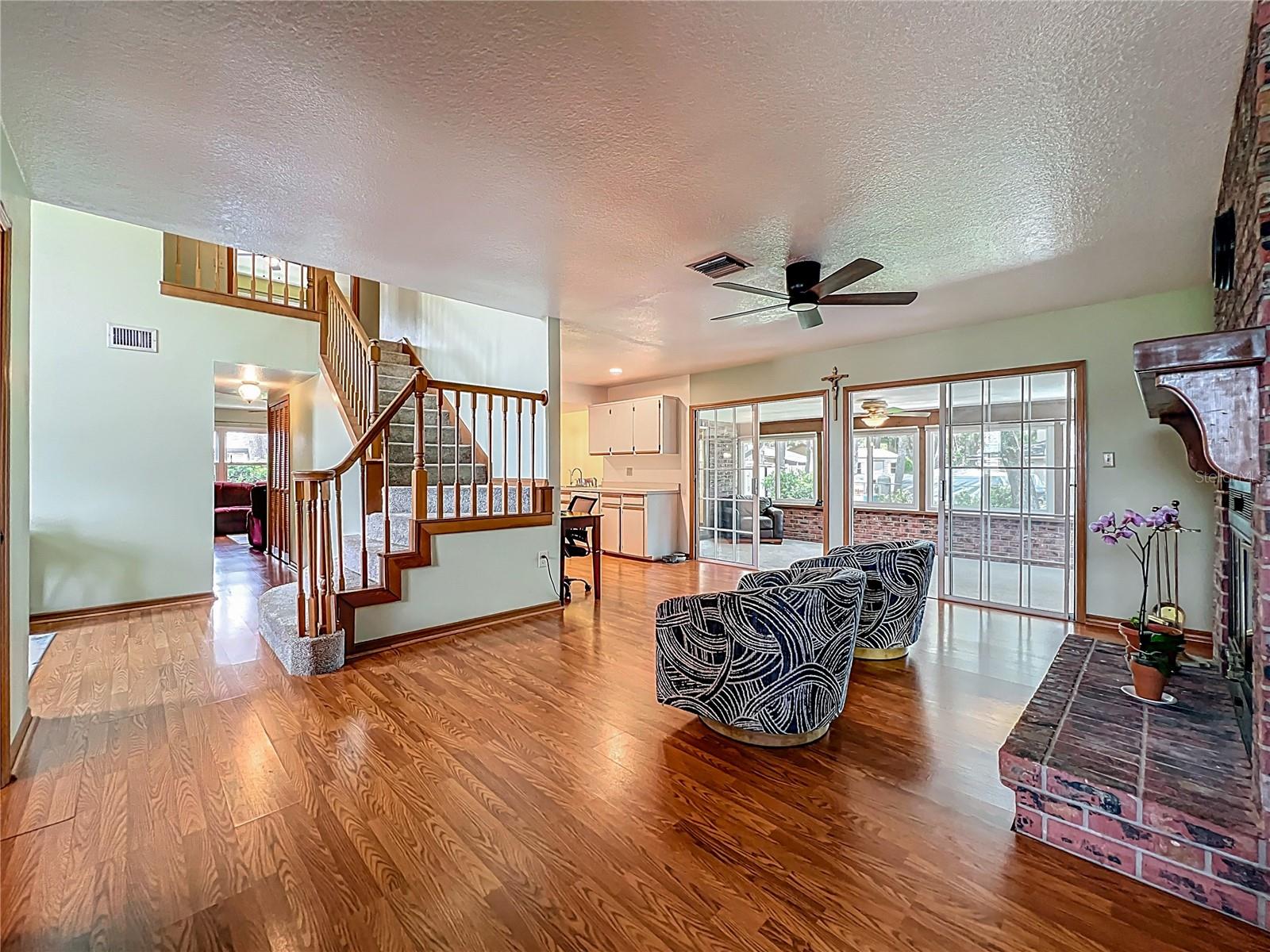 WELCOME TO THIS LOVELY 4 BEDROOM 3 BATH POOL HOME WITH OVER 3,100 SQ FT, THE HOME FEATURES A FAMILY ROOM WITH A CHARMING WOOD BURNING FIREPLACE, FORMAL LIVING AND DINING ROOMS, LARGE EAT IN KITCHEN PROVIDES A CONVENIENT SPACE FOR CASUAL MEALS, THE VERSATILE PORCH SPACE, WITH ITS WINDOWS CAN SERVE AS A FLORIDA ROOM OR A COZY SPOT TO ENJOY THE OUTDOORS, PRIMARY BEDROOM IS ON THE FIRST FLOOR, 3 SPACIOUS BEDROOMS UPSTAIRS, 2 FEATURE WALK IN CLOSETS, Aproveite a vista do lago da varanda dianteira, grande armário de armazenamento no andar de cima, piso laminado, exceto banheiros e escadas. A piscina é complementada por pavimentadoras, juntamente com o acionamento de entrada lateral e o acionamento circular, o que aumenta o apelo do meio -fio, o quintal cercado, o sistema de aspersão. Dentro da lavanderia, ** Atualizações incluem o Windows 2020, janelas da varanda e porta 2023, telhado 2022, primeiro andar AC 2024, segundo andar AC 2022, séptico 2024, sistema de água 2024 ** Este é realmente um lar maravilhoso, especialmente para uma família numerosa.