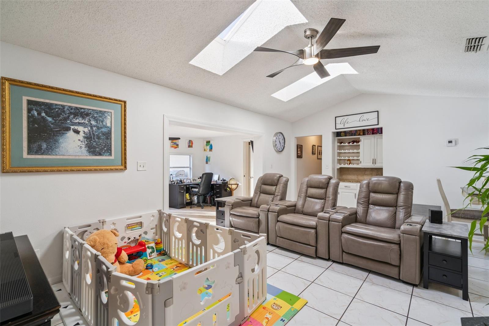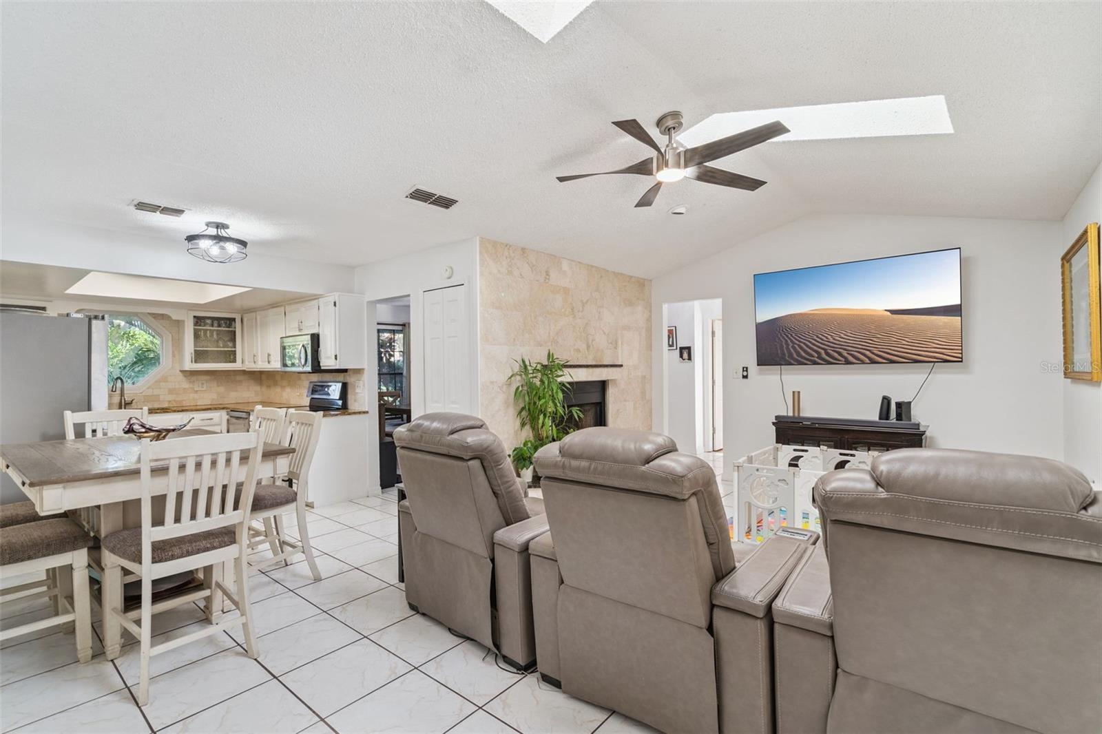 Bem-vindo a esta residência lindamente conservada de 4 quartos, 2 banheiros e garagem para 2 carros, oferecendo conforto, funcionalidade e estilo em cada detalhe. Localizada em um bairro maravilhosamente cuidado e sem HOA, esta casa oferece todos os benefícios de uma comunidade bem cuidada sem taxas ou restrições adicionais. Entre para descobrir uma casa que foi cuidadosamente renovada. O design da planta dividida oferece excelente privacidade e fluidez, complementado por piso de cerâmica e laminado e abundância de luz natural que entra pelas grandes janelas. A cozinha atualizada se destaca, apresentando bancadas de granito, backsplash de azulejos de travertino e eletrodomésticos de aço inoxidável. Uma conveniente área de bar embutida e uma sala de jantar aconchegante ficam ao lado da cozinha - perfeitas para refeições casuais ou para receber convidados. A sala familiar apresenta tetos abobadados, clarabóias e uma encantadora lareira com detalhes em travertino, criando uma atmosfera convidativa. As portas de correr abrem para uma sala bônus, que oferece espaço adicional com piso de cerâmica e portas francesas que dão para o deck do quintal. A espaçosa suíte master inclui portas de correr que se abrem para um pátio externo privativo, ideal para um retiro tranquilo. O banheiro principal foi remodelado com bom gosto, com pias duplas, iluminação embutida, um grande chuveiro com azulejos e um espaçoso closet. O banheiro de hóspedes, também lindamente reformado, oferece pias duplas, combinação banheira/chuveiro, iluminação embutida e acesso direto à sala bônus. Os destaques adicionais incluem uma lavanderia interna convenientemente localizada no corredor da garagem. Saia e aproveite o deck com piso de madeira com vista para um grande quintal cercado com muito espaço para relaxar, brincar e se divertir sob a sombra de árvores maduras. NOVO CAMPO DE DRENAGEM! Não perca a chance de ver esta casa maravilhosa - ligue hoje mesmo para uma exibição privada!
