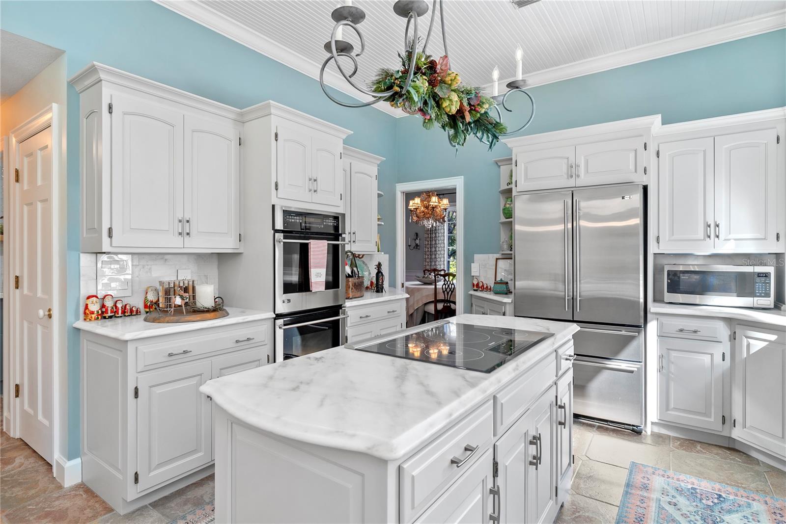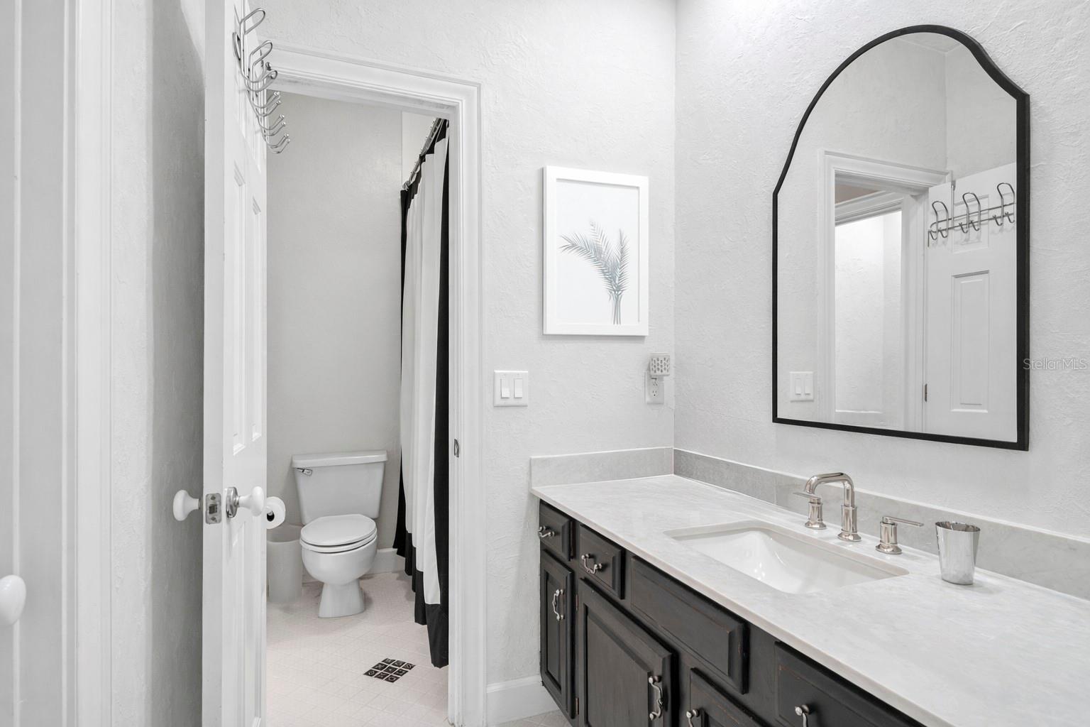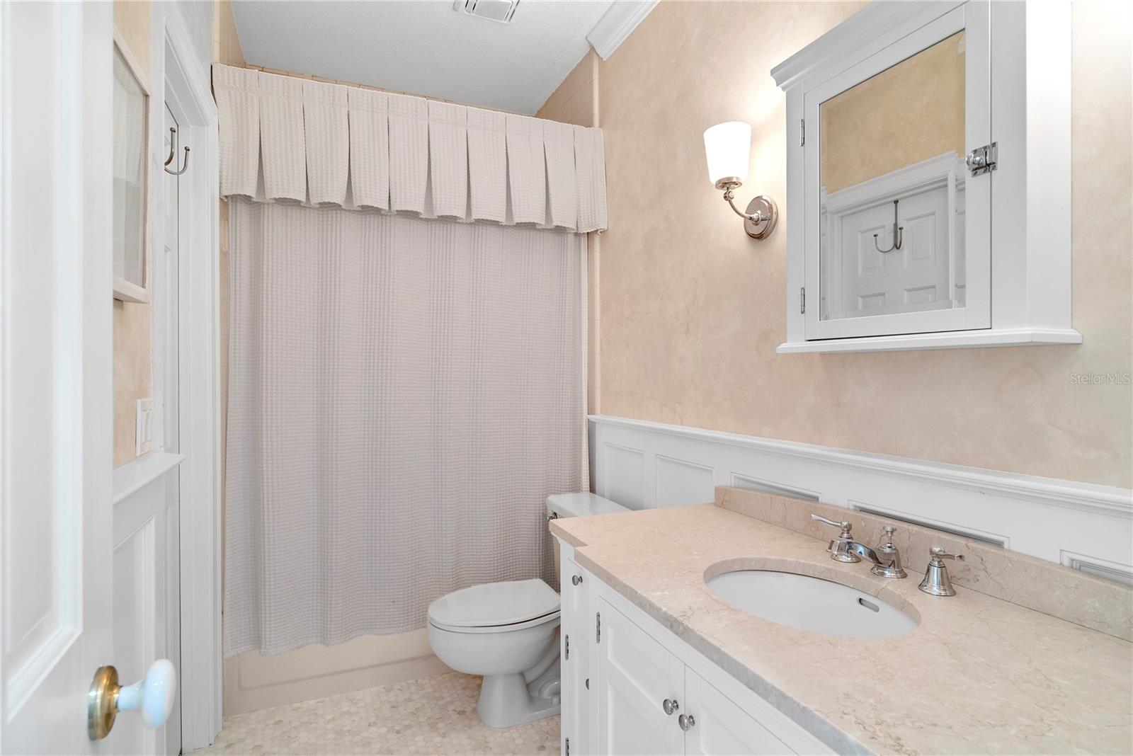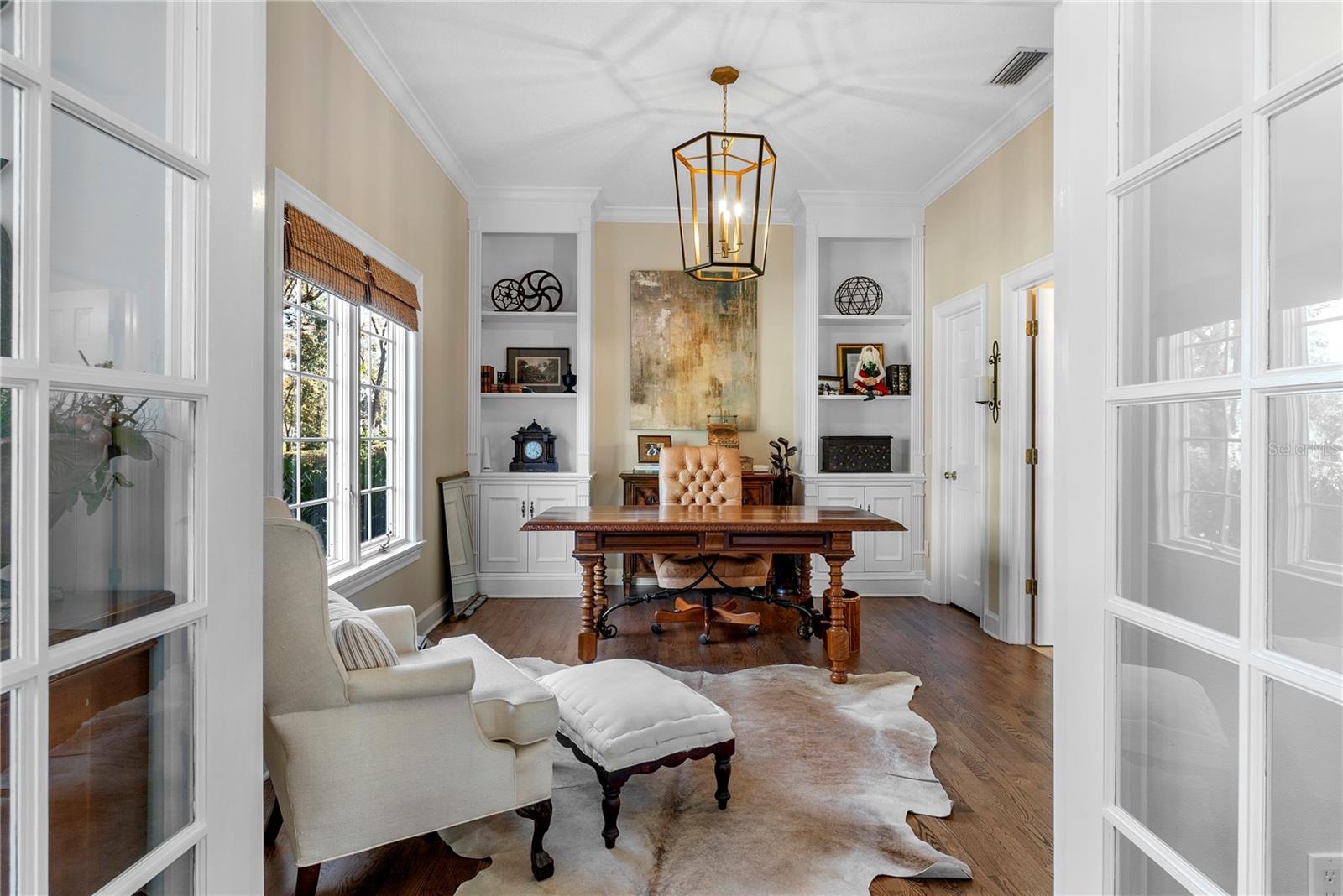 Casa construída sob medida situada em um terreno de um acre na Markham Woods Road, cercada por majestosos carvalhos. Um acolhedor foyer de dois andares dá o tom na entrada. À esquerda está uma sala de estar formal com sancas e portas francesas que levam a um escritório privado com embutidos personalizados e um closet. Este espaço pode servir como quinto quarto ou berçário e tem acesso a um banheiro completo adjacente com box amplo. À direita do hall de entrada fica a sala de jantar formal, que flui perfeitamente para a espaçosa cozinha. A cozinha é equipada com armários personalizados em madeira maciça, gavetas extraíveis, buffet com armários frontais de vidro, fornos de parede dupla e cooktop de indução. Uma copa tem vista para o quintal e se abre para a sala familiar de dois andares, que possui uma lareira cercada por embutidos personalizados e sancas. As portas francesas na parte traseira da sala da família se abrem para uma varanda grande, ideal para ambientes internos e externos. A suíte principal está convenientemente localizada no primeiro andar e possui uma grande janela saliente com vista para o jardim. Oferece armários separados para ele e para ela e um banheiro principal grande com banheira de imersão independente, chuveiro separado, pia dupla, piso de mármore e armazenamento embutido personalizado adicional. Um lavabo e uma lavanderia recentemente reformada completam o nível principal. A lavanderia possui armários shaker brancos, backsplash de azulejos, detalhes em papel de parede, bancadas de quartzo e um armário com prateleiras embutidas e espaço para pendurar. No andar de cima, a escada se abre para um loft com vista para a sala da família, criando uma leitura confortável ou espaço flexível. Três quartos adicionais estão localizados no segundo andar, incluindo dois quartos conectados por um banheiro Jack-and-Jill com uma rampa de lavanderia conveniente que desce diretamente para a lavanderia do primeiro andar e um terceiro quarto com banheiro privativo. A casa oferece armazenamento abundante, incluindo armários sob a escada em ambos os lados da porta da frente e armazenamento adicional no corredor no andar de cima. Em toda a casa há detalhes exemplares de madeira, armários embutidos personalizados e molduras elegantes, refletindo artesanato de qualidade e design atencioso.