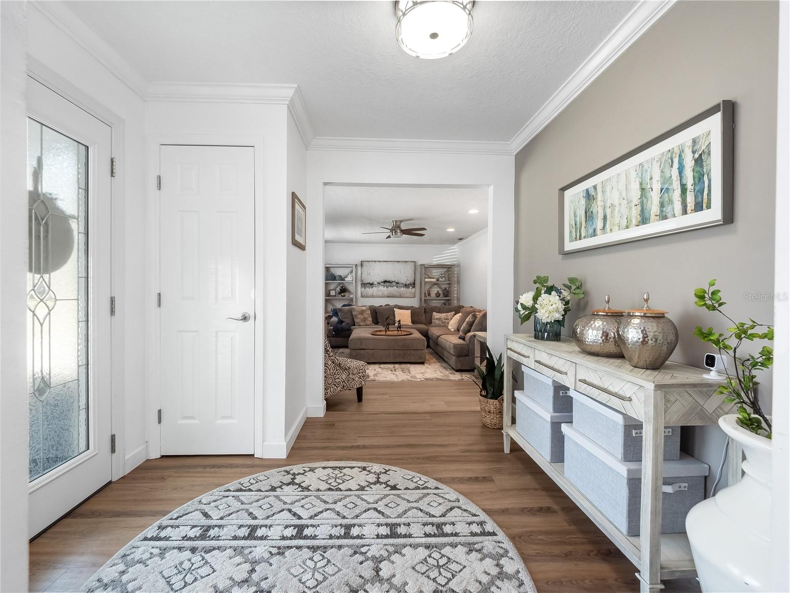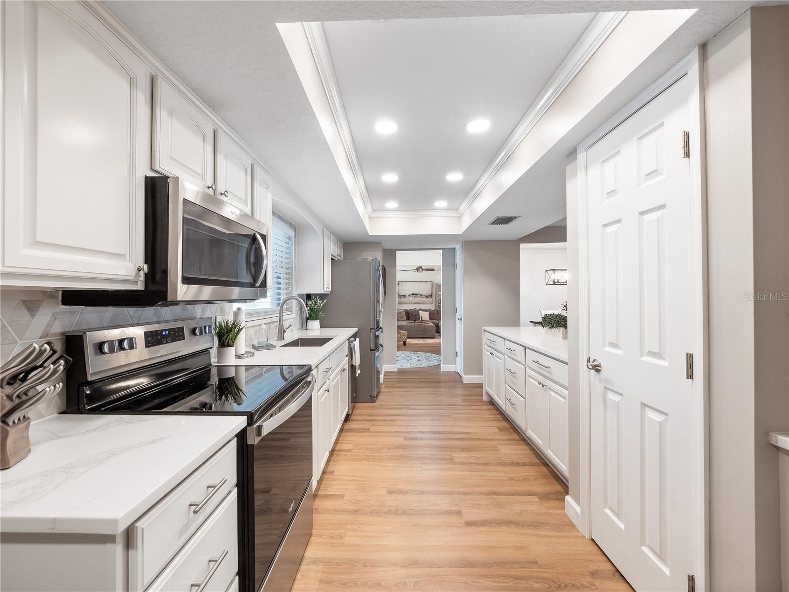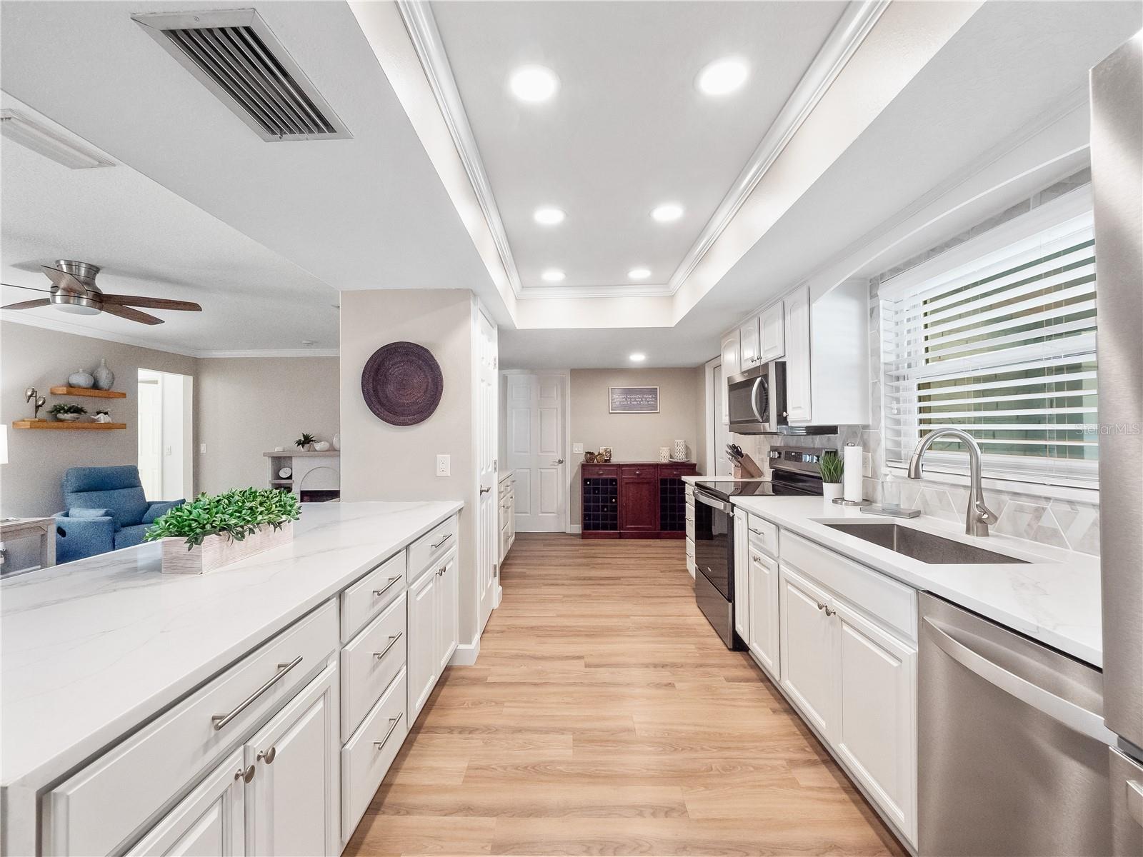 Situada em um terreno de esquina grande está esta casa "ATUALIZADA E MOVE IN" pronta para 4 quartos e 2 banheiros na comunidade de Woodlands. Nos últimos anos, a casa teve muitas atualizações, incluindo um NOVO TELHADO em 2023, pintura interna e externa, uma cerca de privacidade de vinil de 2,5 metros, pavimentação de pátio ao redor da piscina e piso de pranchas de vinil de luxo ou azulejos de cerâmica com aparência de madeira em vários quartos. Uma vez lá dentro, você é recebido por uma grande sala de mídia/estar completa com som surround integrado. Os recursos da cozinha incluem eletrodomésticos de AÇO INOXIDÁVEL mais recentes, armários de madeira maciça e bancadas de quartzo. A cozinha se abre para a sala da família com um longo bar peninsular para sentar. Com dois armários de despensa, você terá muito espaço de armazenamento para todas as necessidades da sua cozinha. A sala de jantar separada fica ao lado da cozinha e tem vista para o pátio traseiro. Também localizada perto da cozinha está a lavanderia de grandes dimensões. A unidade AC é um sistema Carrier Infinity A/C com classificação SEER 17+ com um purificador de ar doméstico completo Air Knight. A enorme sala de bônus revestida de azulejos fica ao lado da cozinha e pode ser usada como suíte dos sogros, home office, academia ou sala de jogos para atividades familiares. Nas traseiras da casa encontram-se os 3 quartos secundários. O banheiro reformado desses quartos é decorado com azulejos elegantes e moldura de vidro e possui armários personalizados com tampo de granito. No quarto principal você encontrará um closet Custom by Design e um banheiro principal reformado também com armários personalizados, bancadas de granito e um box alto de vidro dando-lhe uma aparência moderna e elegante. O pátio traseiro com tela tem vista para a piscina do quintal e oferece um retiro sombreado, perfeito para desfrutar do seu café da manhã ou organizar reuniões. Se você deseja dar um mergulho refrescante em um dia quente de verão ou simplesmente relaxar, a piscina de 2,5 metros de profundidade com o enorme deck de pavimentação é a opção ideal. Para mais relaxamento, o spa/banheira de hidromassagem proporciona um refúgio relaxante para relaxar após um longo dia. Se gosta de cozinhar ao ar livre, irá apreciar a comodidade do grelhador a gás embutido, localizado perto da piscina. Esse recurso permite cozinhar e divertir-se facilmente ao ar livre, facilitando a realização de churrascos e reuniões. A churrasqueira e o aquecedor de água do spa funcionam com gás natural. Você nunca tem muito armazenamento e com um galpão no quintal, você pode armazenar equipamentos de quintal, piscina e atividades ao ar livre com facilidade. O sistema de irrigação Rain Bird facilita a manutenção do gramado para manter seu belo gramado. Convenientemente localizado, você estará a uma curta distância a pé da Woodlands Elementary e Rock Lake Middle School e nas proximidades de Publix, lojas, restaurantes, I-4 e muito mais!