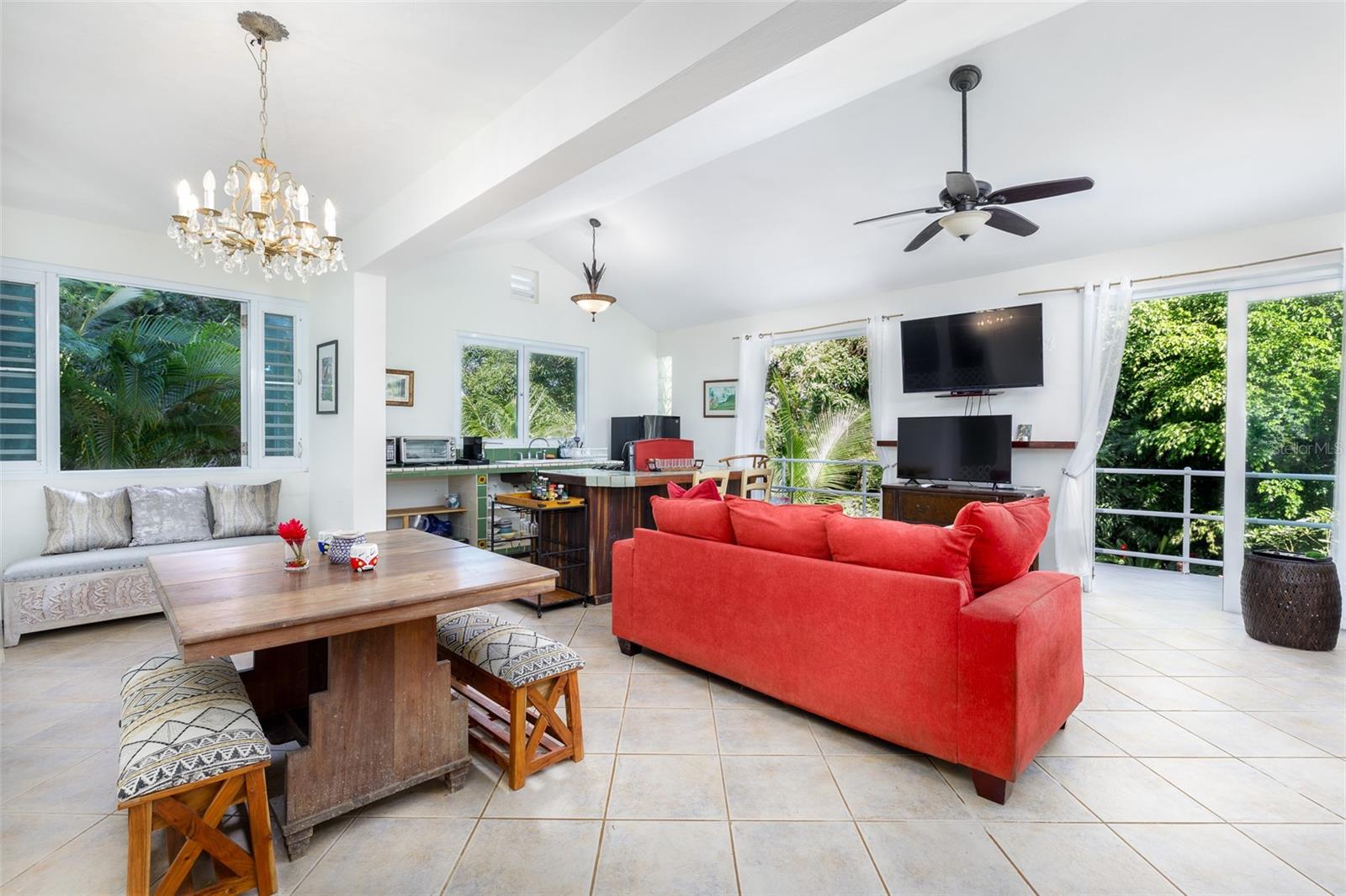 Situado no sopé da Floresta El Yunque, existem três propriedades em um ambiente tropical exuberante com o cenário perfeito para se desconectar de tudo e reenergizar. Estas propriedades ficam em um lote de 2,5 cuerdas com 3 estruturas diferentes em ótimas condições para uma área bruta total de aproximadamente 2.800 pés quadrados. O chalé tropical fica em aproximadamente 1.300 pés quadrados - 2 quartos, 1 banheiro completo, uma cozinha em conceito aberto perfeita para reuniões familiares ou sociais, além de um terraço aberto com vista para o mar da praia de Luquillo. Mesmo ao lado do chalé tropical fica o loft com uma área bruta aproximada de 400m2 com cozinha completa, 1 casa de banho completa e uma varanda muito privada rodeada de natureza. Esta linda propriedade é rodeada por uma 3ª casa de aproximadamente 1.000m² de área bruta com cozinha, sala de estar e jantar em conceito aberto, 1 suíte master e banheiro completo com jacuzzi de hidromassagem com vista para a paisagem verde do exterior. Imóvel com grande potencial actualmente a ser utilizado parcialmente como arrendamento de curta duração com forte reserva e desempenho financeiro. Fica a menos de 12 minutos de carro da SR 3, com fácil acesso às praias de Luquillo e a menos de 10 minutos da trilha El Angelito. Ligue para agendar sua consulta hoje!