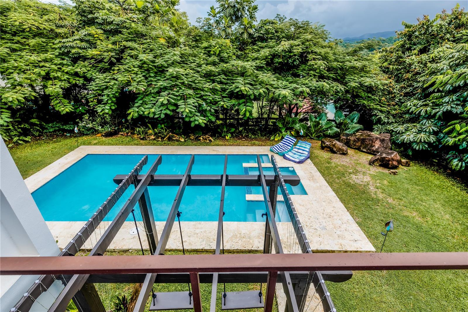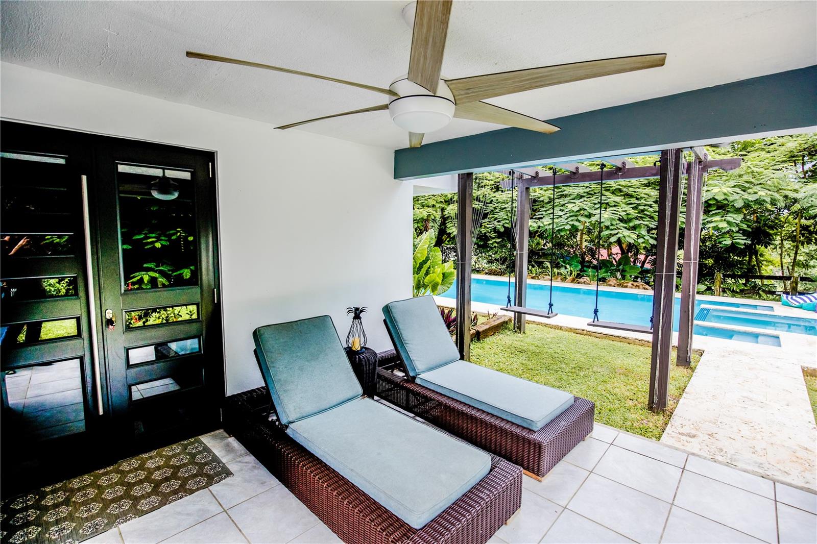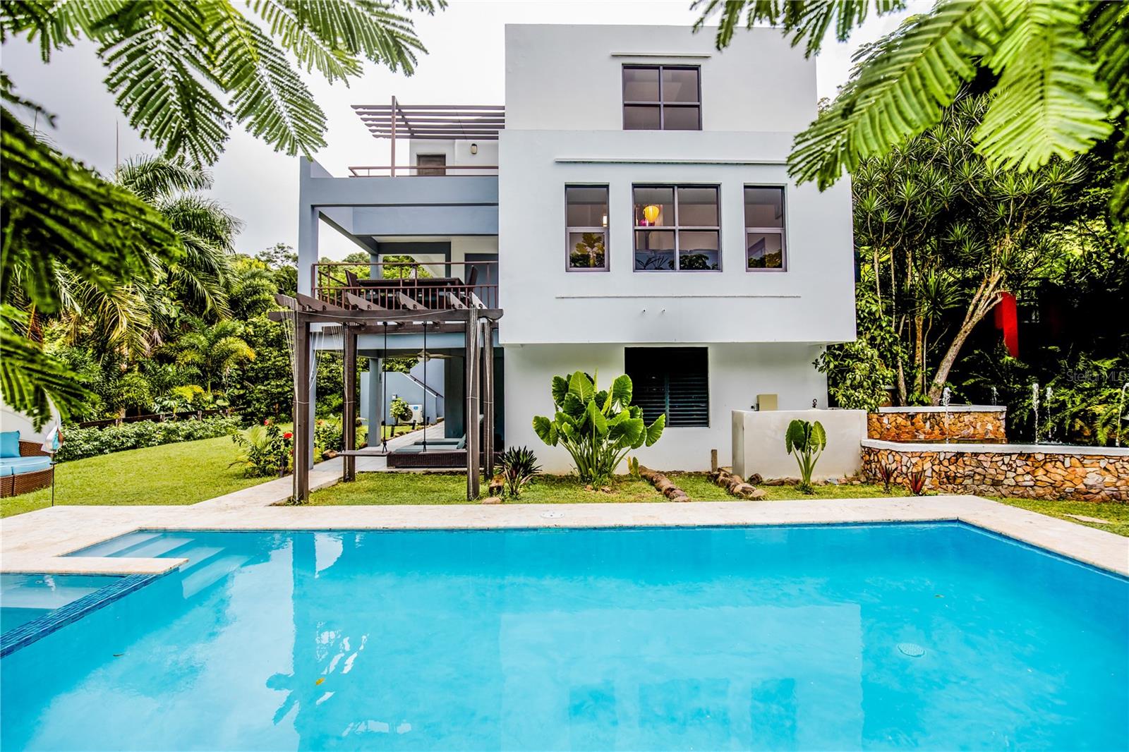 Venha descobrir a Casa Encanto, situada no sopé verdejante de El Yunque, em Luquillo, PR. Uma rara mistura de isolamento e acessibilidade, esta casa fica a poucos passos de praias imaculadas e cascatas, tudo a 30 minutos de carro do Aeroporto de San Juan. Experimente o auge da vida moderna neste santuário de 2 andares, com 3 quartos espaçosos, 3 banheiros totalmente renovados e uma suíte master onde despertar com vistas inspiradoras se torna sua nova rotina. A cozinha do chef, completa com eletrodomésticos Frigidaire Professional® de primeira linha e geladeiras duplas, gira em torno de uma vasta ilha – perfeita para explorações culinárias. Os tetos altos de 24 pés na sala de estar são complementados por janelas amplas, convidando a luz natural em todas as superfícies. Um apartamento anexo promete versatilidade, seja como retiro para hóspedes ou como oportunidade de aluguel, completo com cozinha própria, área generosa e integração perfeita com o esplendor externo. Saia para saborear a piscina recém-instalada ou passeie por seu acre totalmente fechado em meio a uma tapeçaria de árvores frutíferas como manga, goiaba, guanabana, mandioca florescente, abacaxi e muito mais. As características ecológicas incluem um sistema solar completo com 3 baterias Tesla Powerwall 2®, um sistema de água de reserva e um sistema robusto de filtragem de água. A Casa Encanto é tão gentil com o planeta quanto com seus habitantes. A comunidade oferece seu próprio conjunto de luxos, incluindo quadras de tênis, clubhouse e piscina, garantindo que o entretenimento e o relaxamento estejam sempre na agenda. A Casa Encanto não é apenas uma casa; é uma promessa de estilo de vida. Aproveite a oportunidade para torná-lo seu. Entre em contato com seu corretor de imóveis para uma exibição exclusiva e entre na vida que você imaginou.